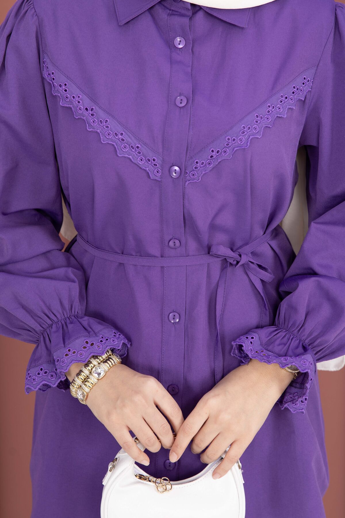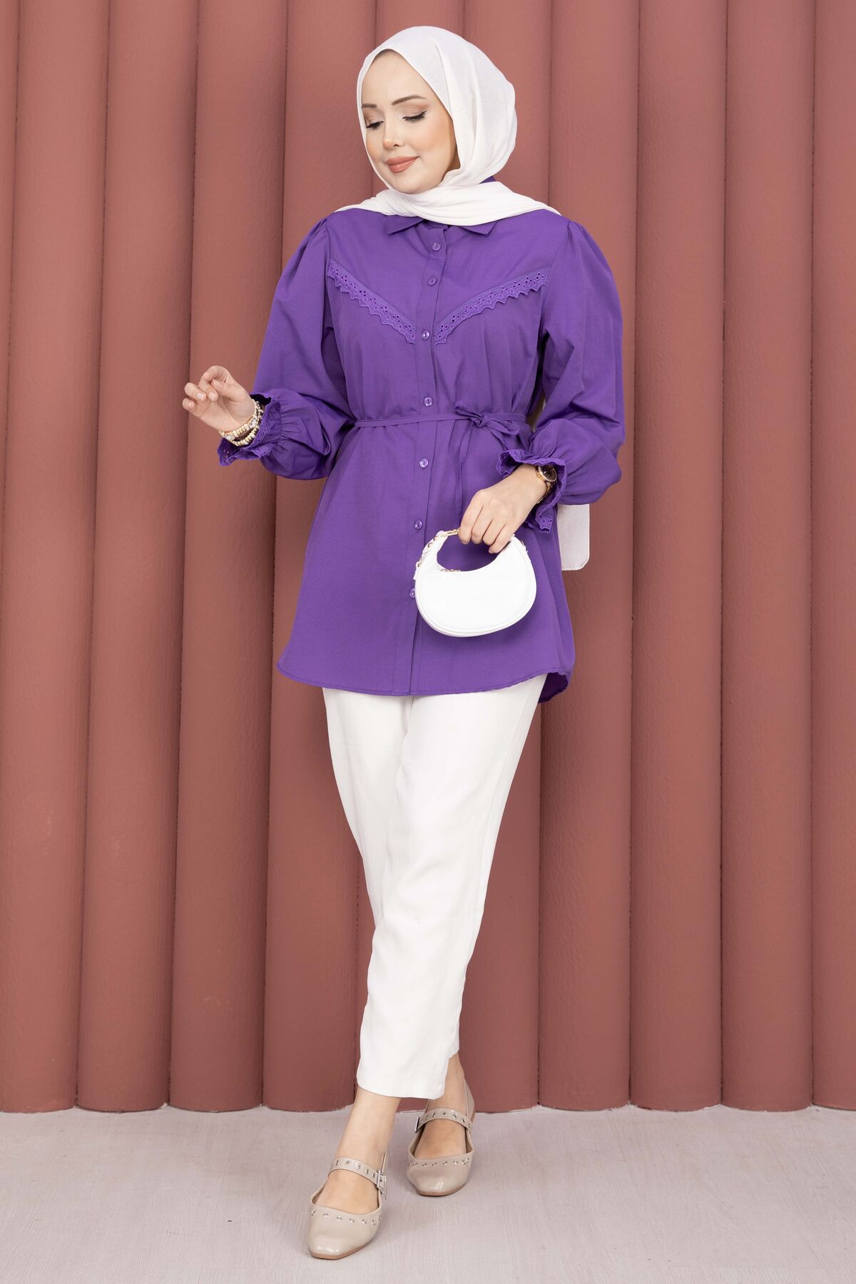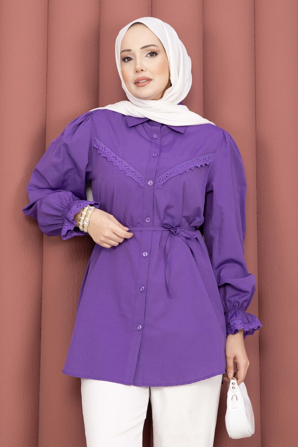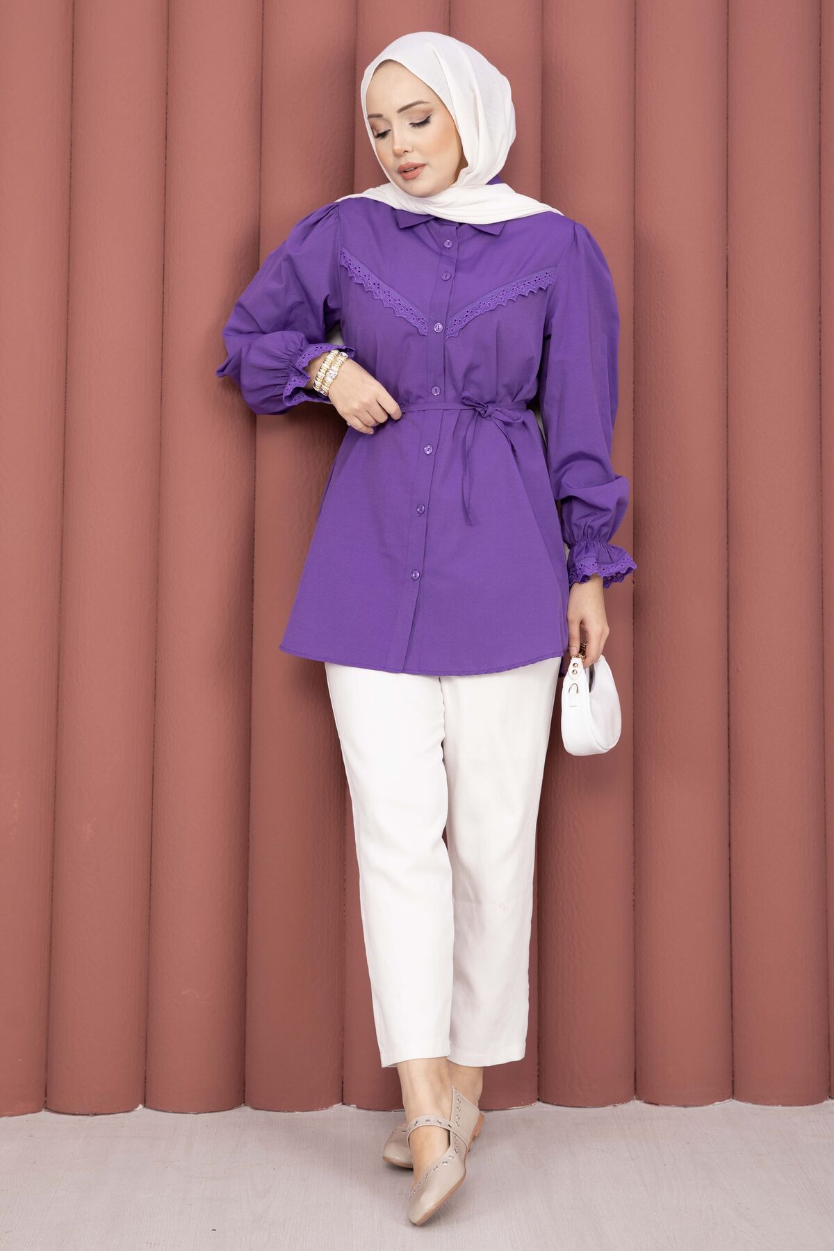 Fisto Detaylı Bağcıklı Gömlek Lila