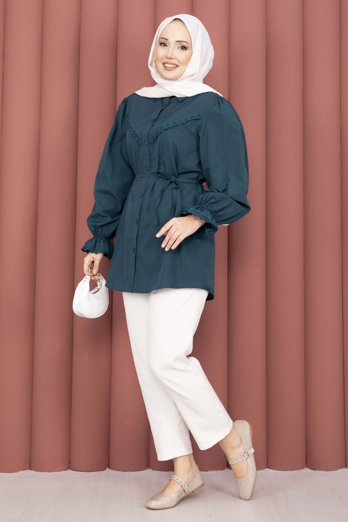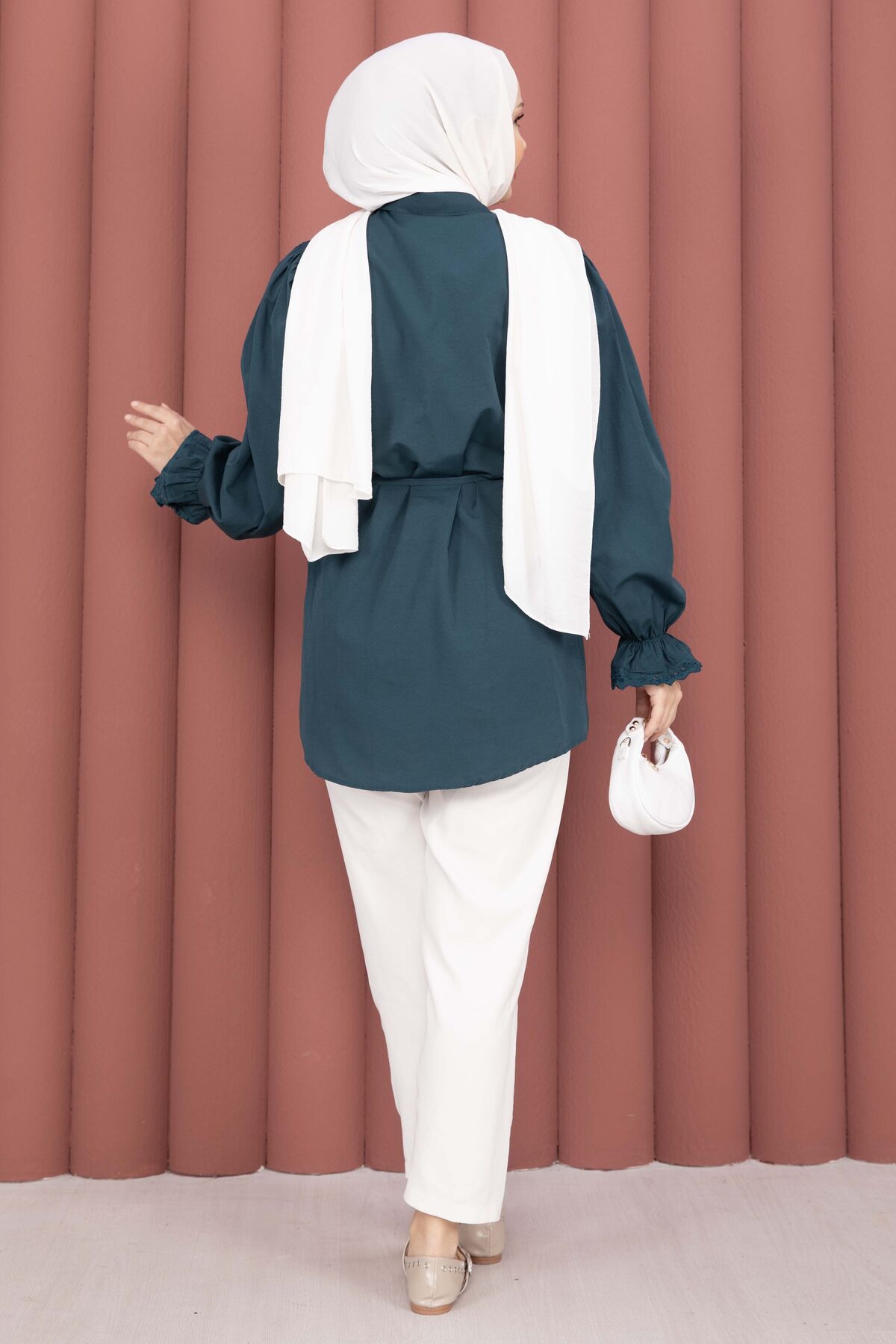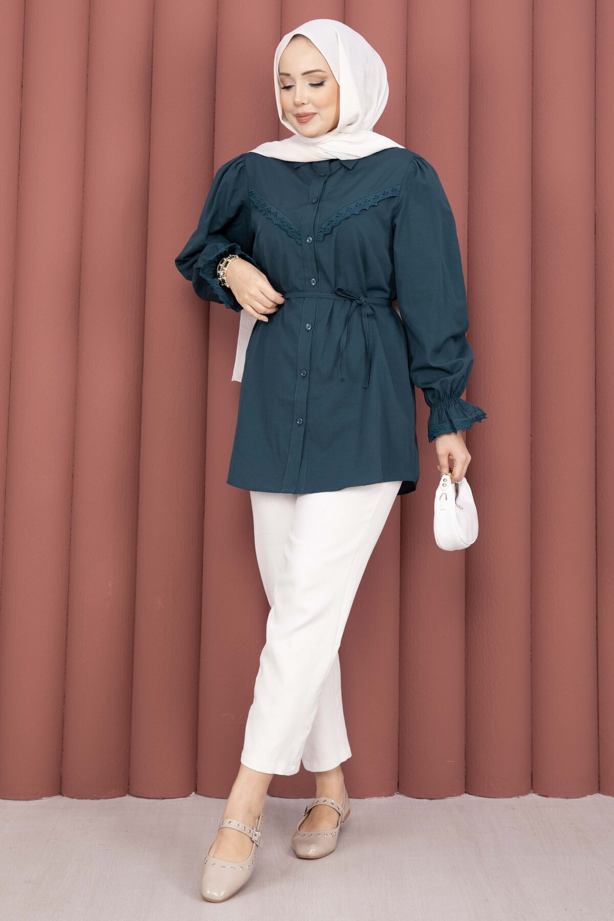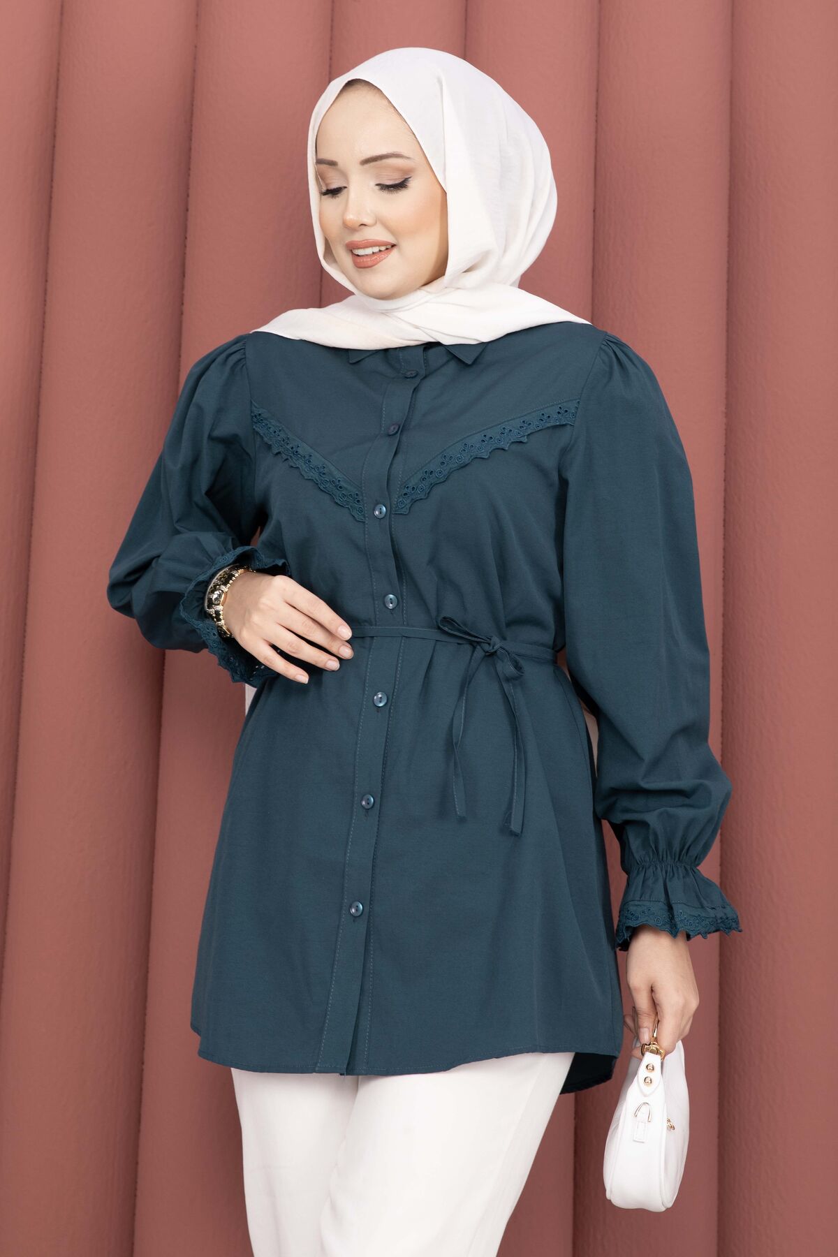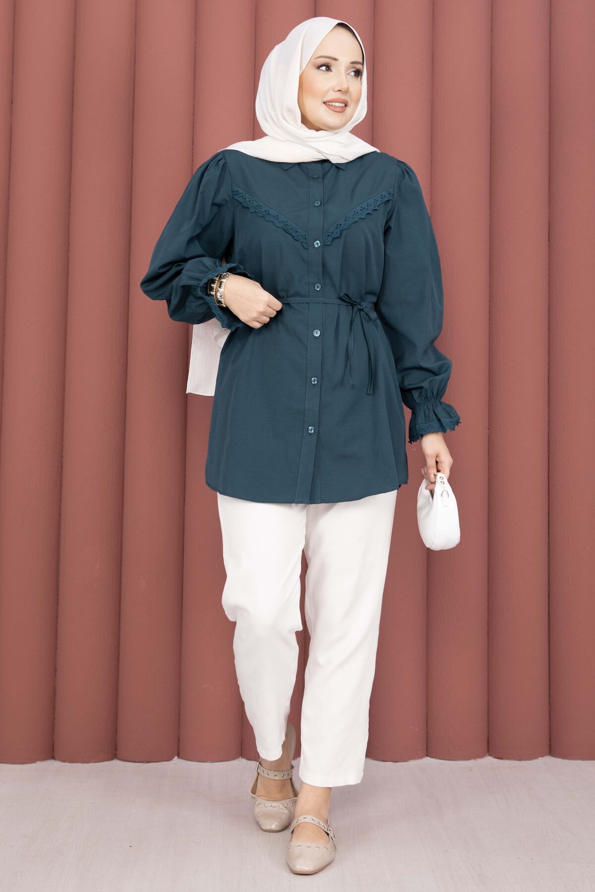 Şıklığı ve zarafeti bir arada sunan Fisto Detaylı Bağcıklı Gömlek, terikoton kumaşı ve özenle tasarlanmış detaylarıyla gardırobunuzun favorisi olacak. Günlük ve özel kombinlerde rahatlıkla kullanılabilir.