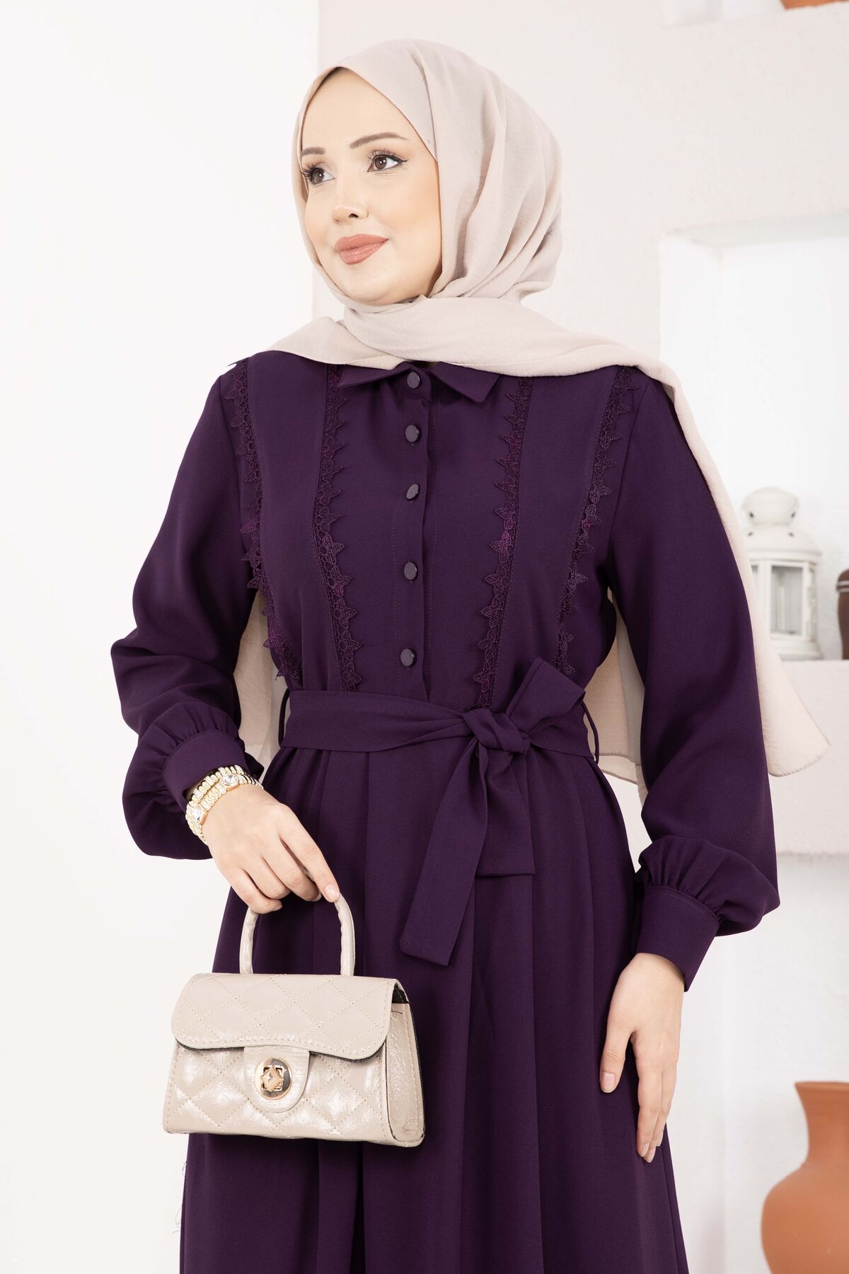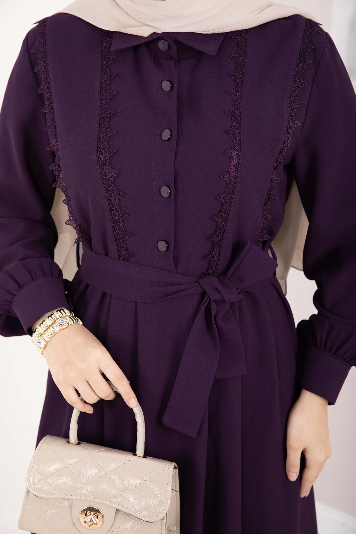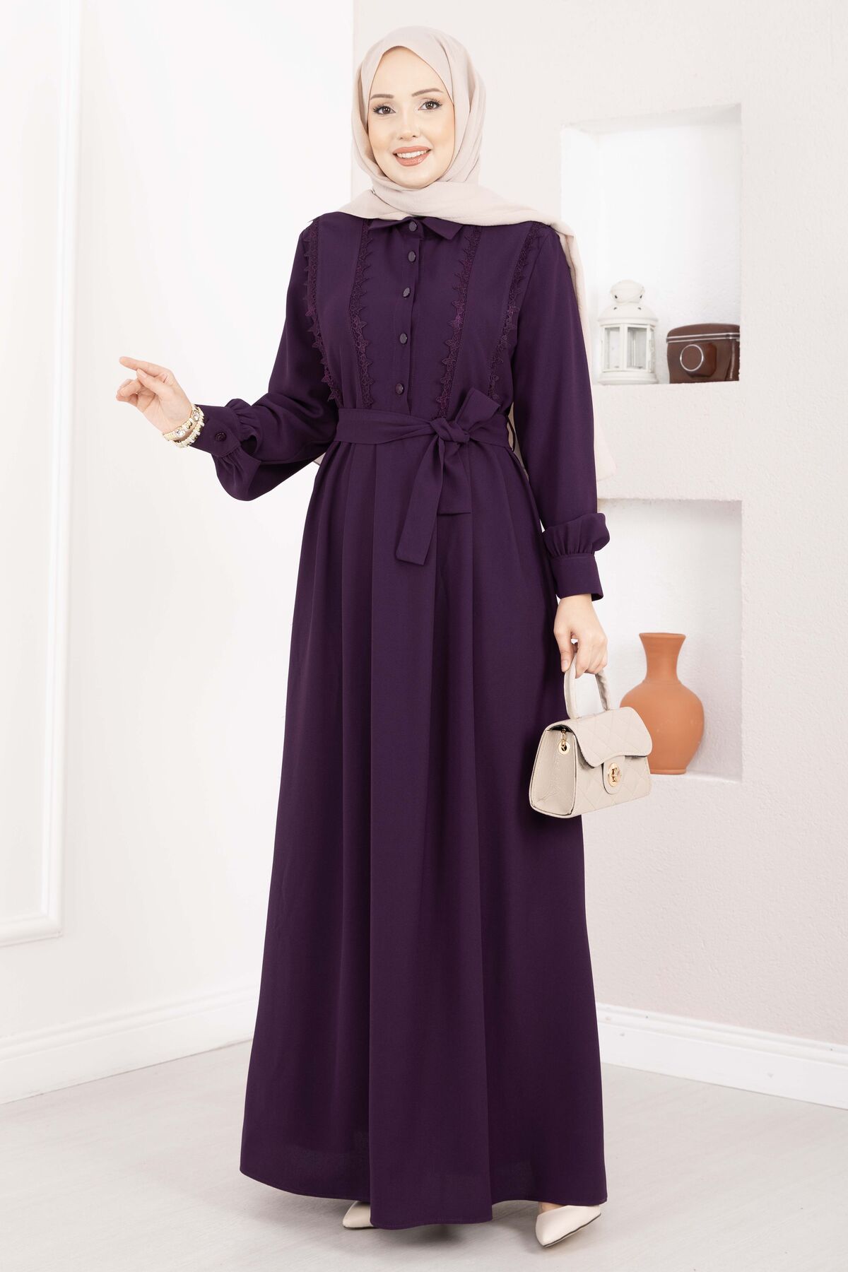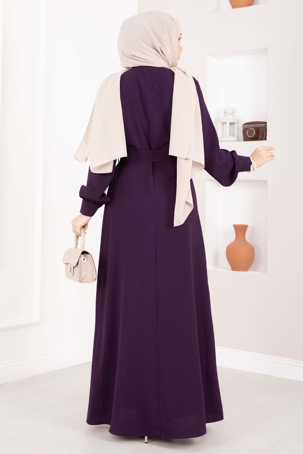 Fisto Detaylı Kuşaklı Tesettür Elbise Mürdüm Yorumları