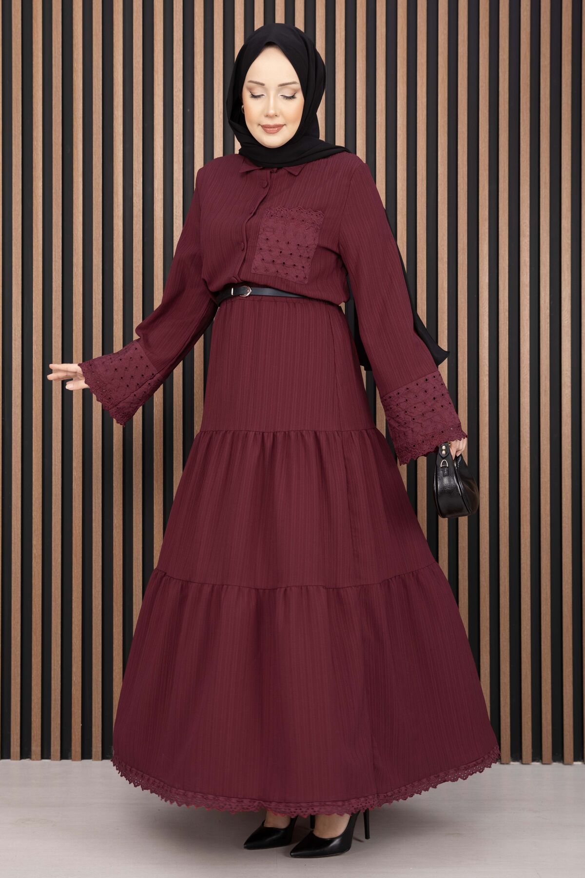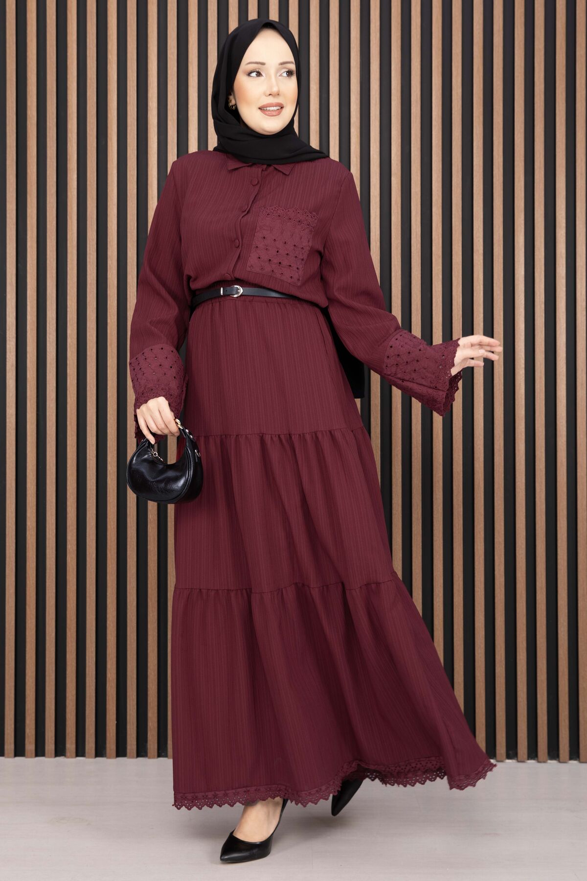 Fistolu Gömlek Etek İkili Takım Bordo