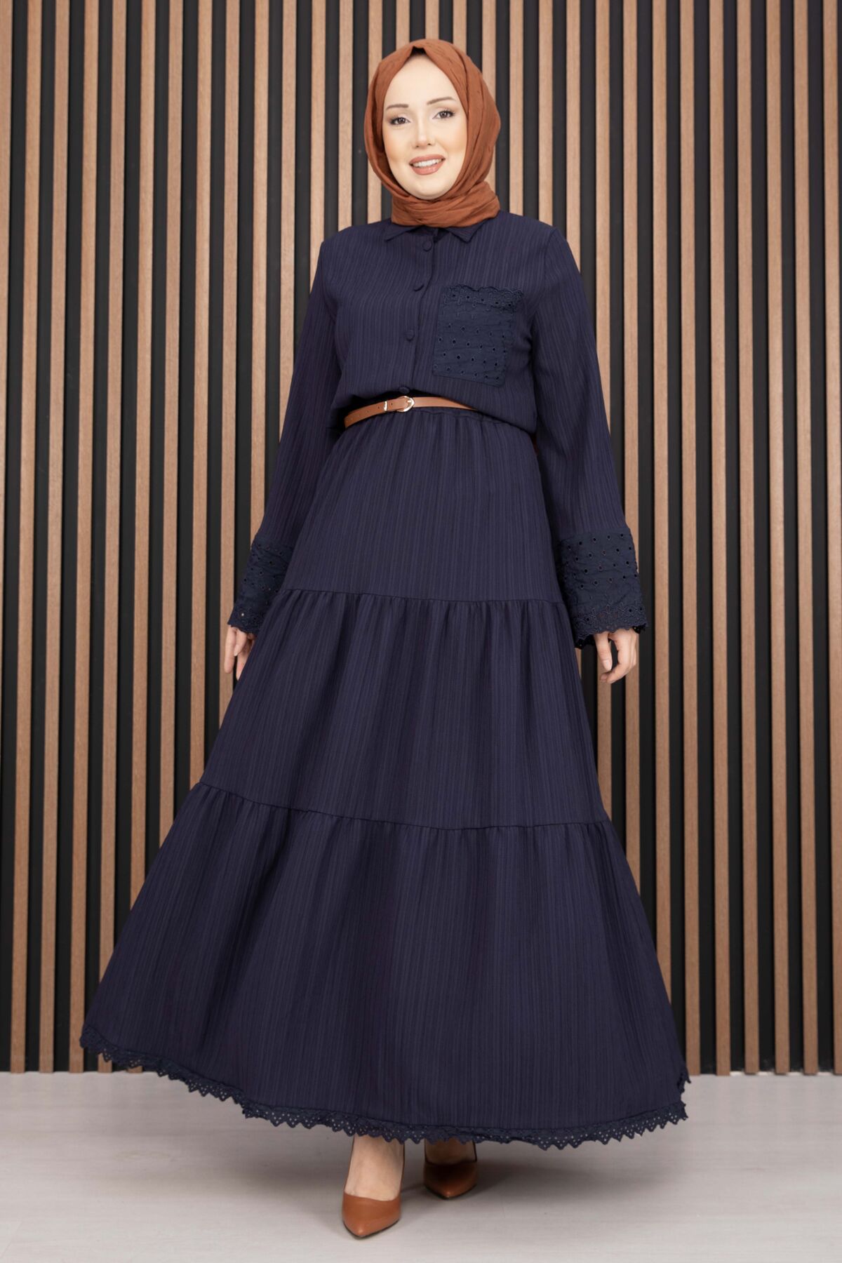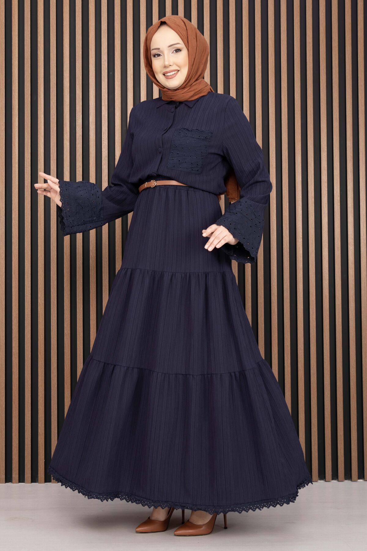 Fistolu Gömlek Etek İkili Takım Lacivert