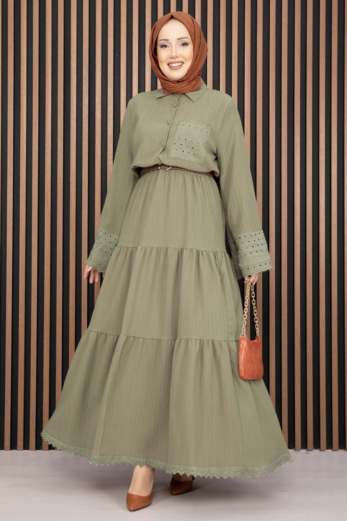 Fistolu Gömlek Etek İkili Takım Yağ Yeşil
