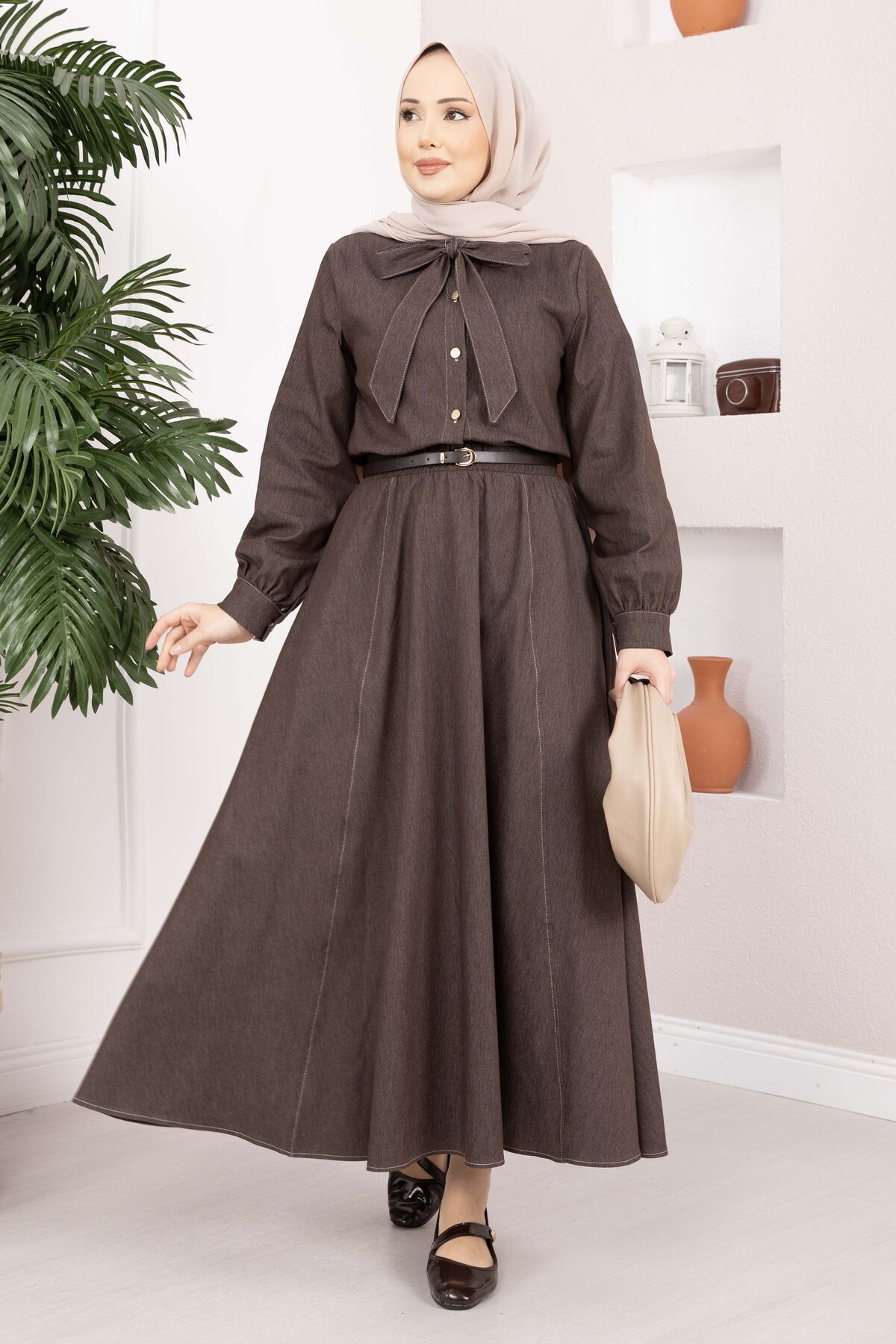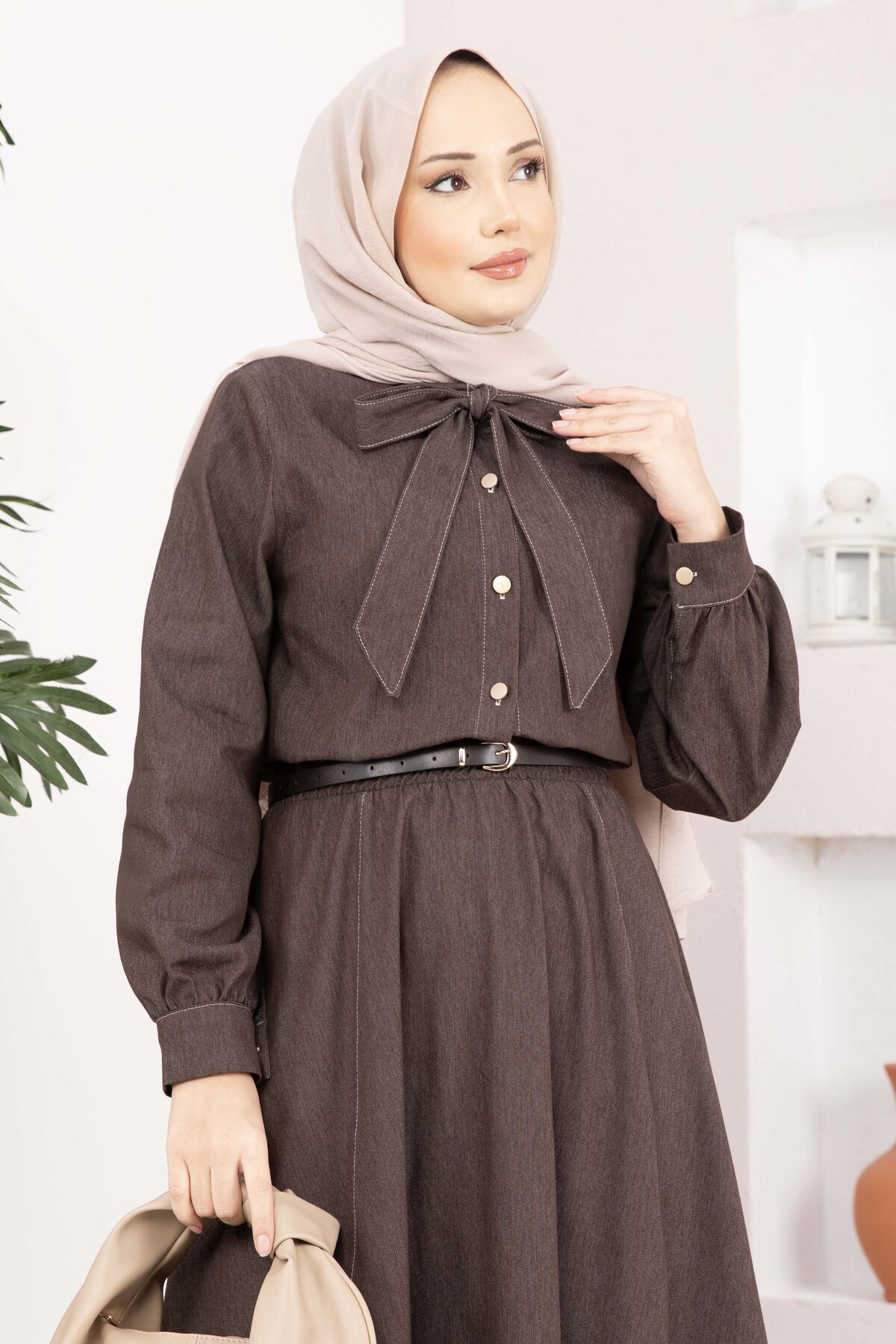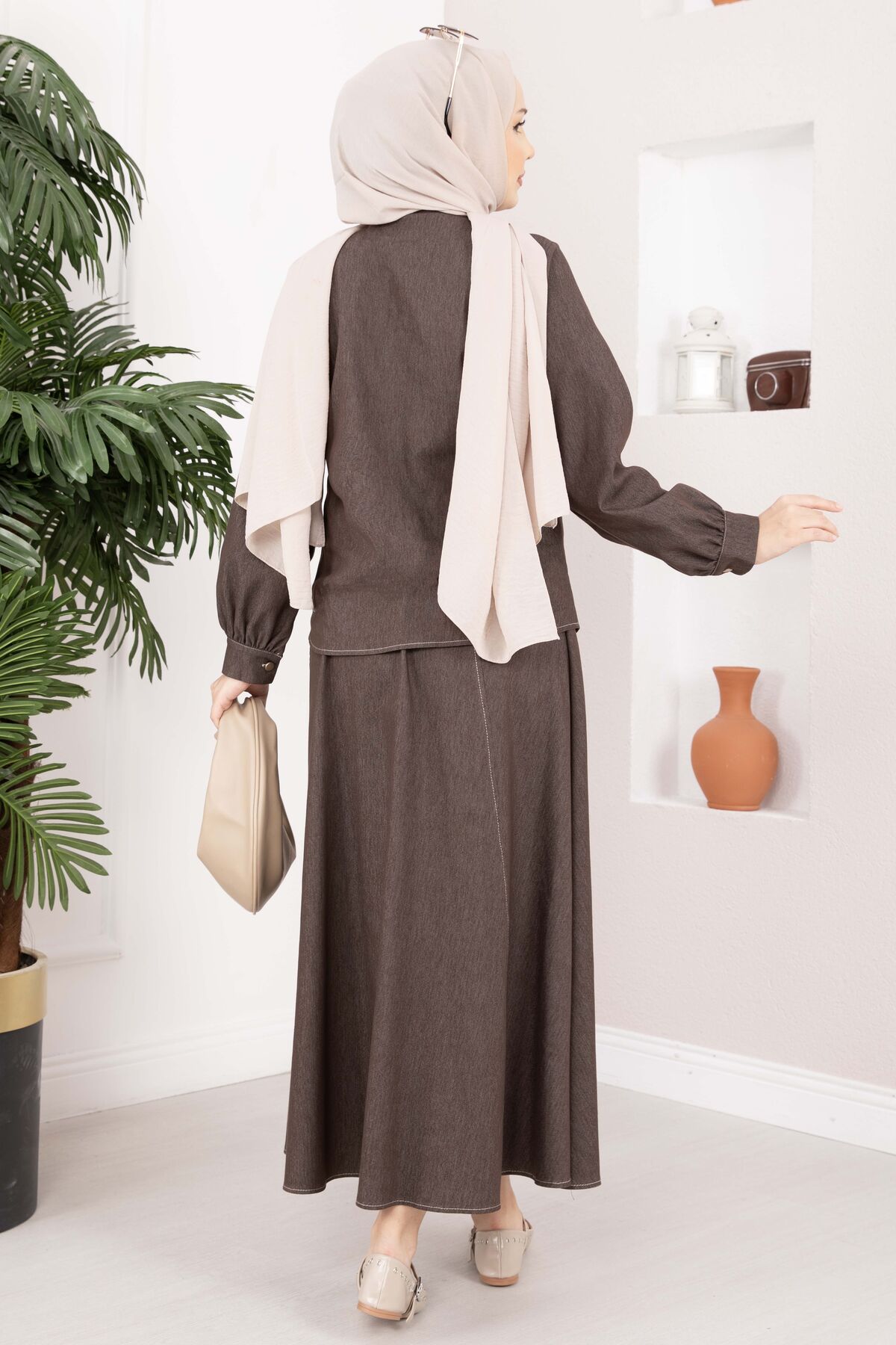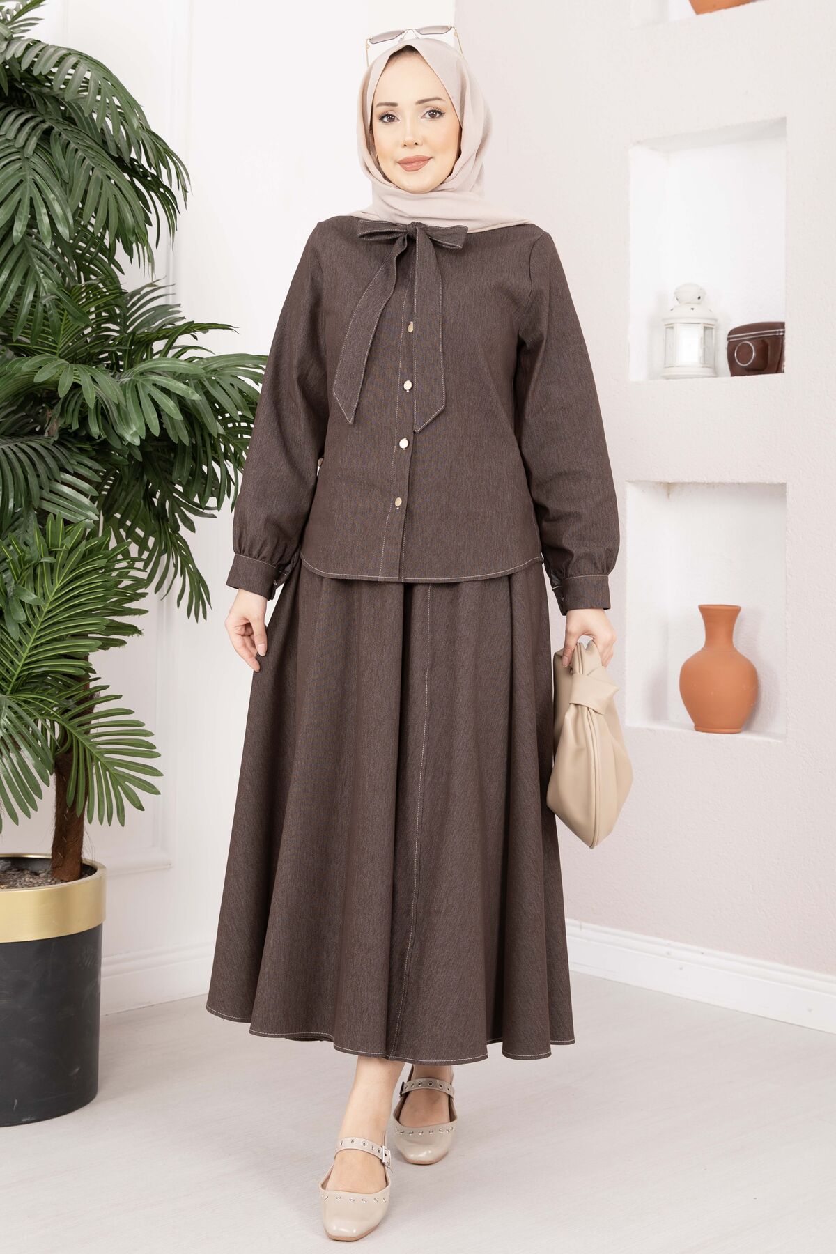 Fiyonk Detaylı İkili Tensel Kot Takım Kahve