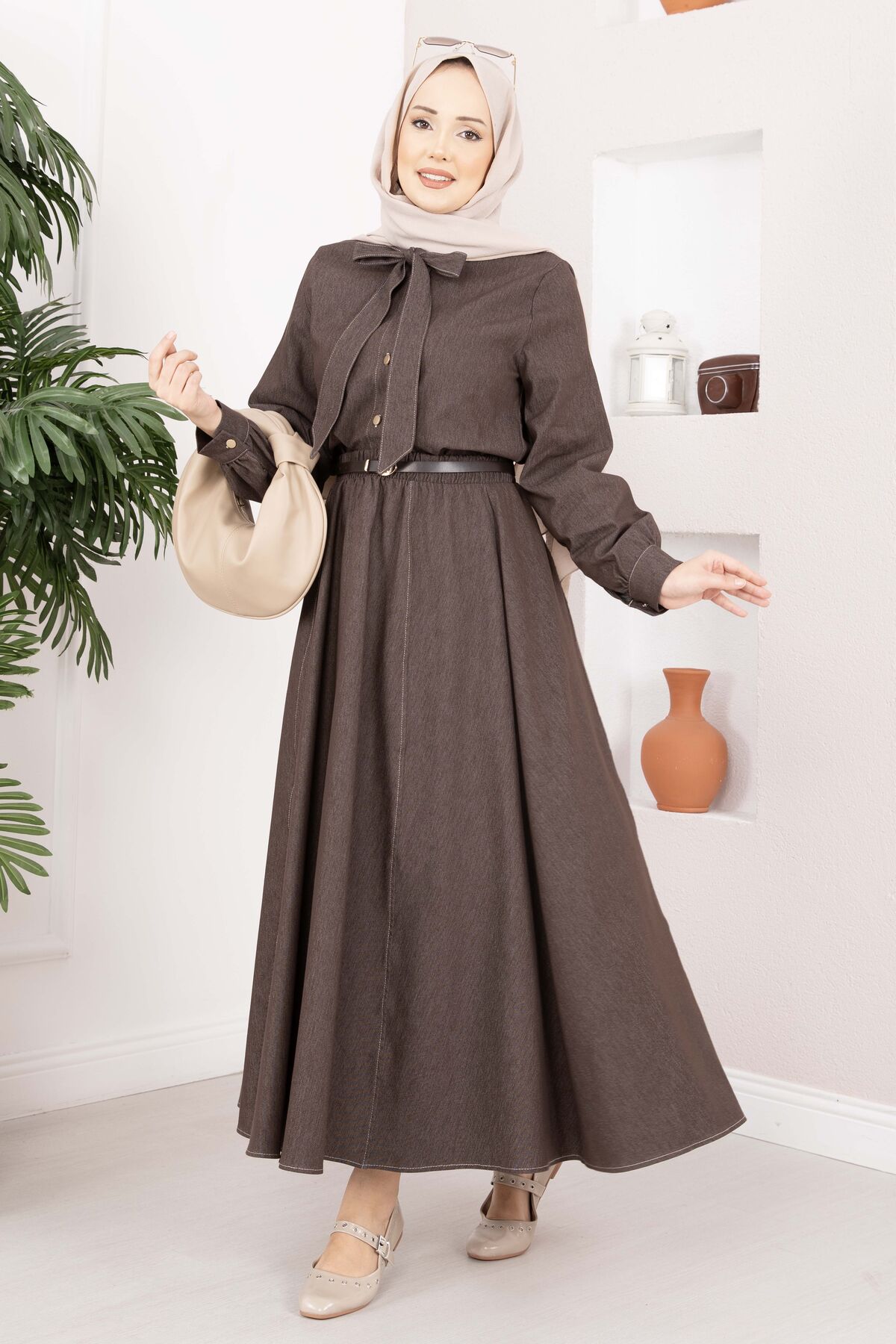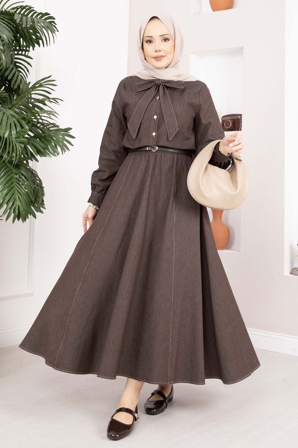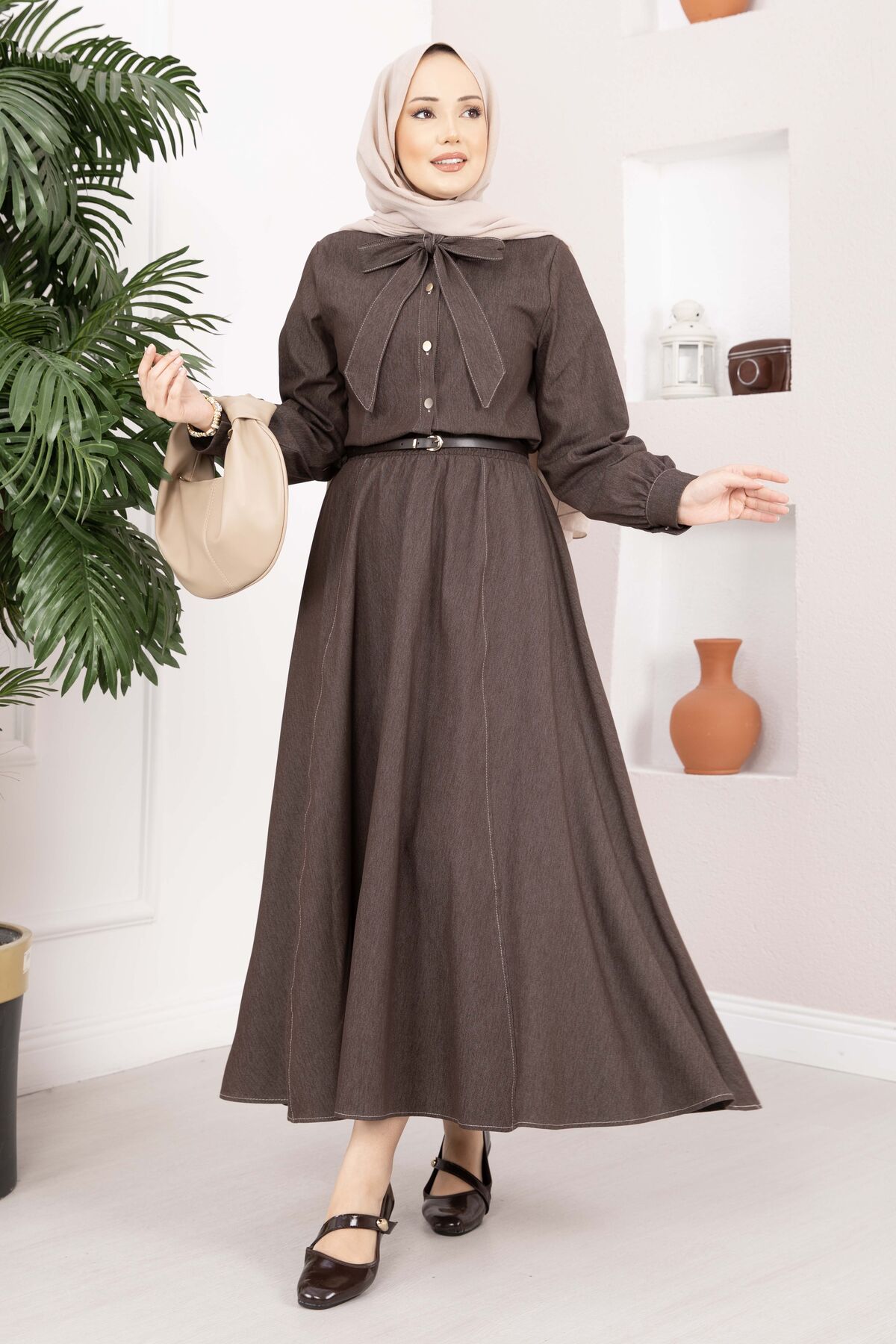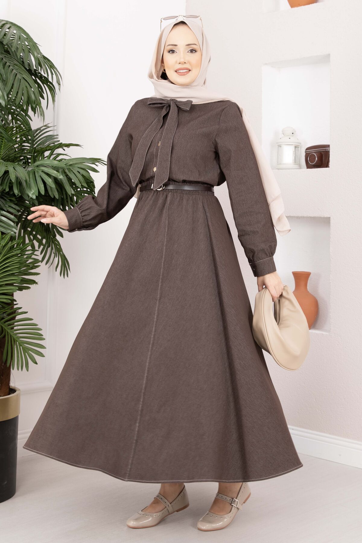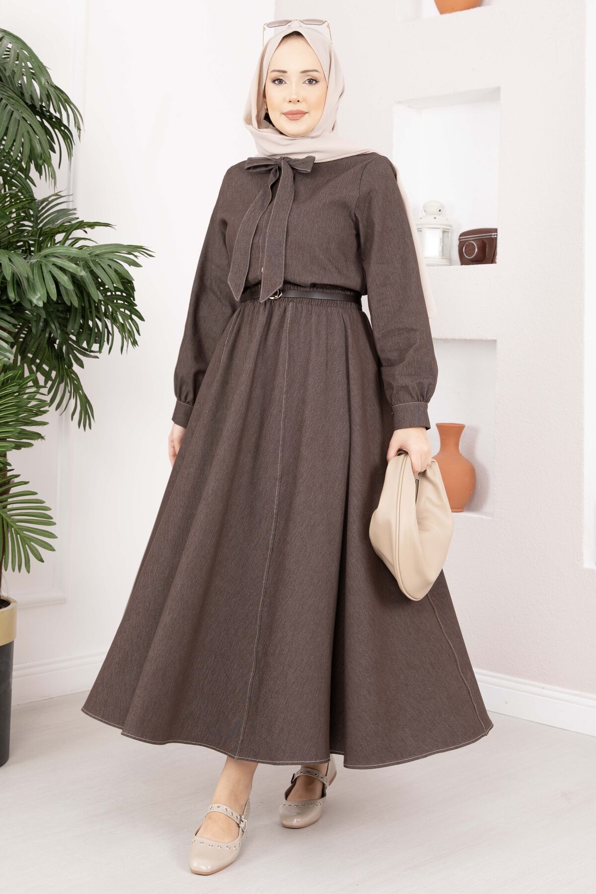 Fiyonk Detaylı İkili Tensel Kot Takım Kahve