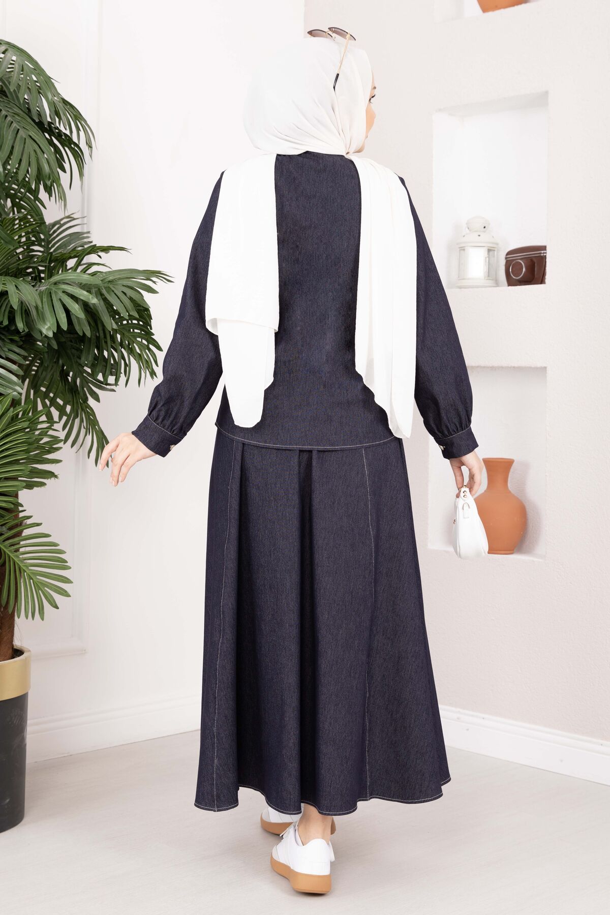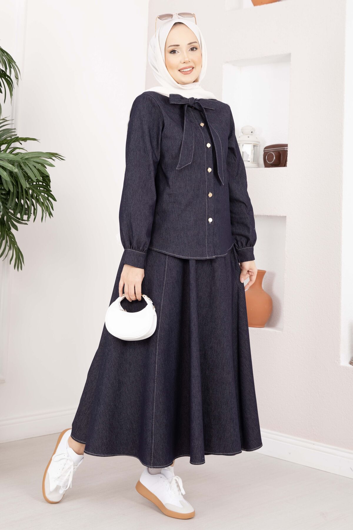 Fiyonk Detaylı Fular Yaka İkili Tensel Kot Takım