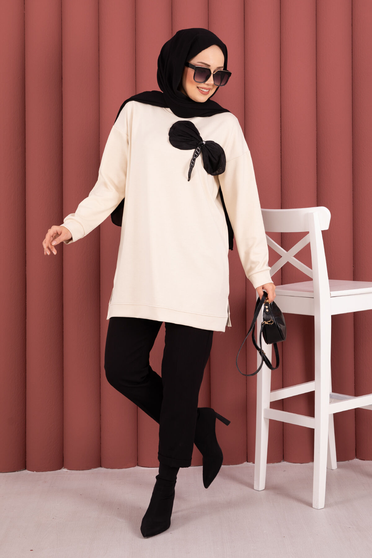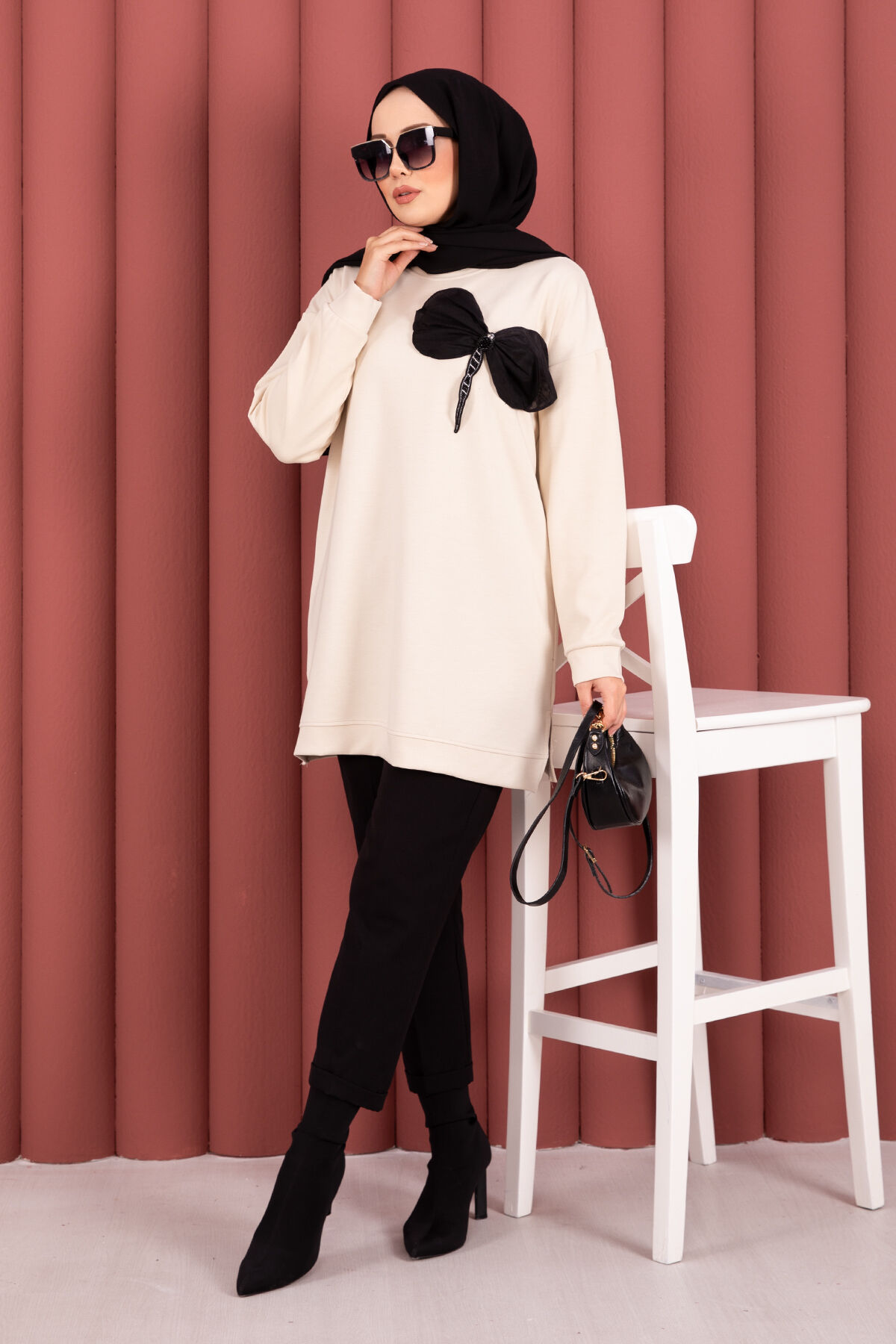Şıklığı ve zarafeti bir arada sunan bu tunik, özel taş işlemeleri ve zarif fiyonk detayıyla göz kamaştırıyor. Üstün kalite kumaşı ve modern tasarımıyla hem gündelik kullanımda hem de özel günlerde rahatlıkla tercih edebileceğiniz 4 mevsimlik bir ürün.