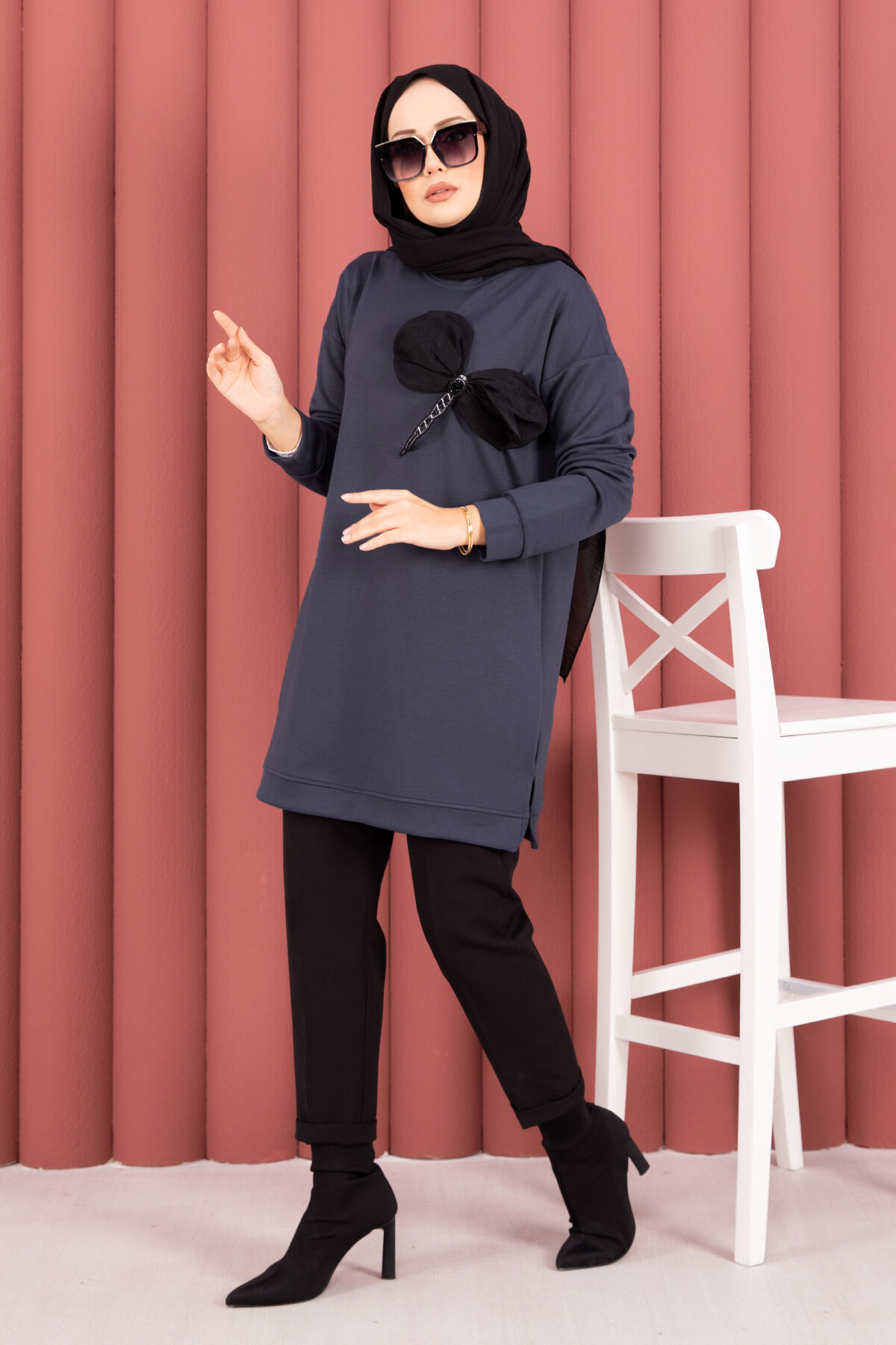 Şıklığı ve zarafeti bir arada sunan bu tunik, özel taş işlemeleri ve zarif fiyonk detayıyla göz kamaştırıyor. Üstün kalite kumaşı ve modern tasarımıyla hem gündelik kullanımda hem de özel günlerde rahatlıkla tercih edebileceğiniz 4 mevsimlik bir ürün.