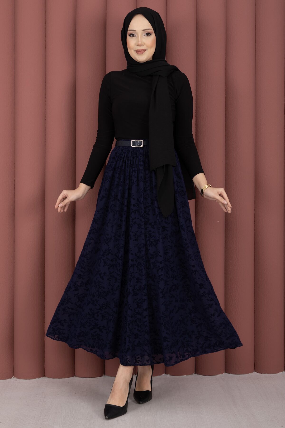 Şıklığı ve zarafeti bir araya getiren Flok Baskılı Kemerli Tül Etek, hafif ve dökümlü tül kumaşıyla gün boyu konfor sunar. Astarlı yapısı sayesinde iç göstermez, rahat ve güvenli bir kullanım sağlar. Flok baskı detayları eteğe modern ve feminen bir hava katarken, kemerli tasarımı belinizi nazikçe sararak şık bir siluet oluşturur. Günlük kombinlerden özel davetlere kadar geniş bir kullanım alanına sahiptir.