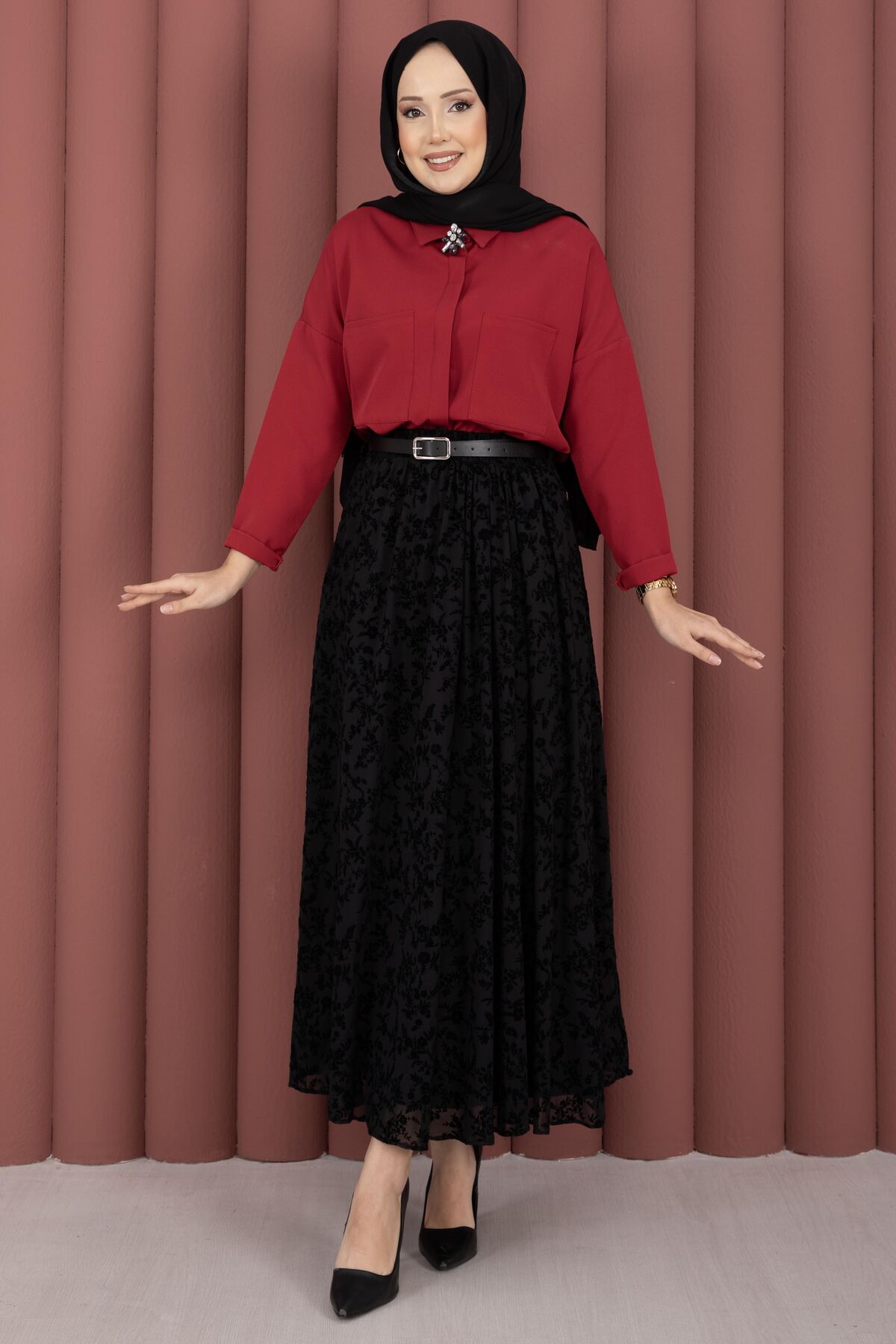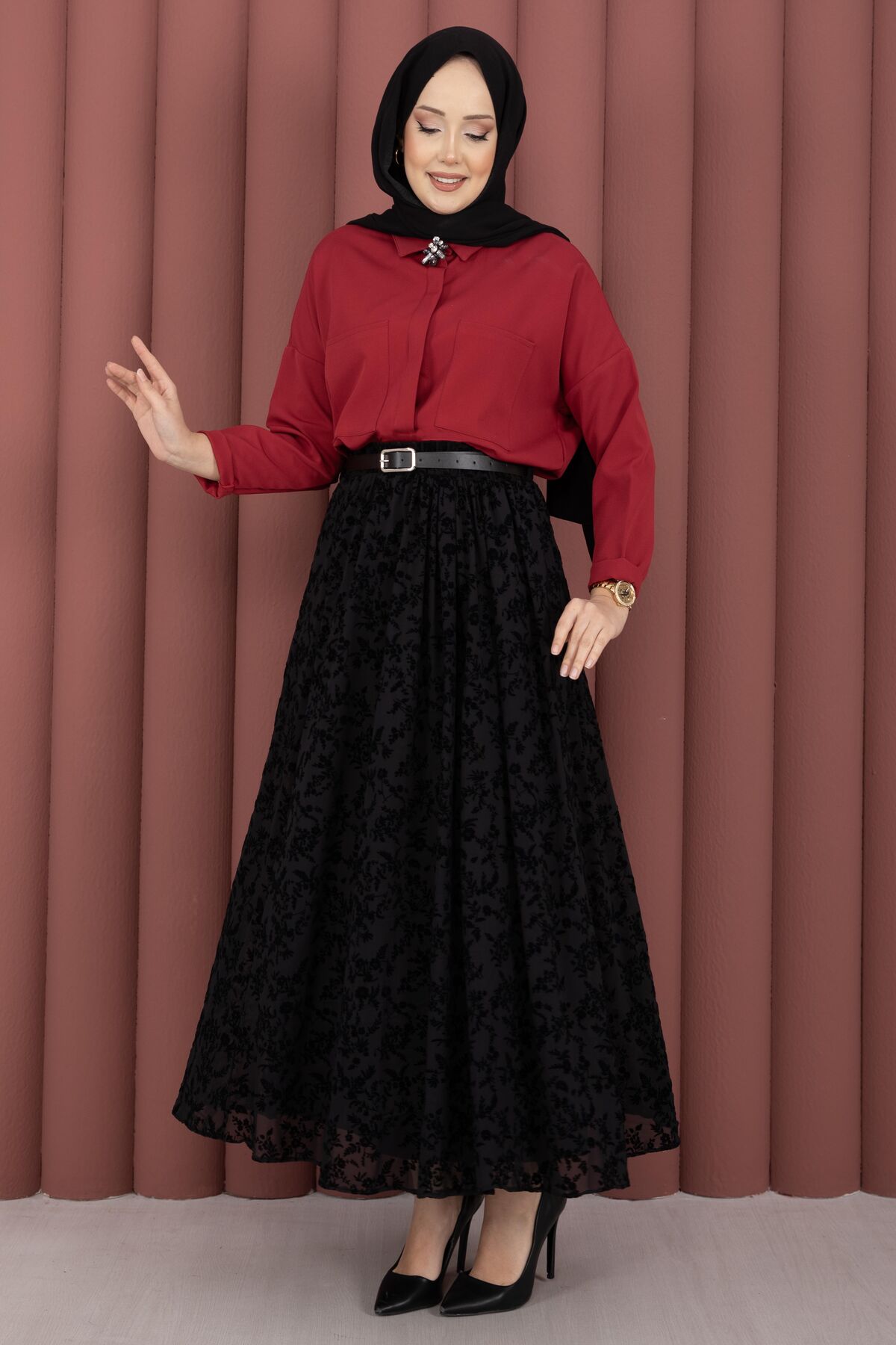 Şıklığı ve zarafeti bir araya getiren Flok Baskılı Kemerli Tül Etek, hafif ve dökümlü tül kumaşıyla gün boyu konfor sunar. Astarlı yapısı sayesinde iç göstermez, rahat ve güvenli bir kullanım sağlar. Flok baskı detayları eteğe modern ve feminen bir hava katarken, kemerli tasarımı belinizi nazikçe sararak şık bir siluet oluşturur. Günlük kombinlerden özel davetlere kadar geniş bir kullanım alanına sahiptir.