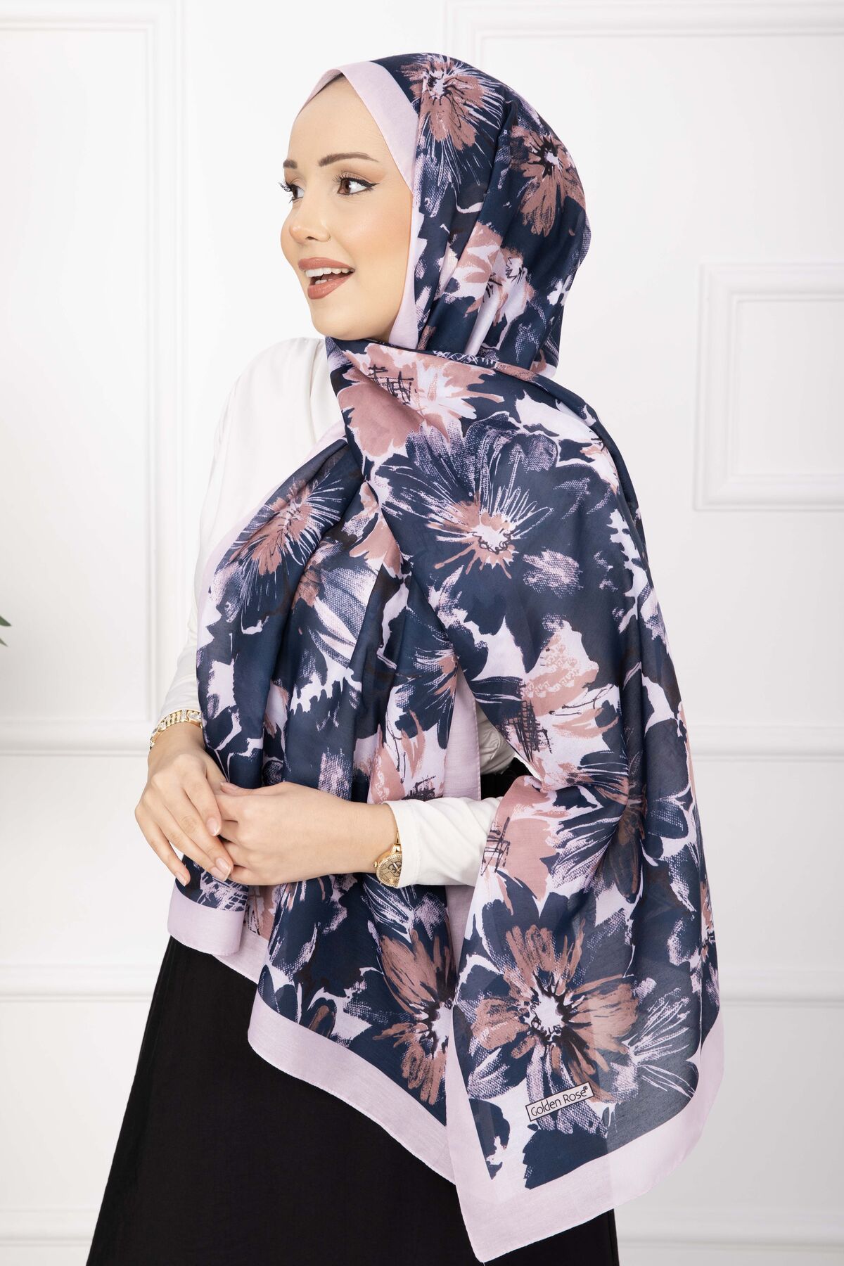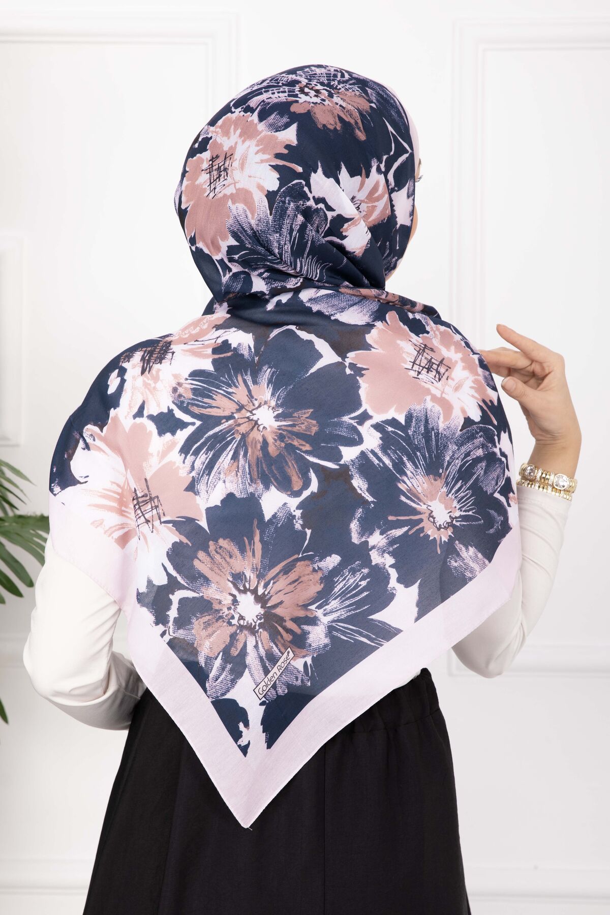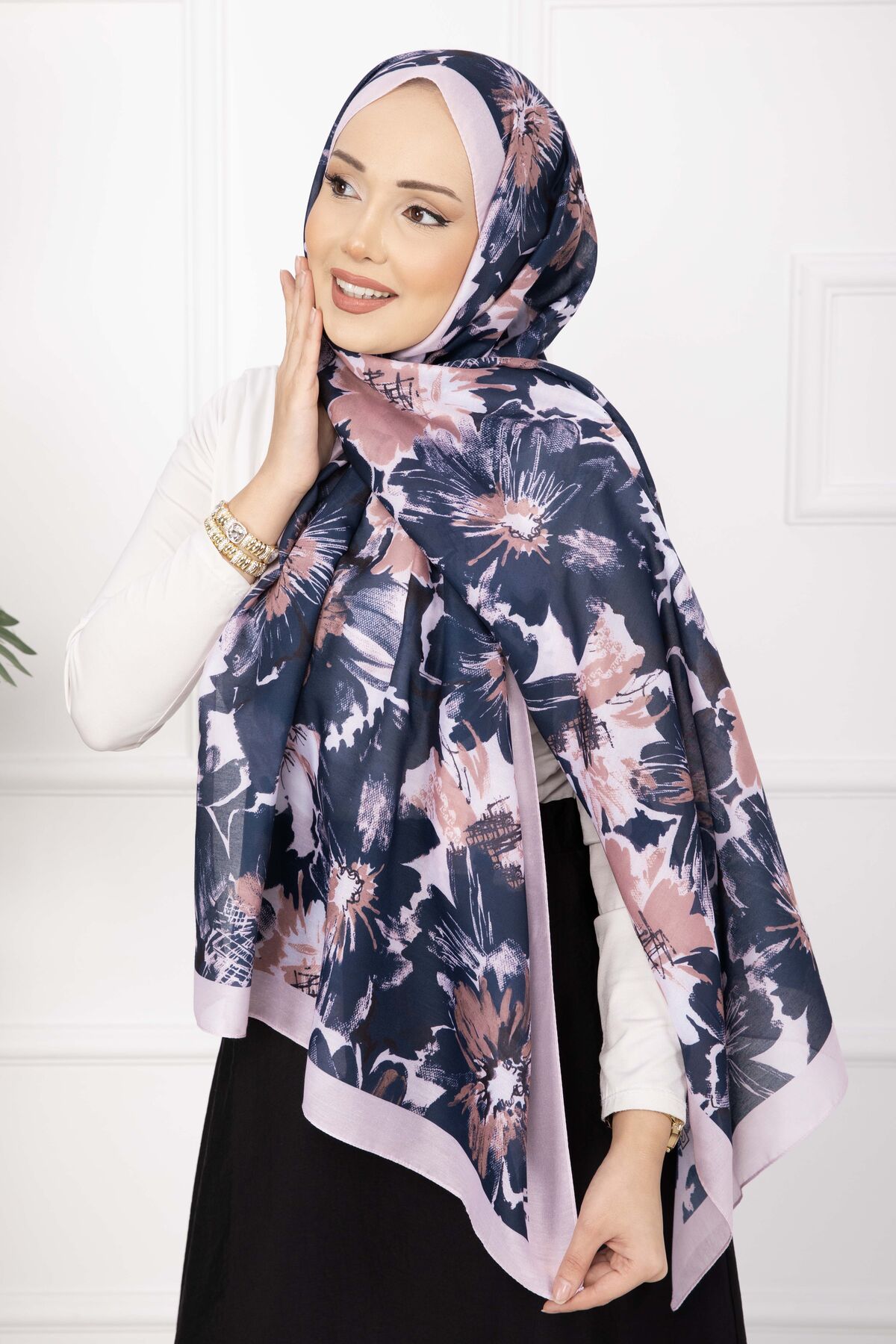 Floral Çiçek Desenli Şal Serisi Pudra Lacivert Yorumları