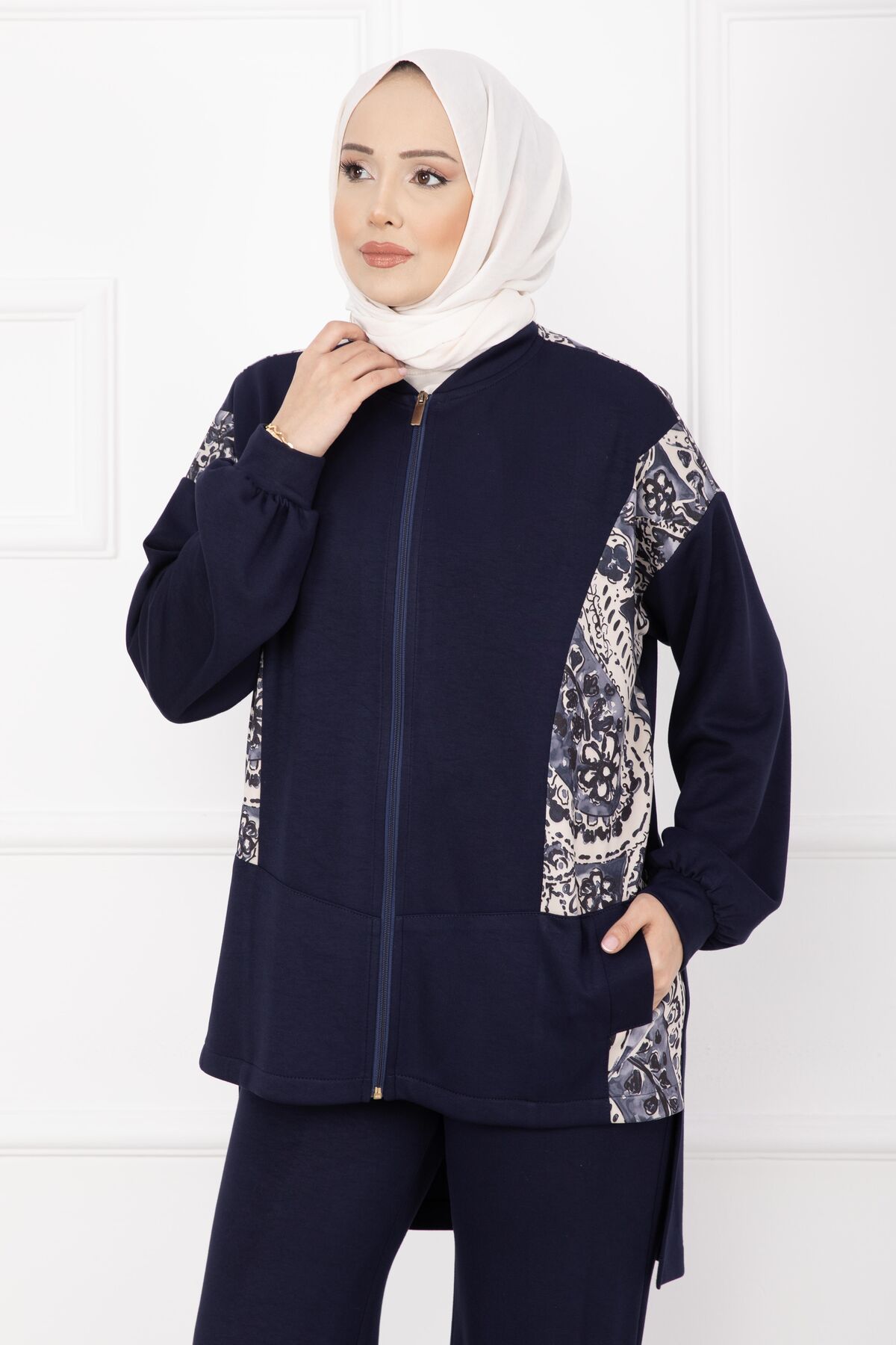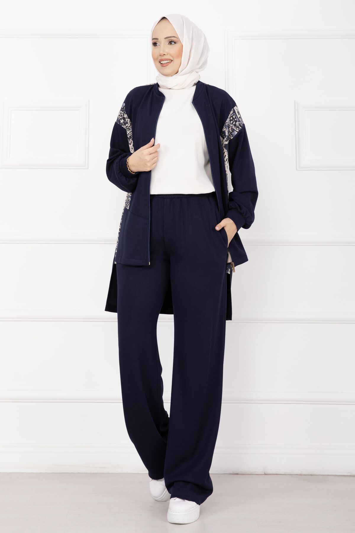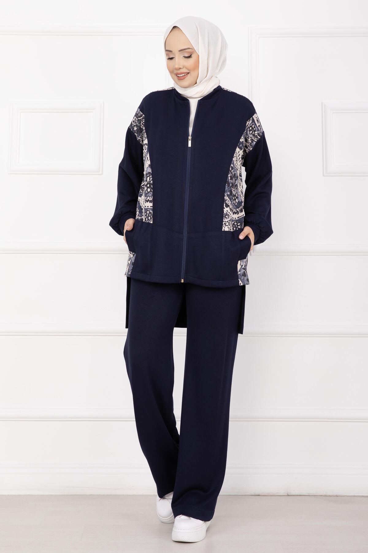 Garnili Önü Fermuarlı İkili Takım Lacivert