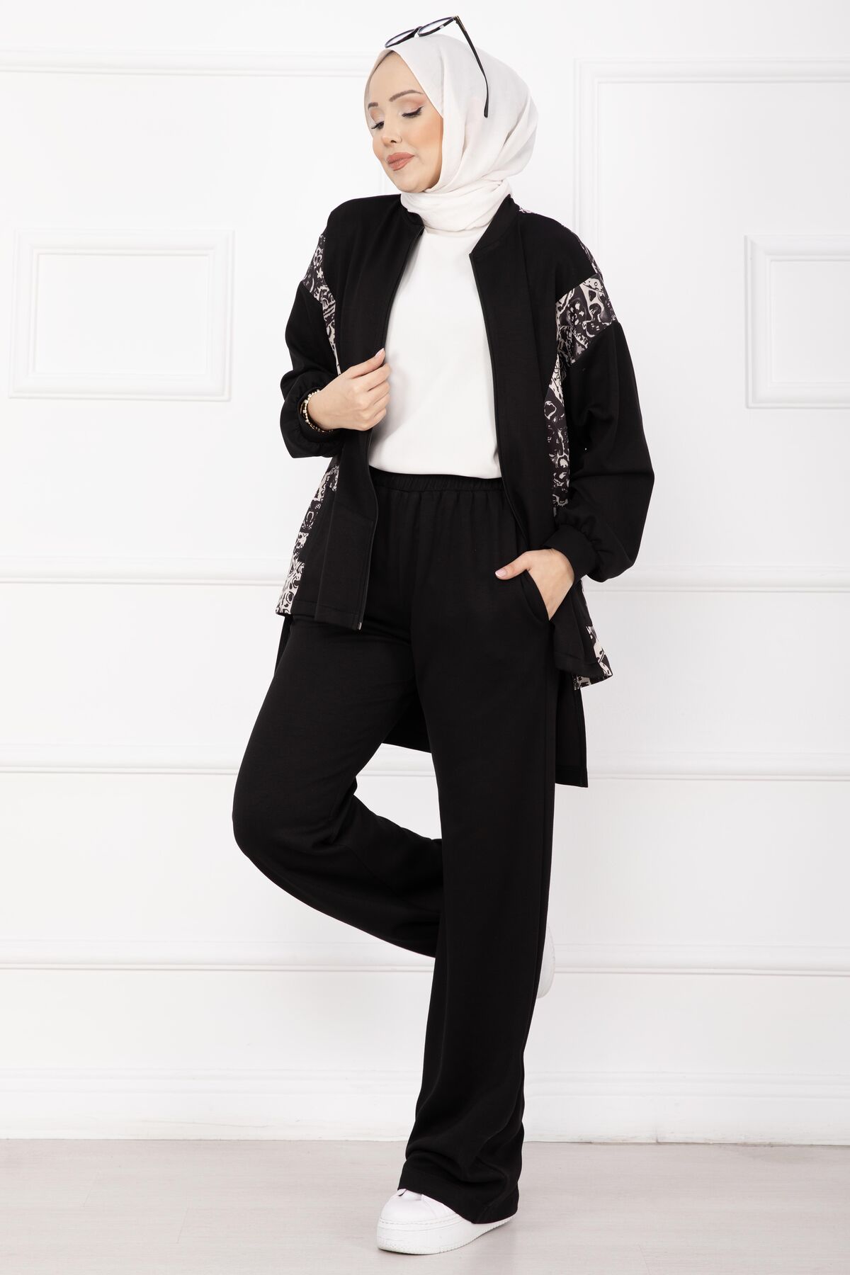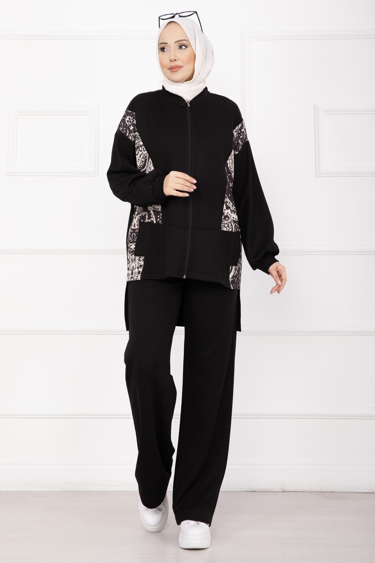 Modern ve şık tasarımıyla öne çıkan Garnili Önü Fermuarlı İkili Takım, rahat kalıbı ve garnili detaylarıyla günlük kullanıma uygundur. Üst parçası önden fermuarlı olup pratik kullanım sağlar. Ön kısmı arka kısma göre daha kısa tasarlanmıştır. Cepli ceket tasarımıyla hem şık hem kullanışlıdır. Pantolonu beli lastikli yapısıyla konfor sunar.