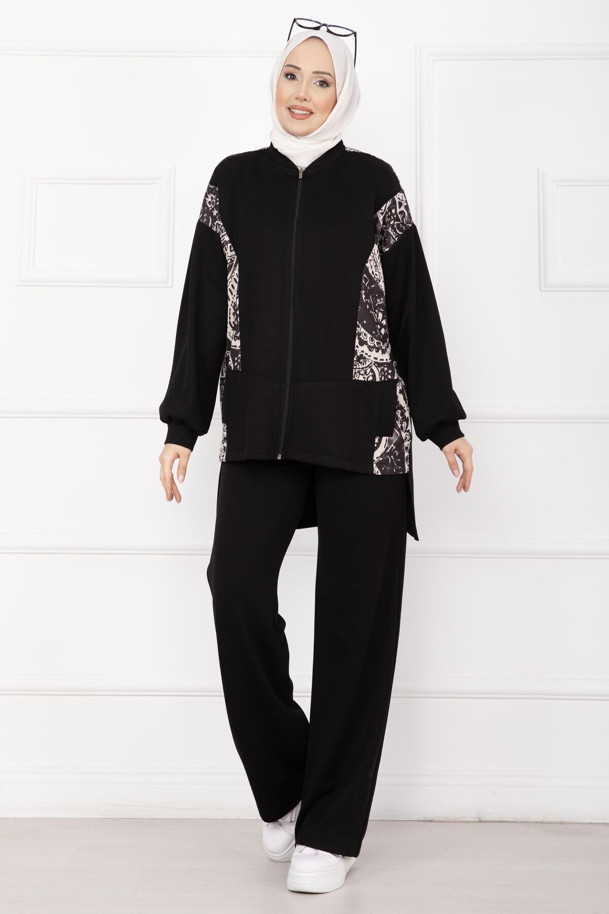 Garnili Önü Fermuarlı İkili Takım Siyah