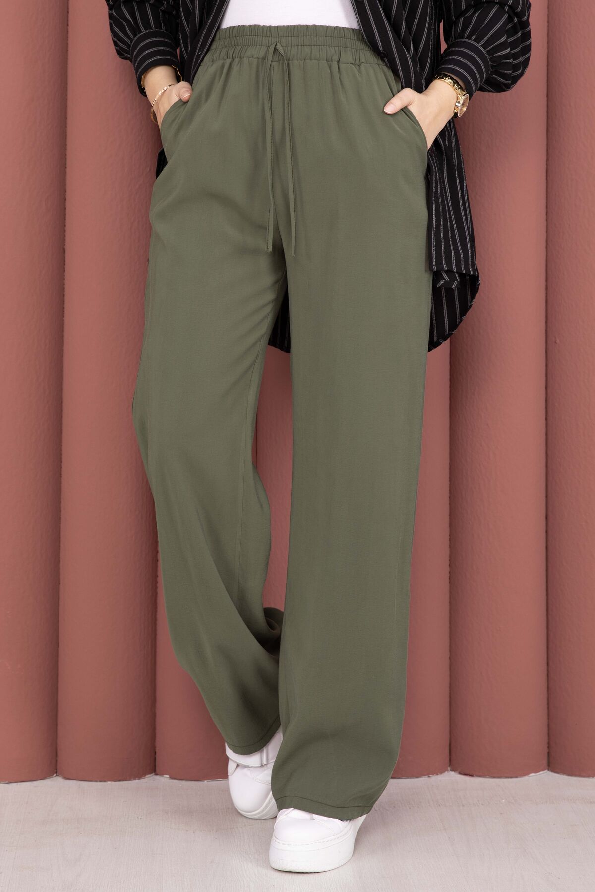 Geniş Paça Cepli Tensel Pantolon Haki