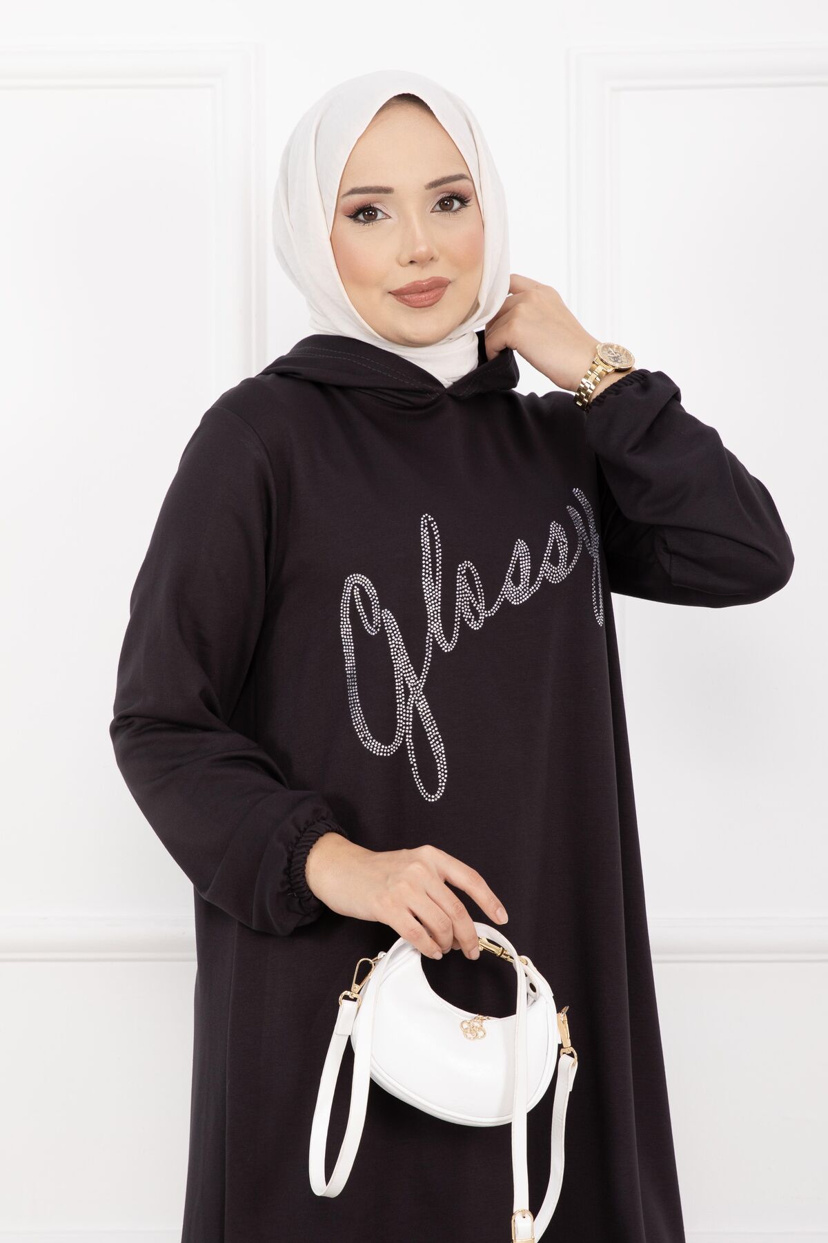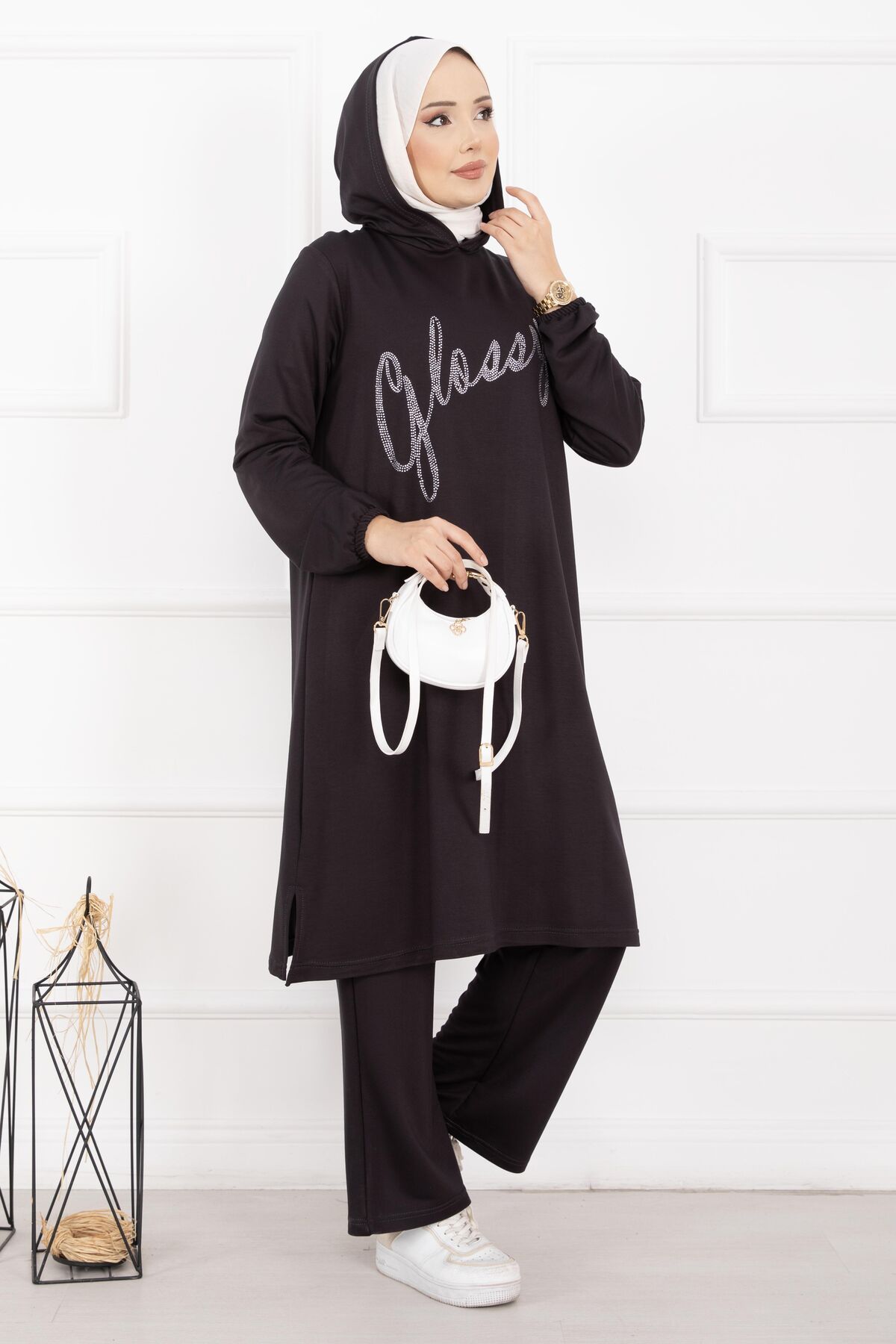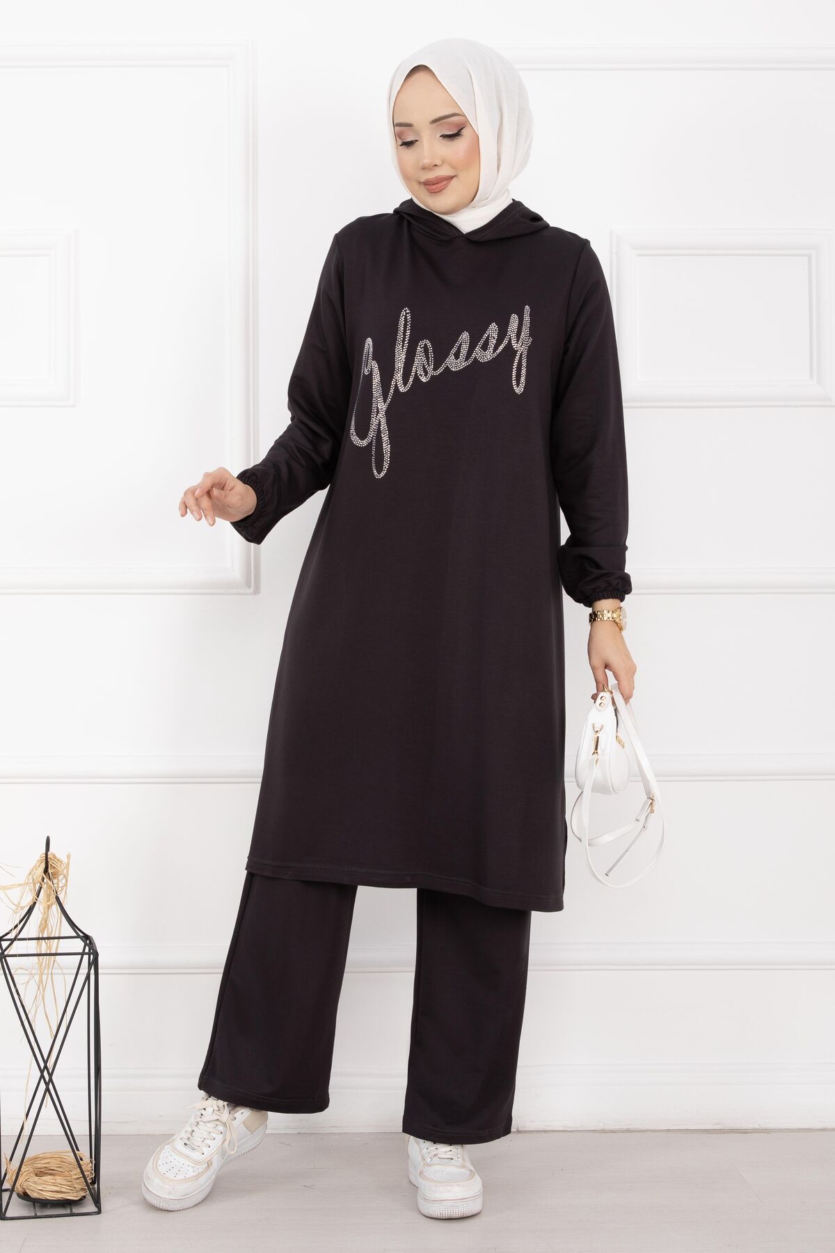 Glossy Taş Detaylı Kapüşonlu Tesettür Takım