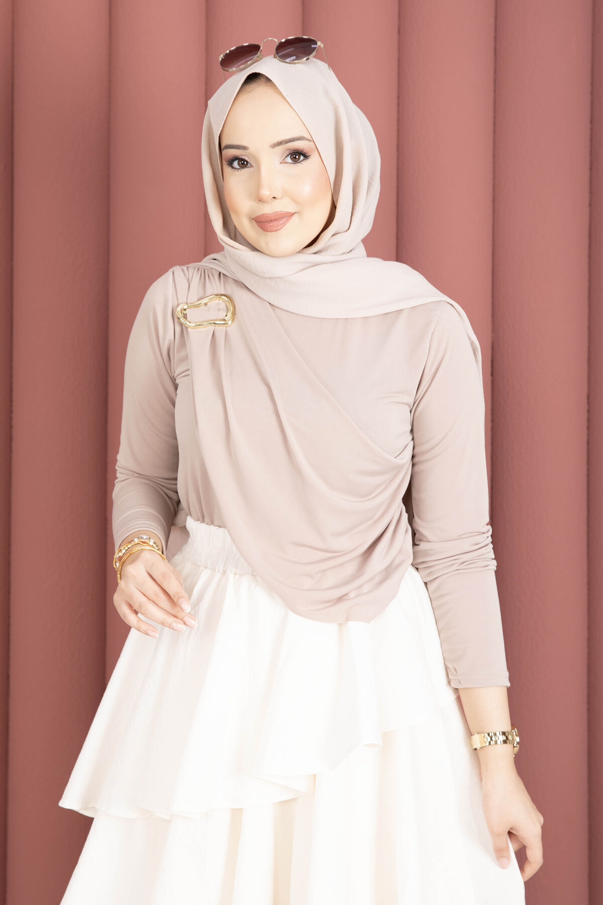 - Gold broş detayı bulunmaktadır