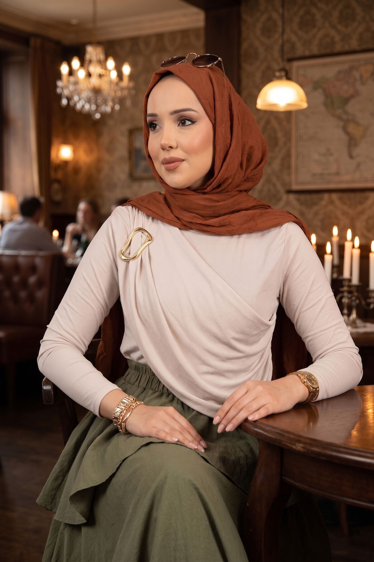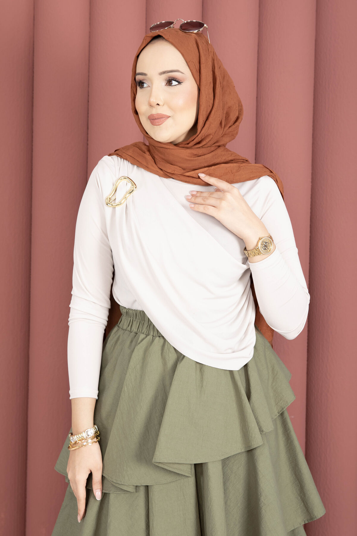 - Gold broş detayı bulunmaktadır
