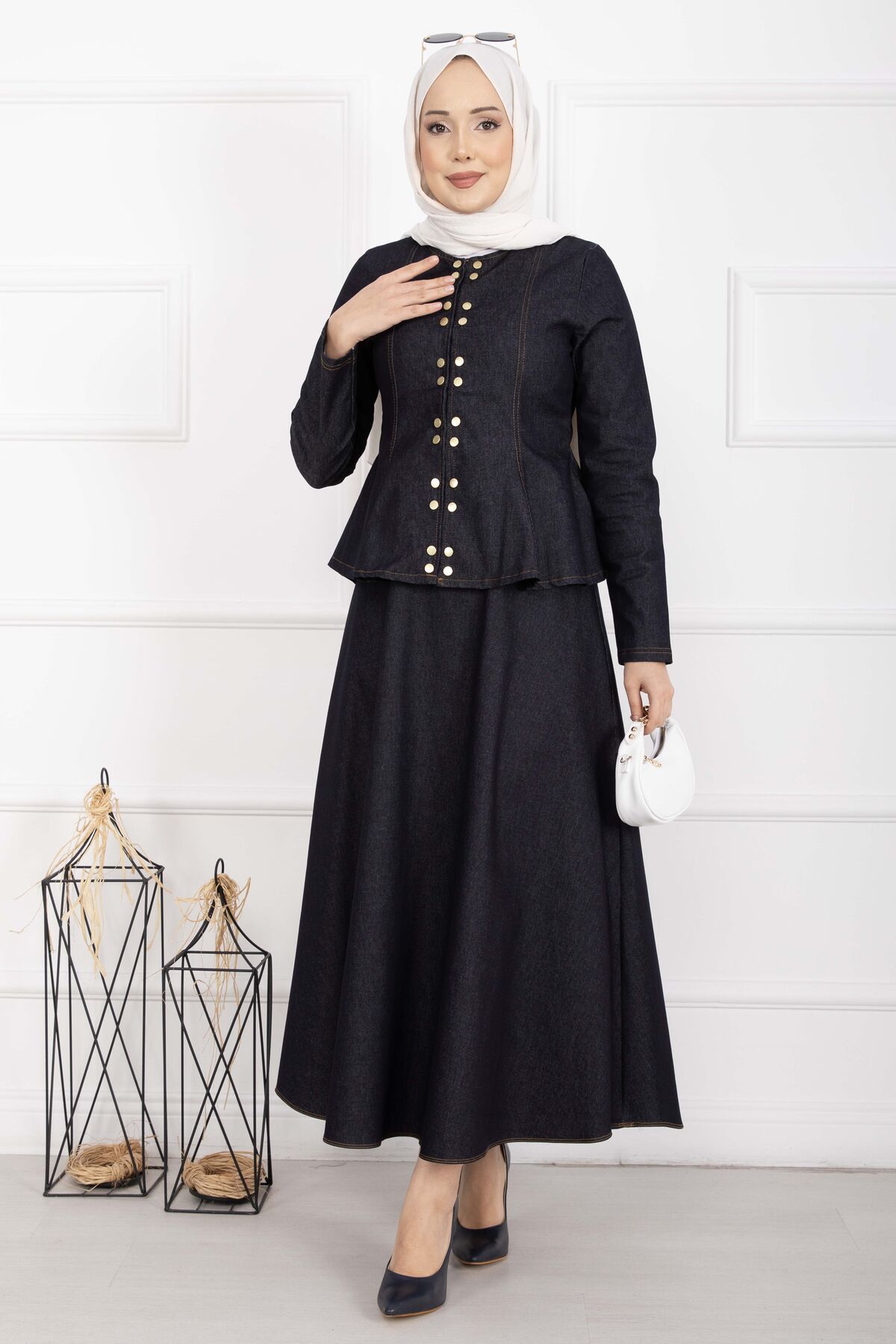 Gold Çıtçıtlı Tensel Kot İkili Takım Lacivert Yorumları