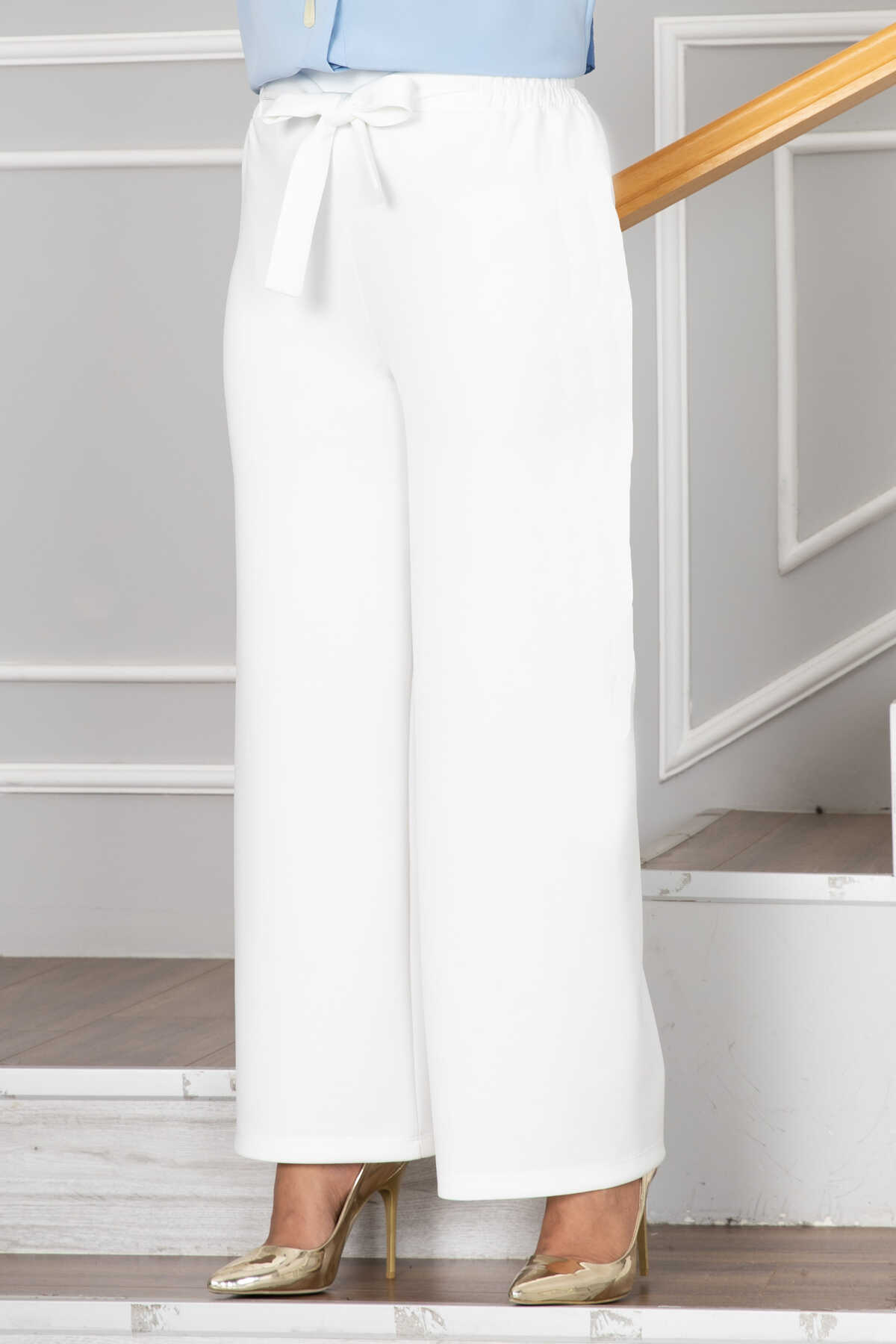 Greta Bol Paça Tesettür Pantolon Beyaz