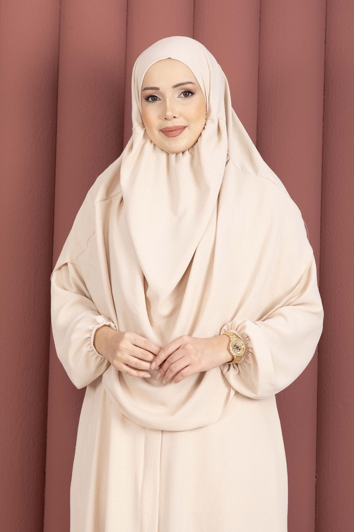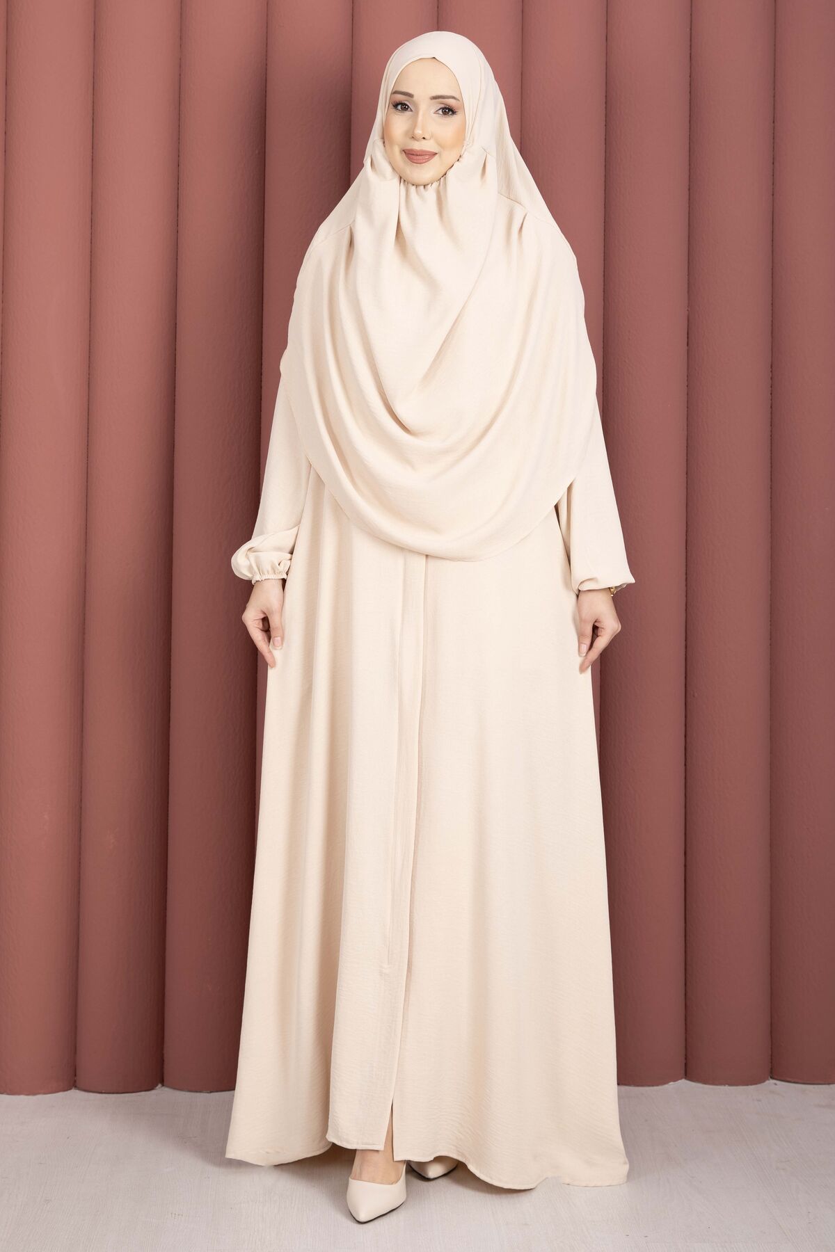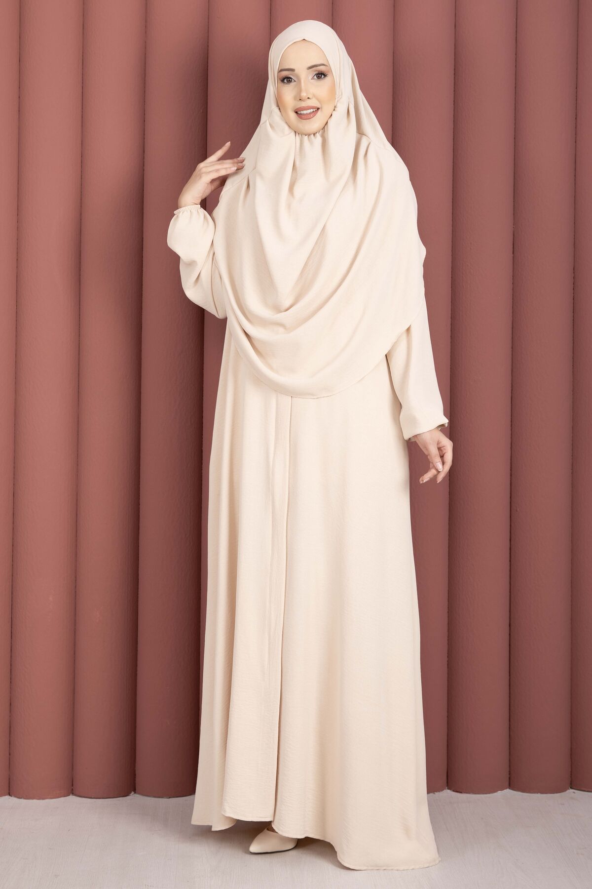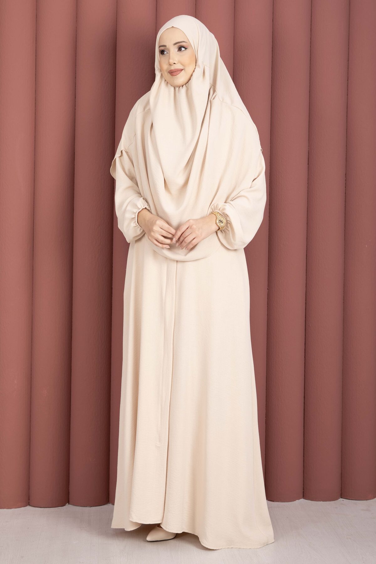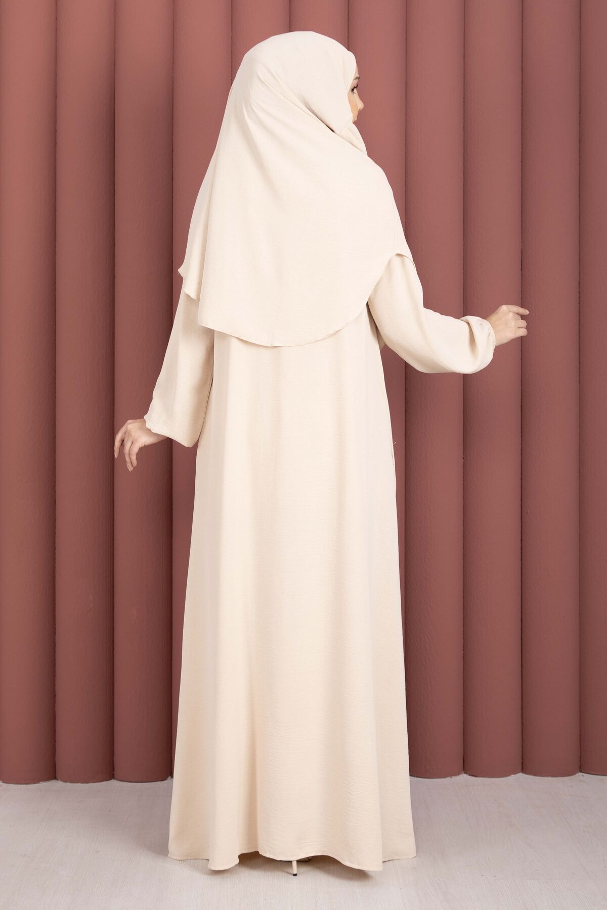 Hafsa Fermuar Detaylı Tesettür Namaz Elbisesi Bej