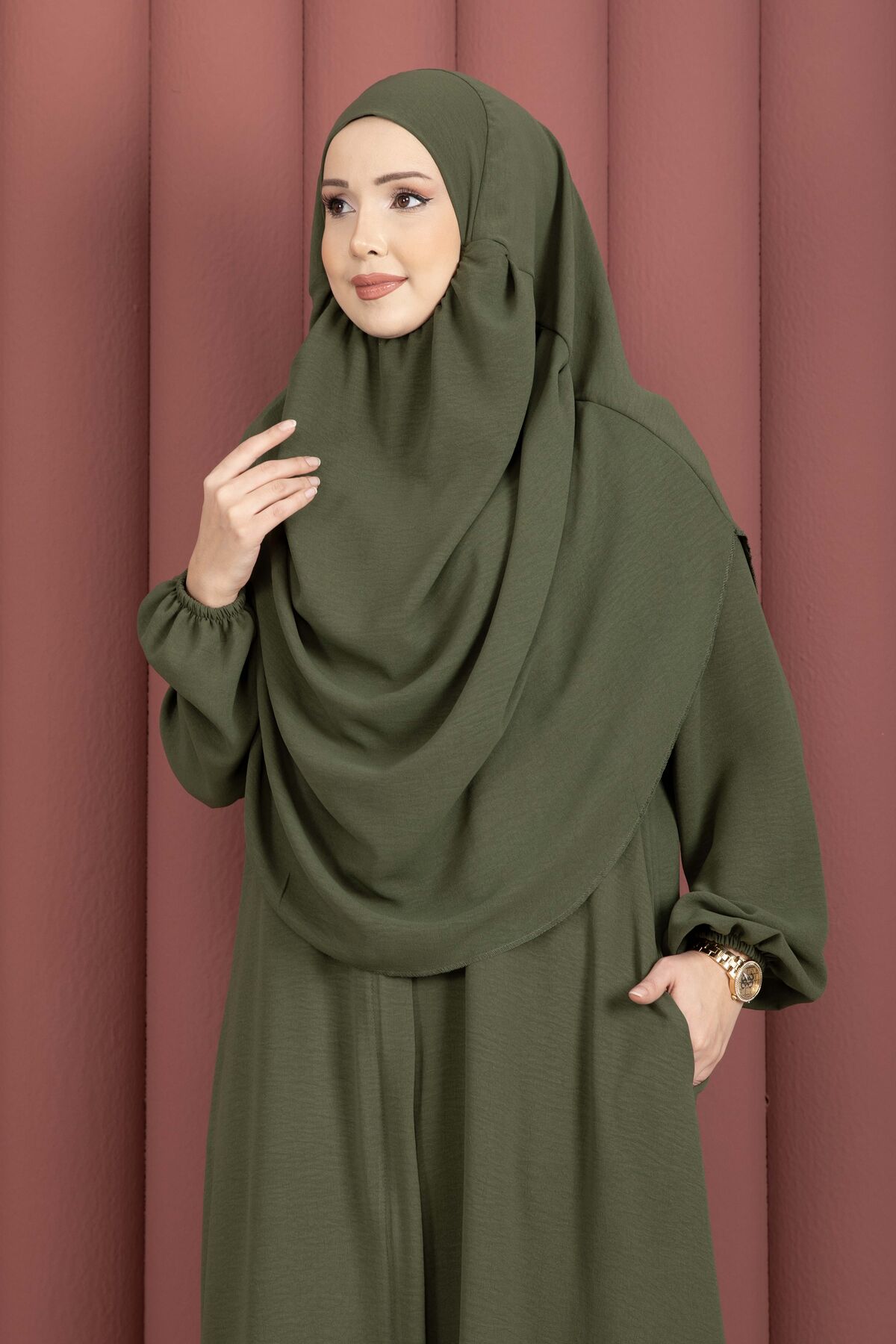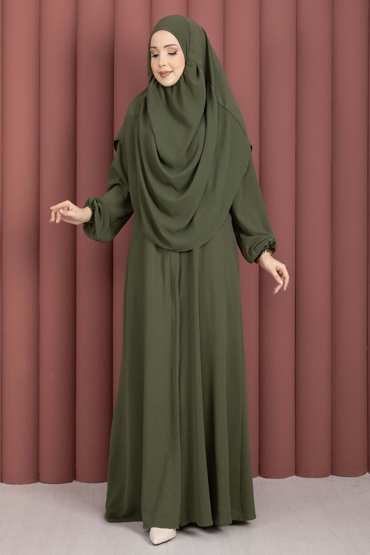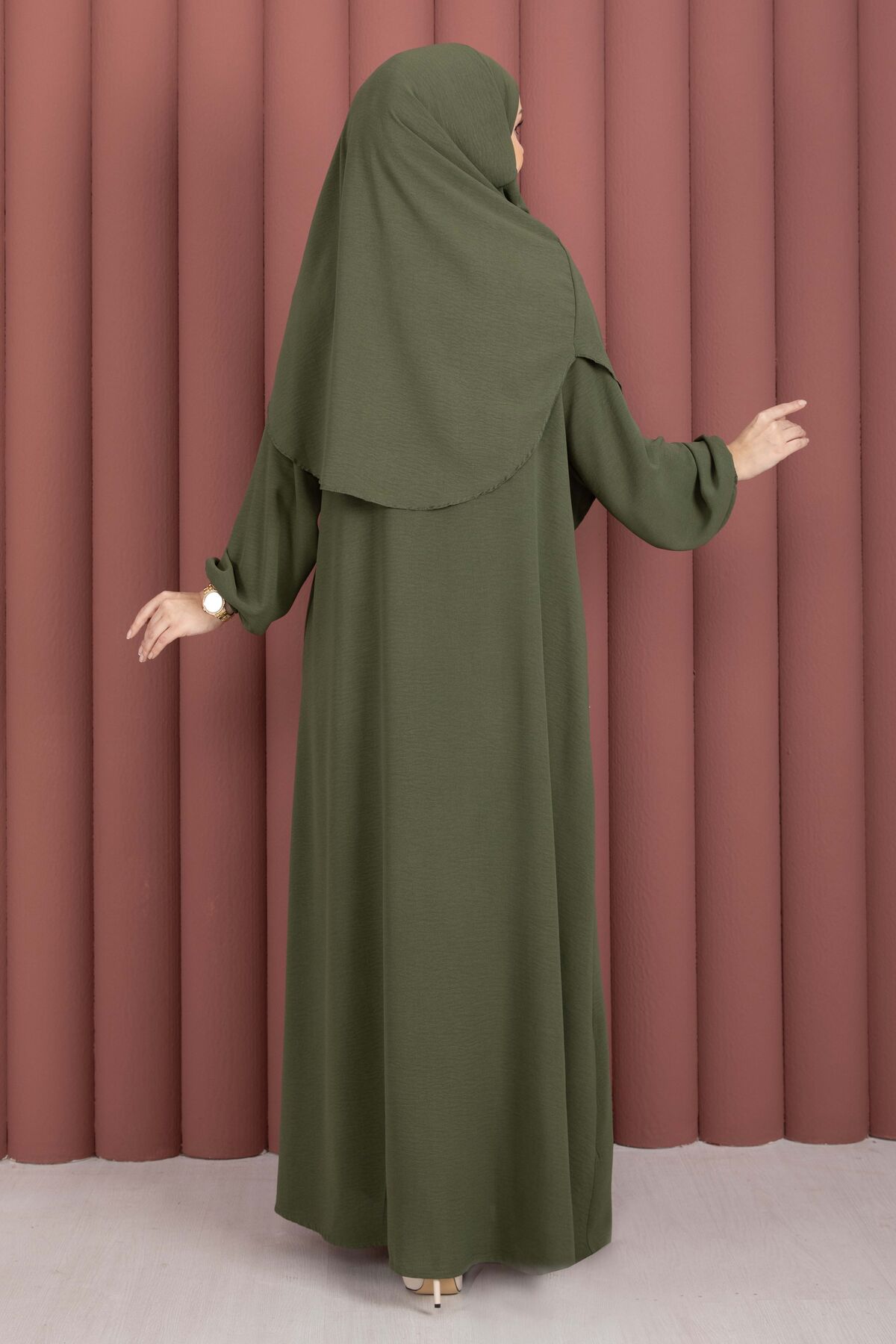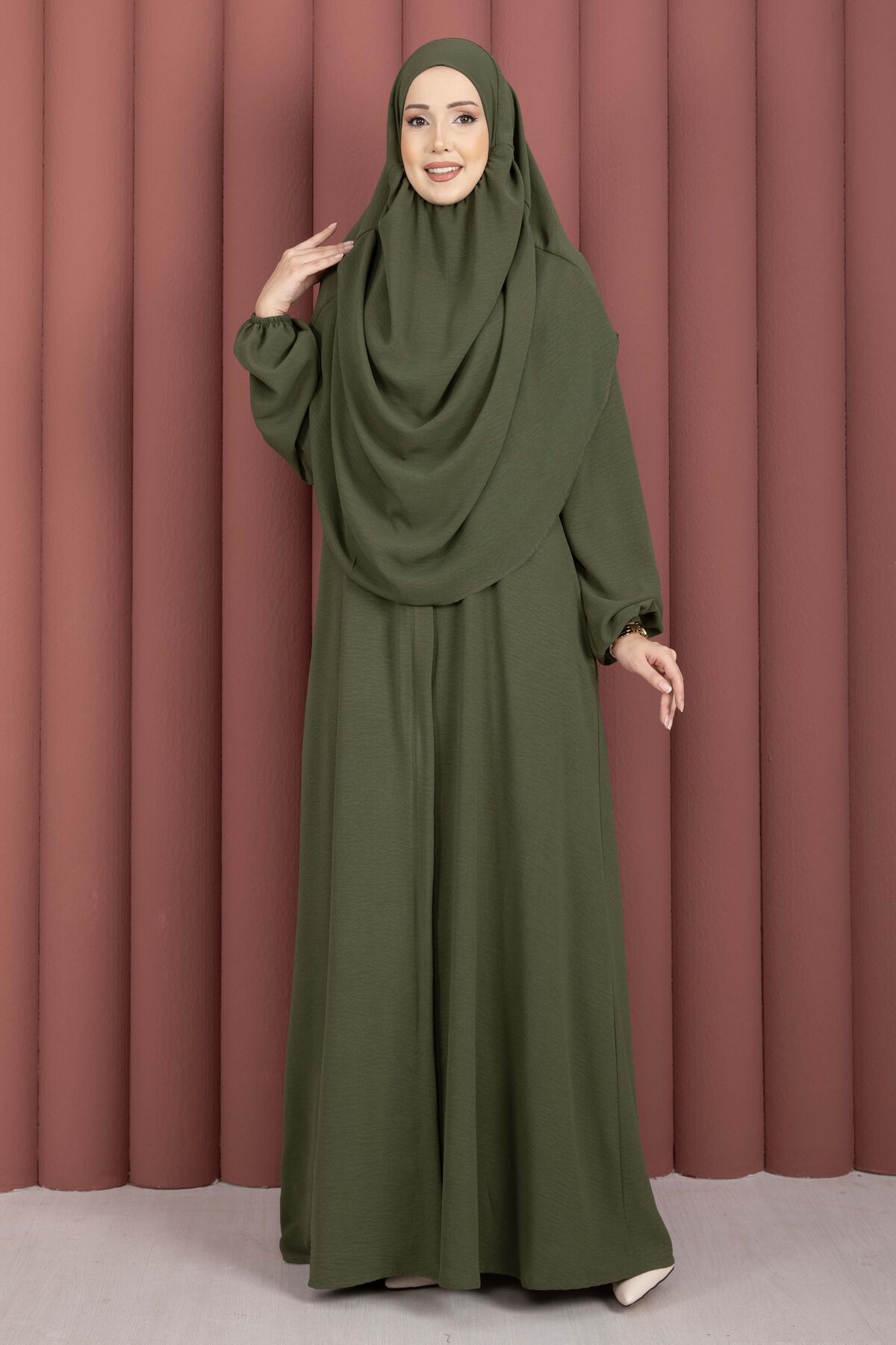 Hafsa Fermuar Detaylı Tesettür Namaz Elbisesi Haki