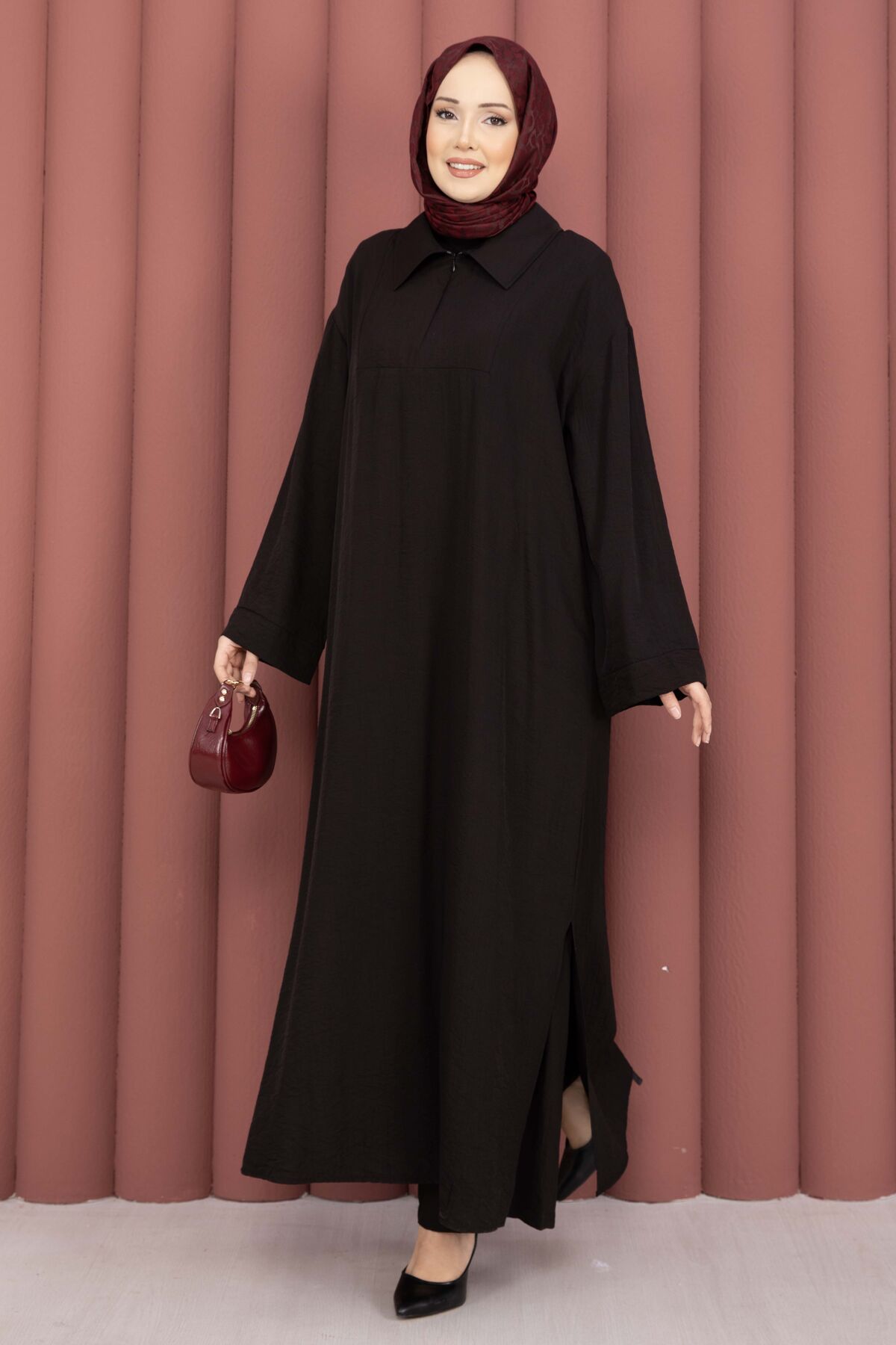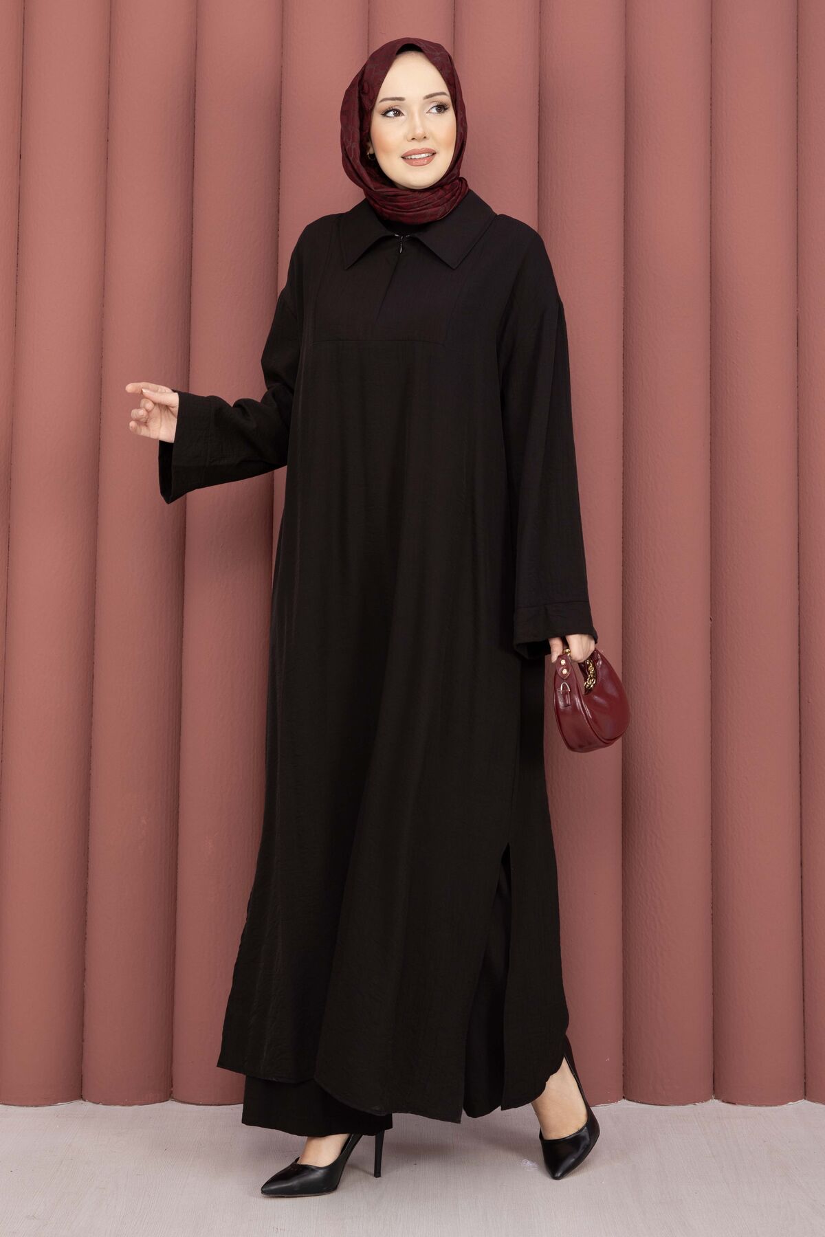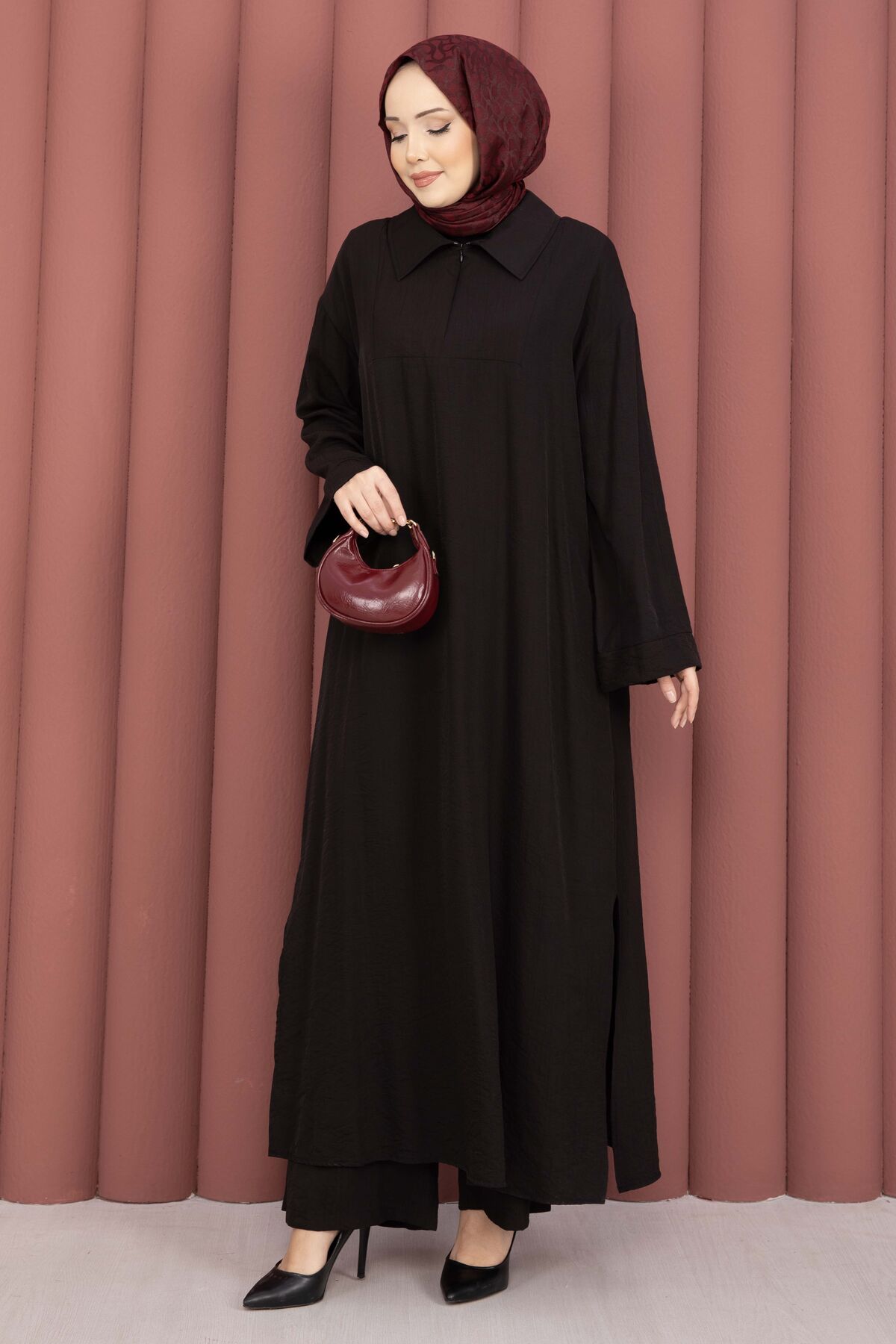 Hira Yarım Fermuarlı Tunik Takım Siyah