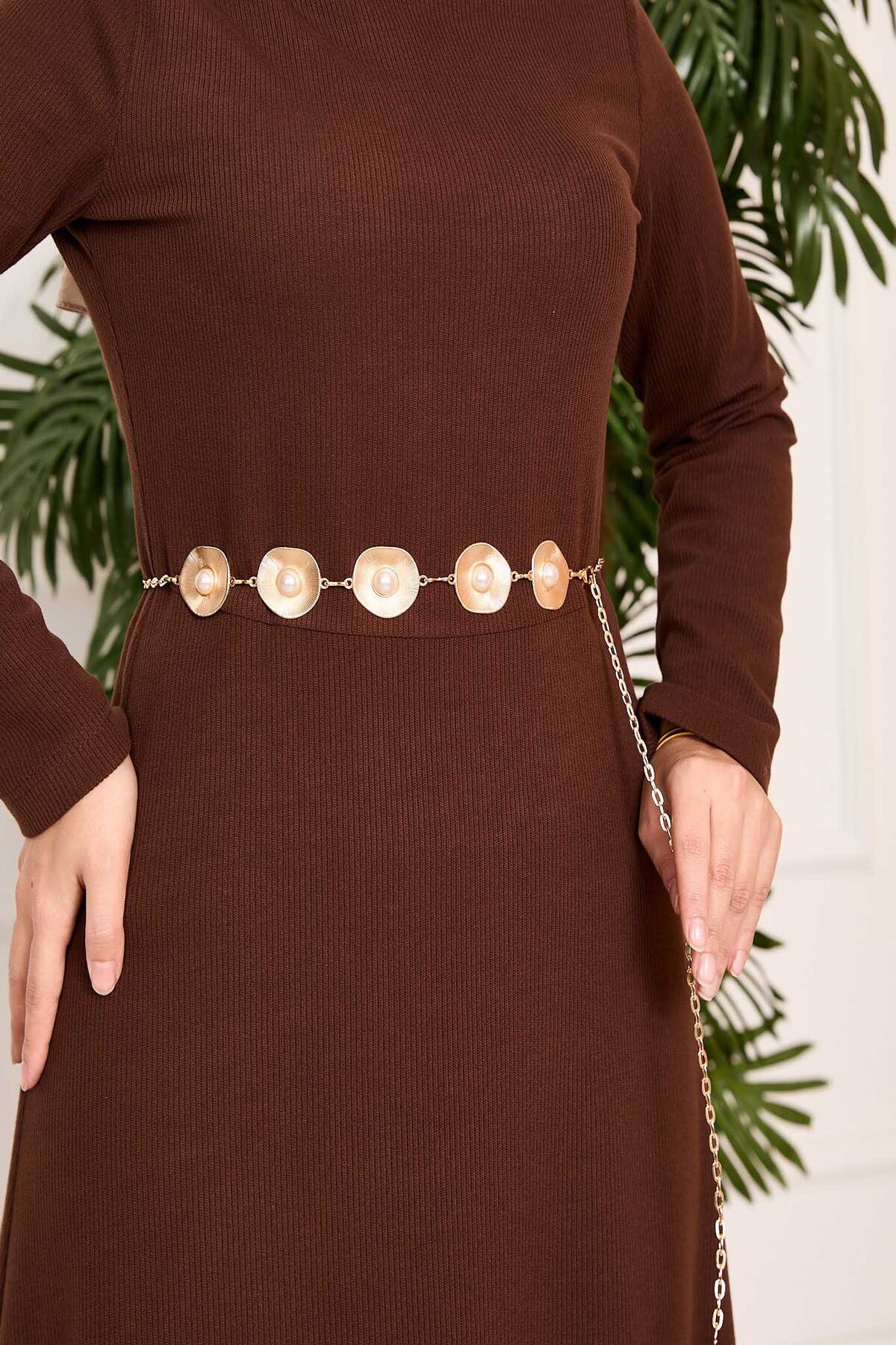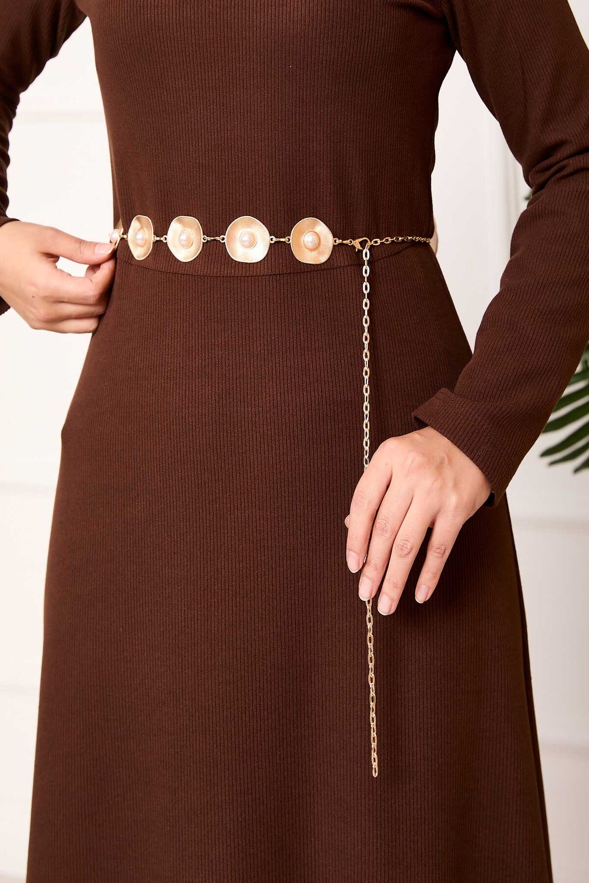 - Ürün inci detaylı zincir kemer gold renk.