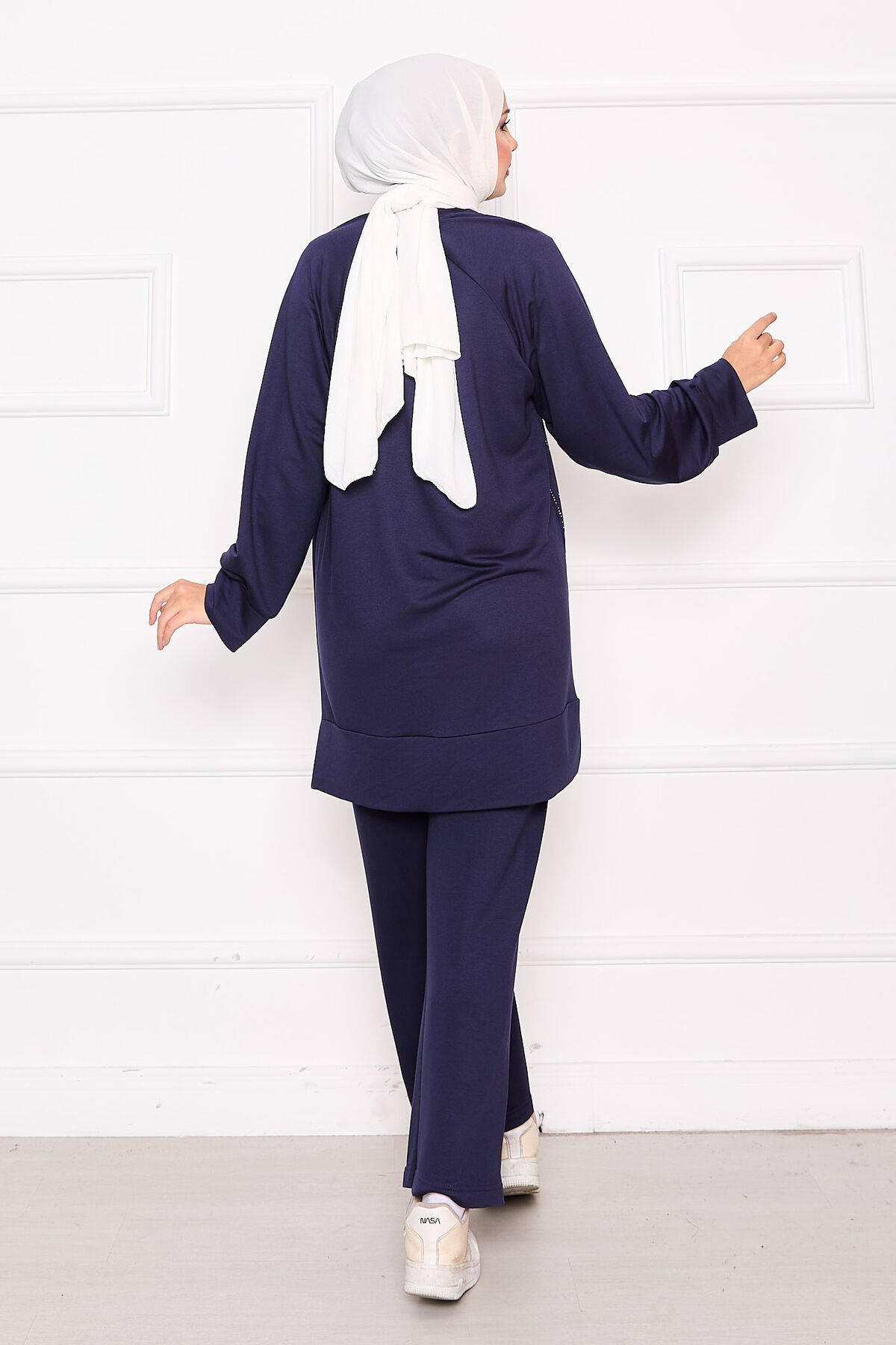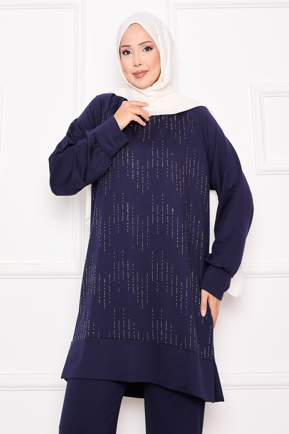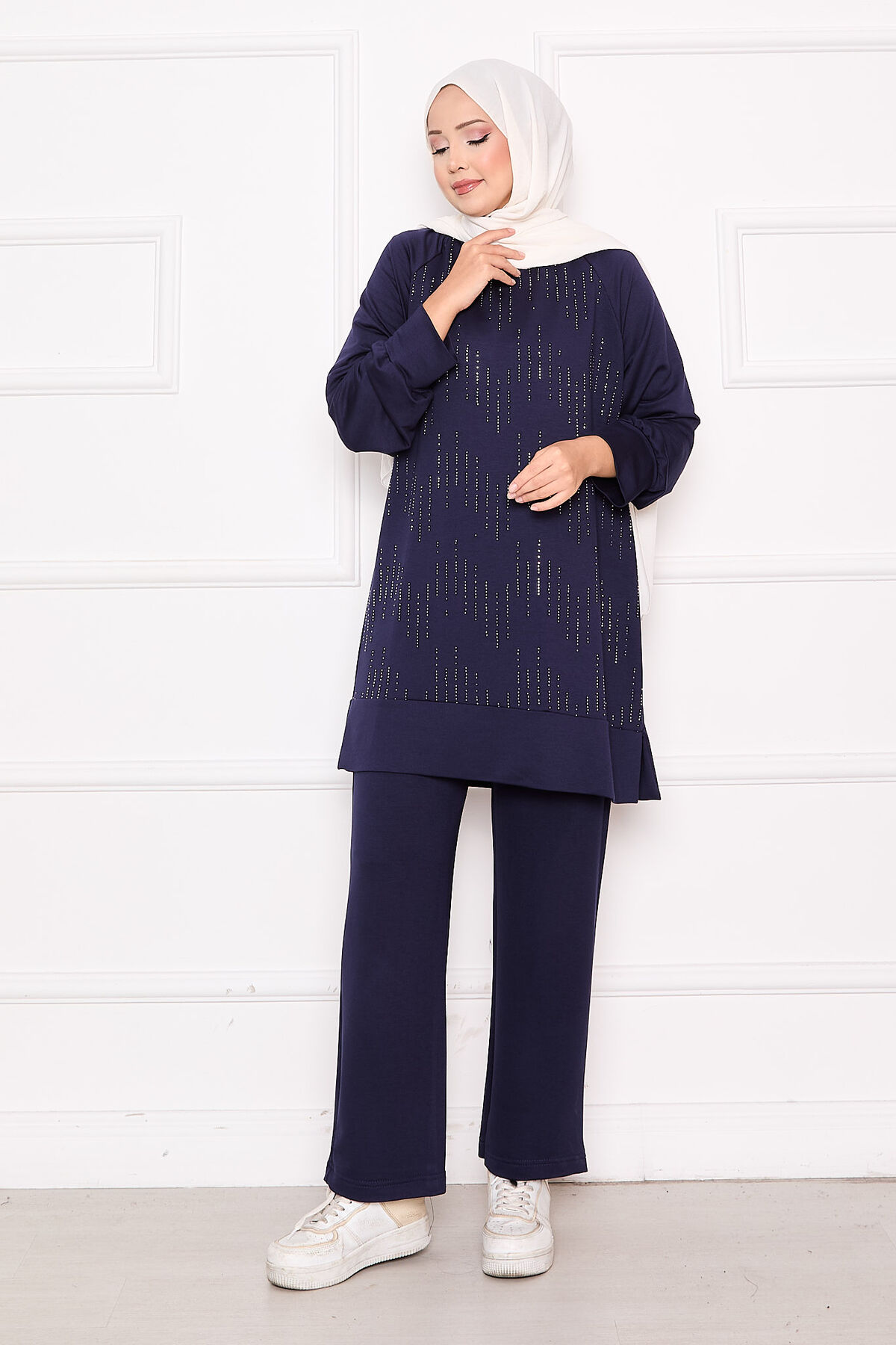 Işıltı Taş Detaylı Oyşo İkili Takım Lacivert