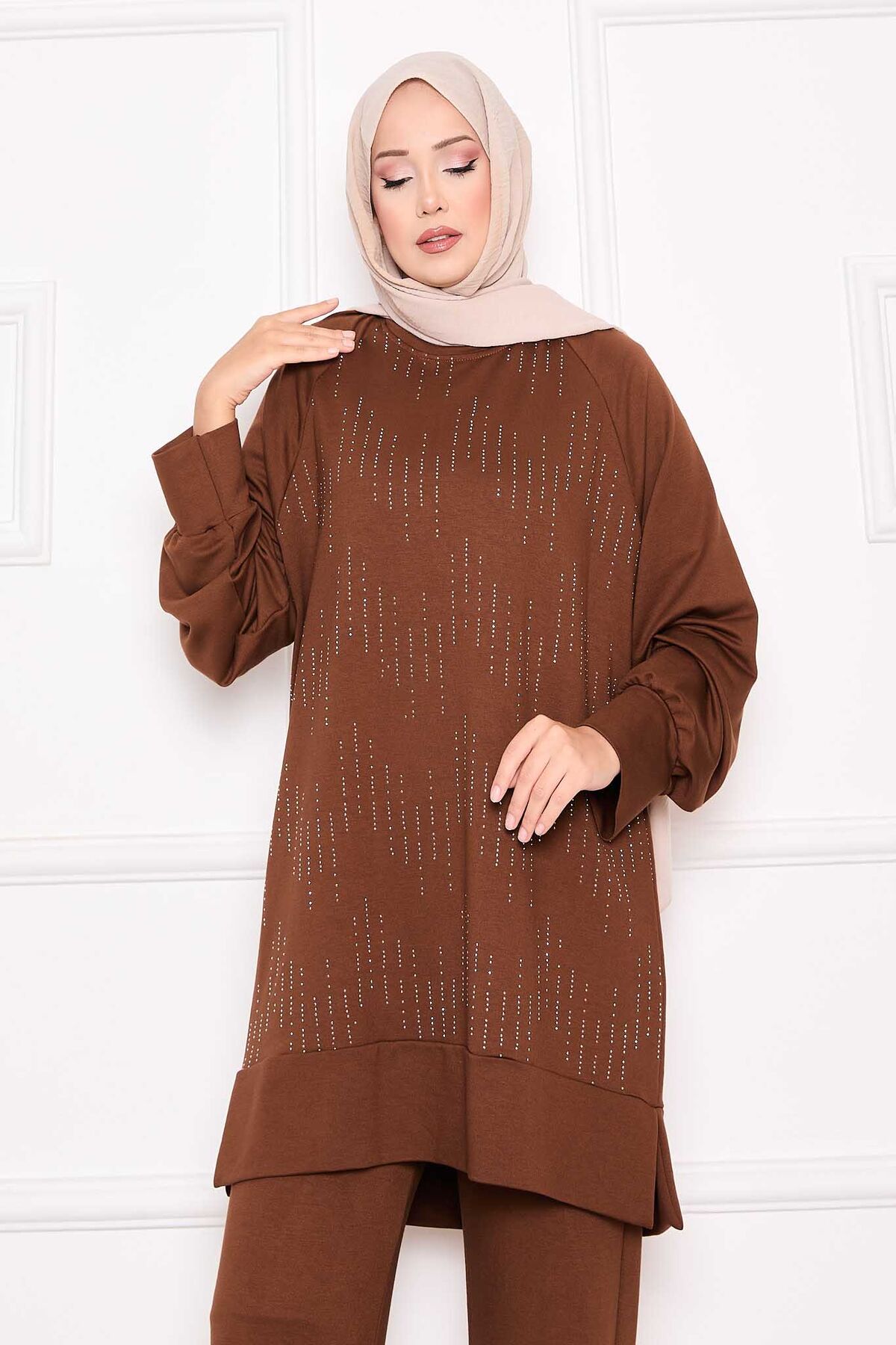 - Ürün mevsimliktir. Tunik pantolon ikili kombinimiz.Tunik önden taşlı taşları düşme yapmaz pantolon belden lastikli.