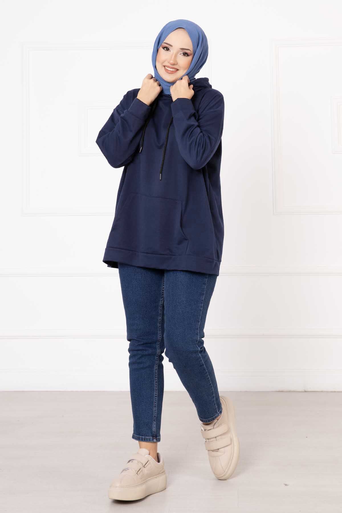 Kanguru Cepli Tesettür Sweatshirt İndigo
