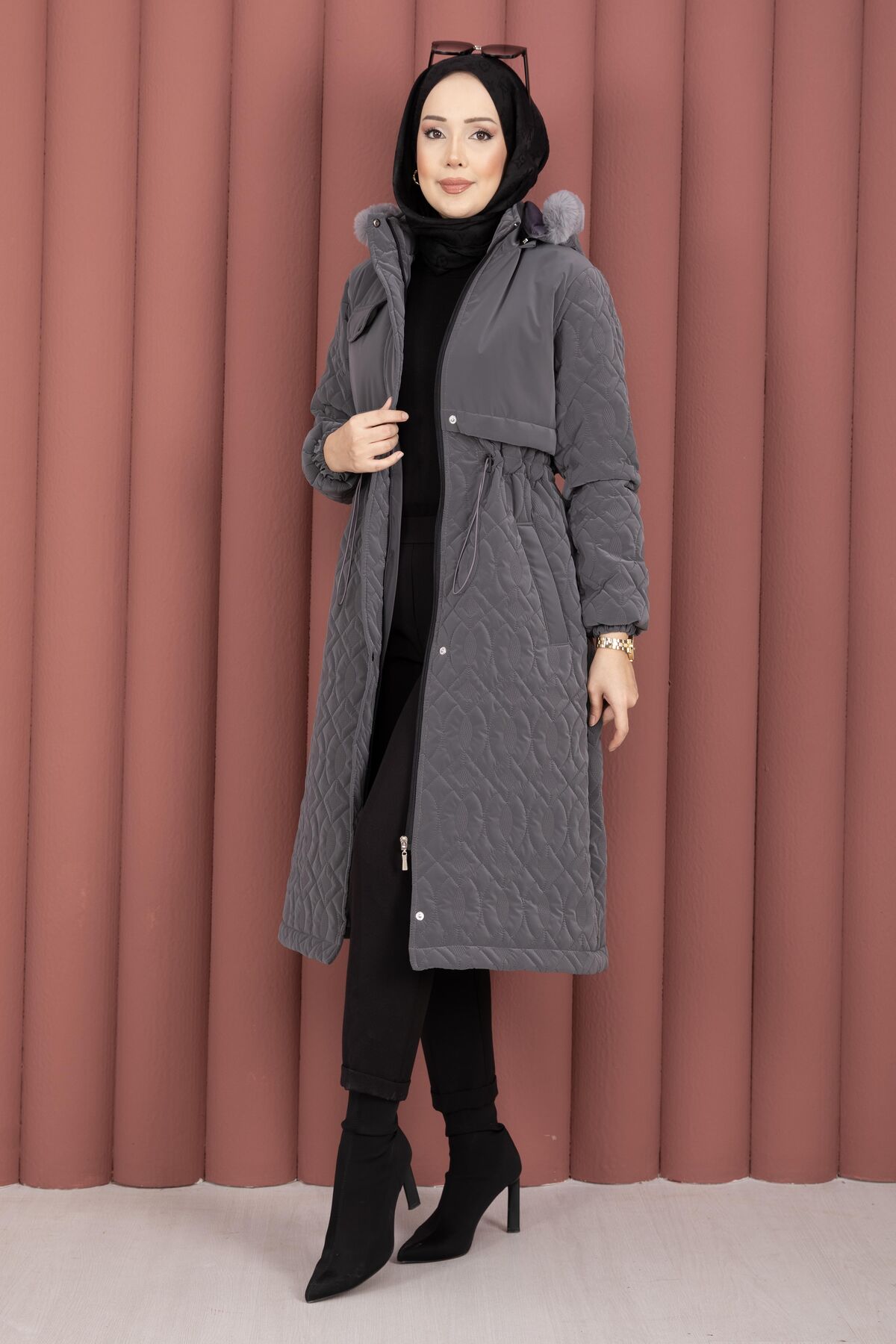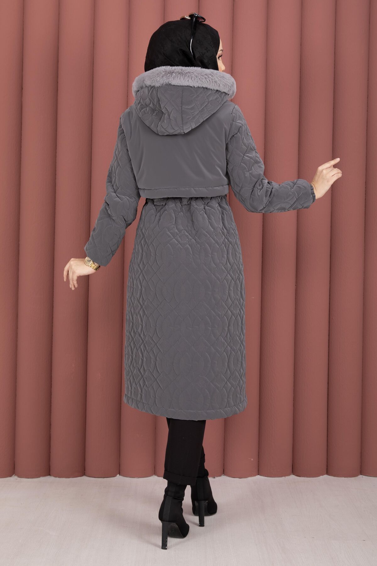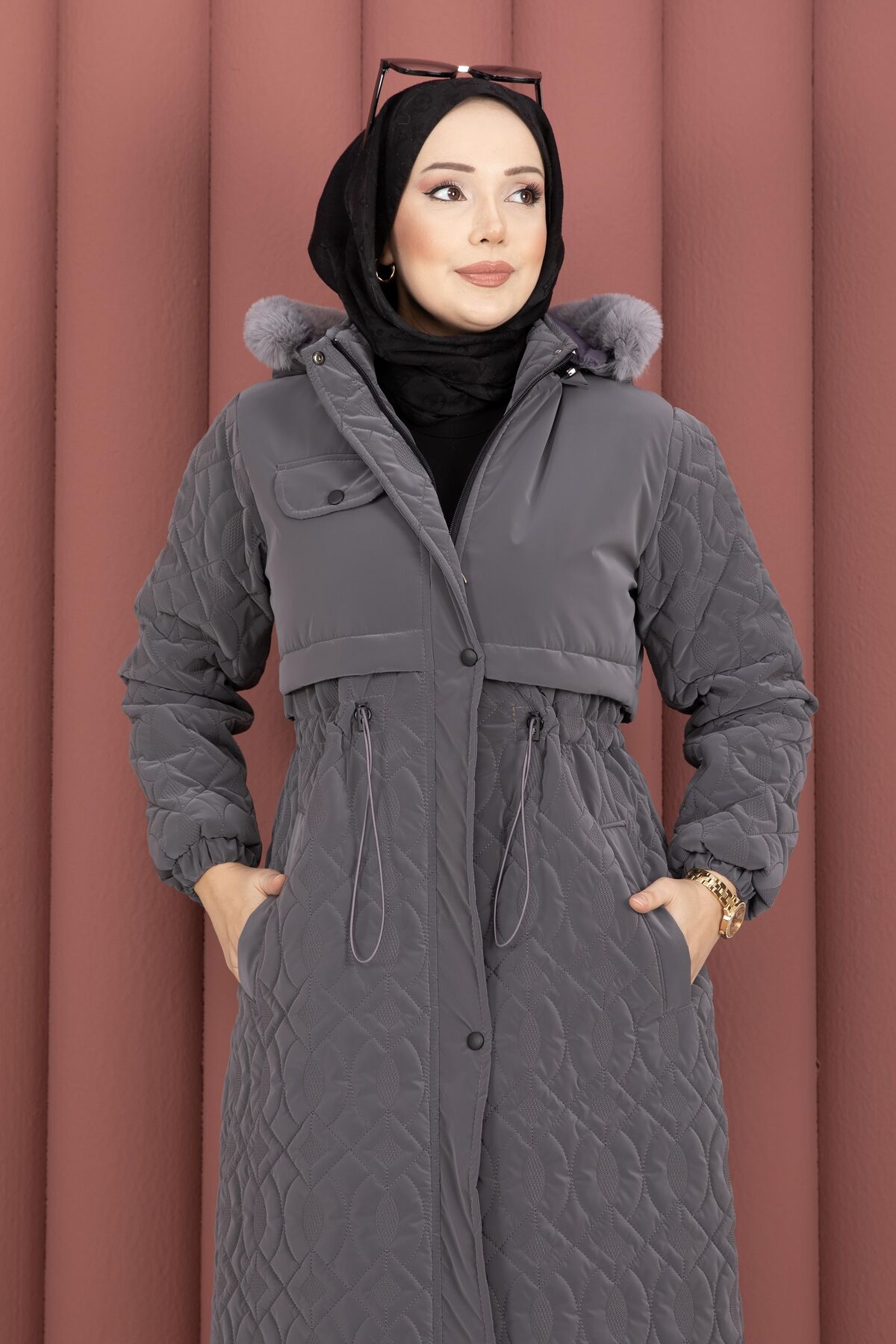 Kapitone Desen Kürk Kapüşonlu Nova Kaban, modern kapitone dokusu ve şık tasarımıyla soğuk havalarda hem konfor hem de stil sunar. Günlük kullanıma uygun formu, zarif detaylarıyla klasik kombinlerle de kolayca uyum sağlar. Kürklü kapüşonu çıkarılabilir, önden fermuarlı tasarımı ile hem fonksiyonel hem de estetik bir kullanım imkânı sunar.