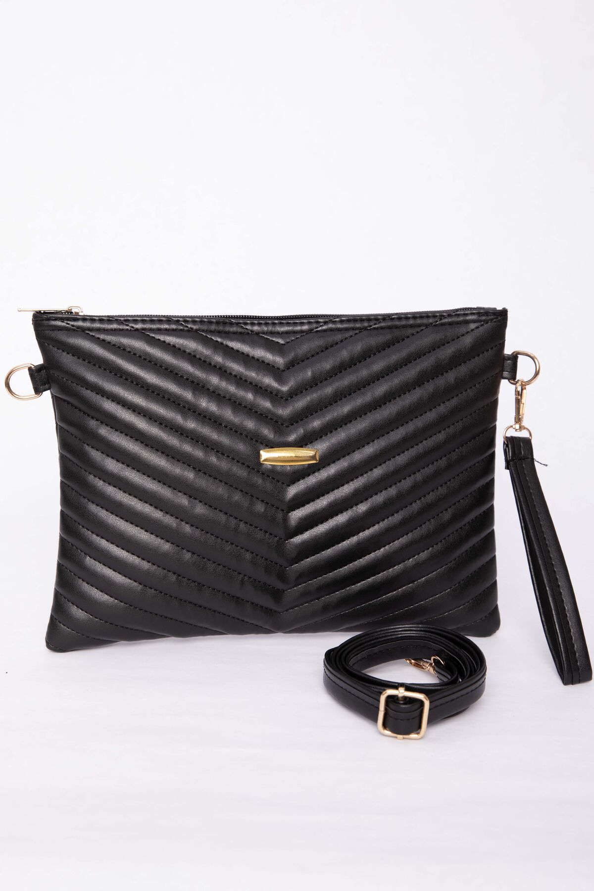 Kapitone Desenli Fermuarlı Portföy Çanta Siyah