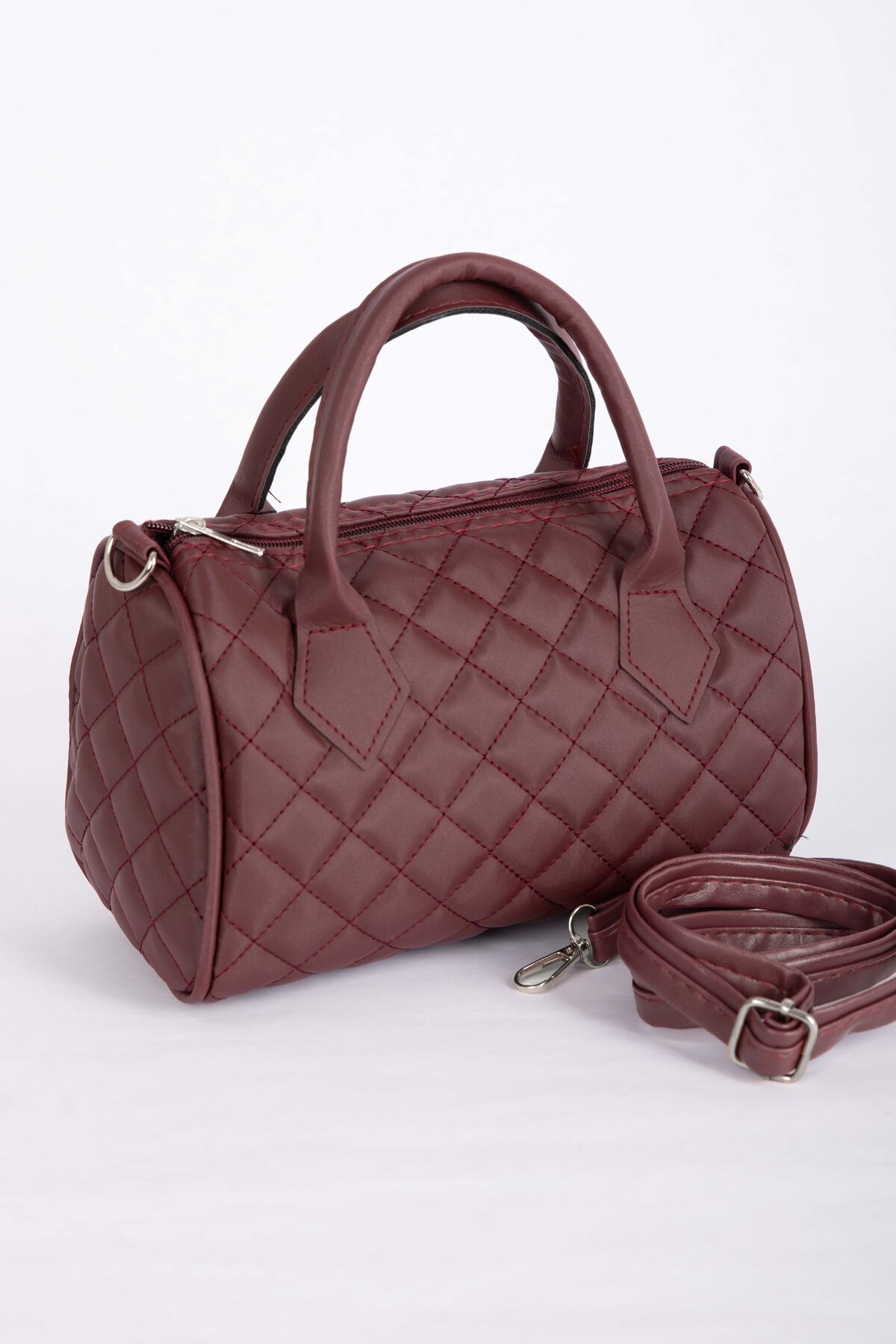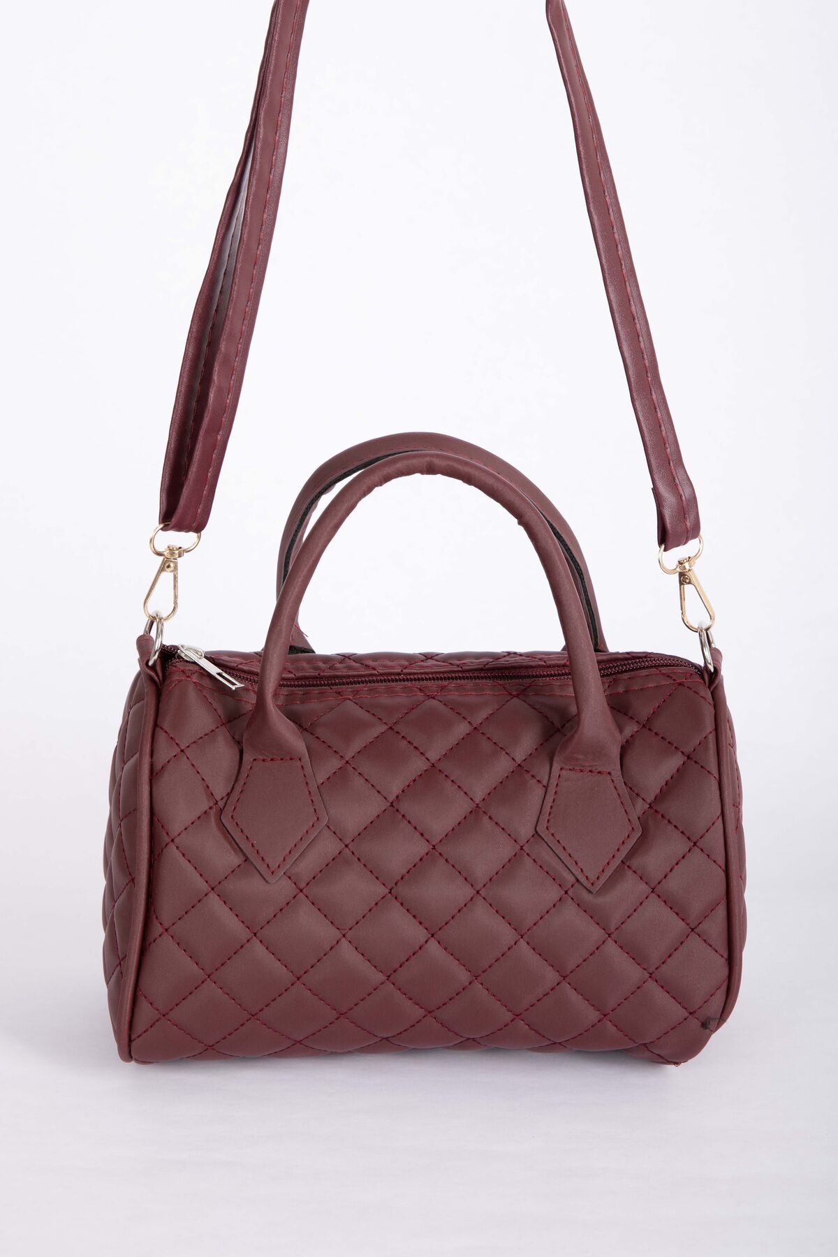 Kapitone Dikişli El & Omuz Çantası Bordo
