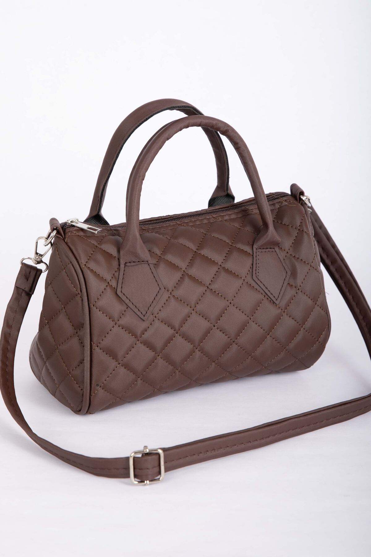 Kapitone Dikişli El & Omuz Çantası Kahve