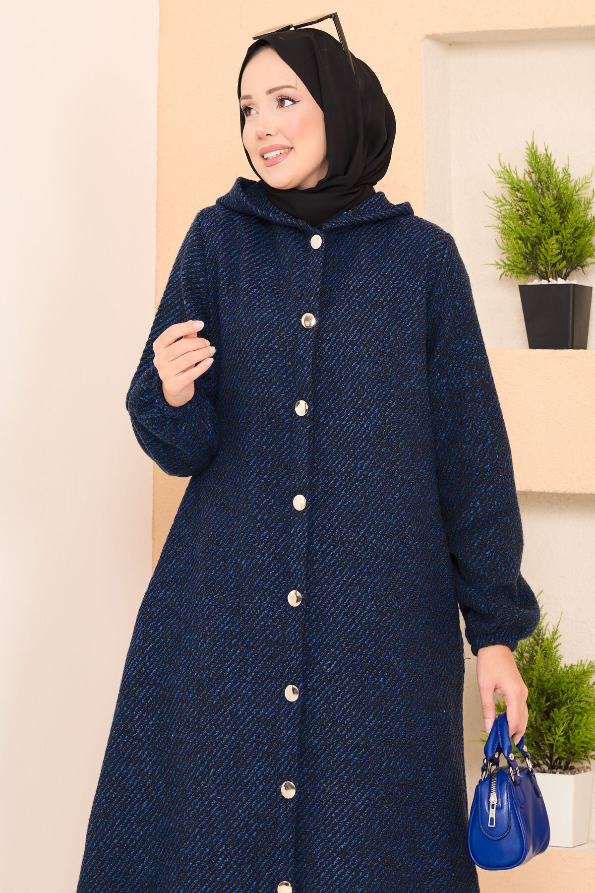 Kapüşon Detaylı Balıksırtı Tesettür Kaşe Kap Saks