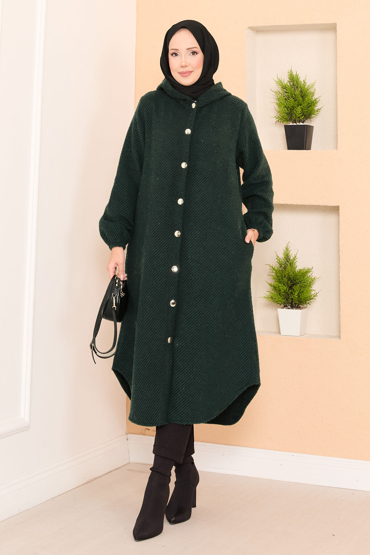 Kapüşon Detaylı Balıksırtı Tesettür Kaşe Kap Zümrüt