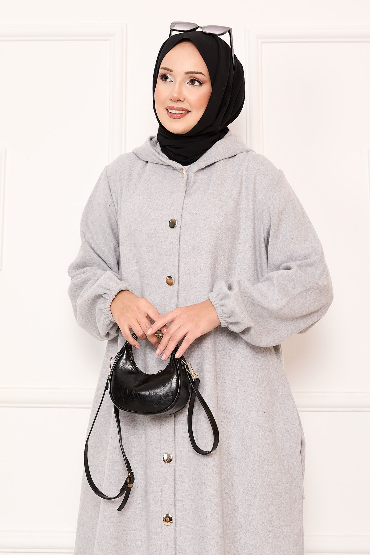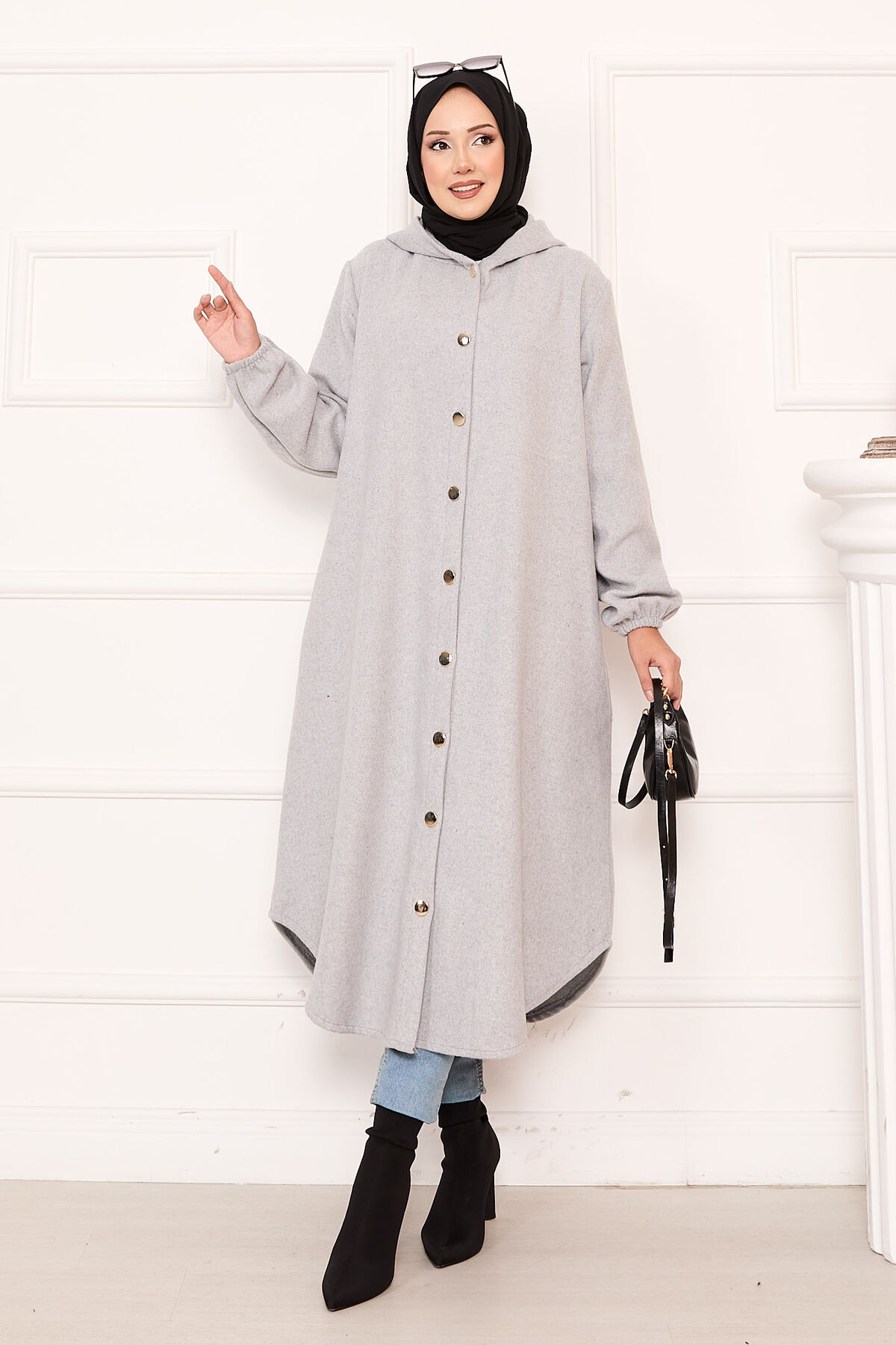 Kapüşonlu Boydan Düğmeli Kaşe Kap Gri Yorumları