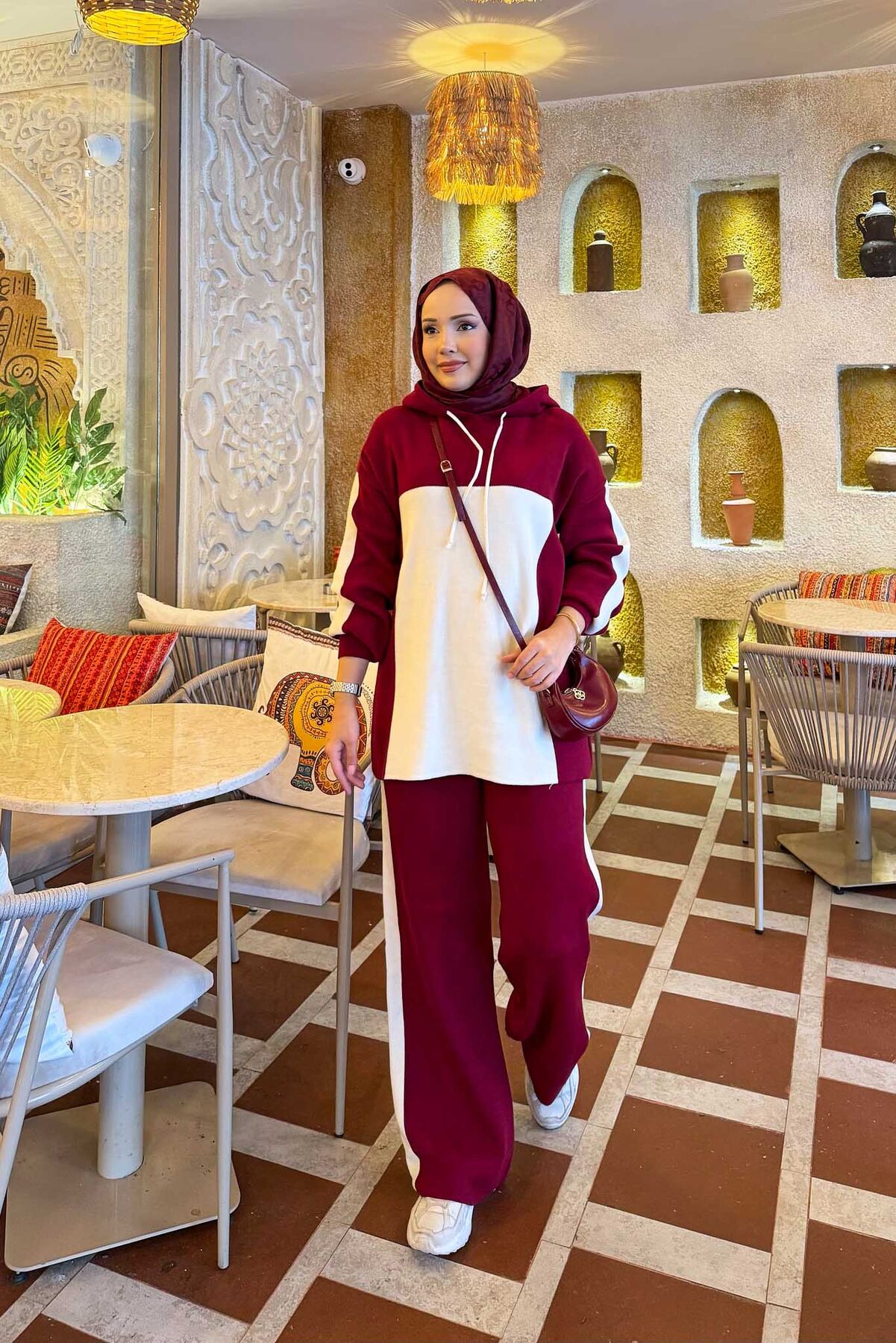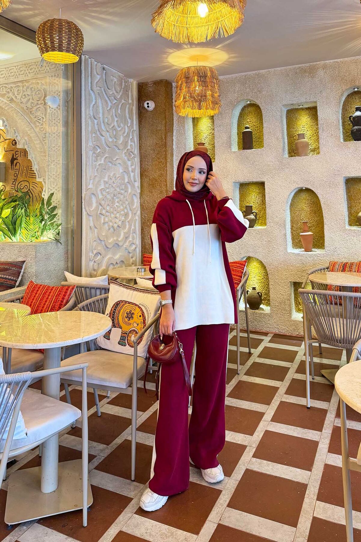 Kapüşonlu İki Renk Triko Takım Bordo Yorumları