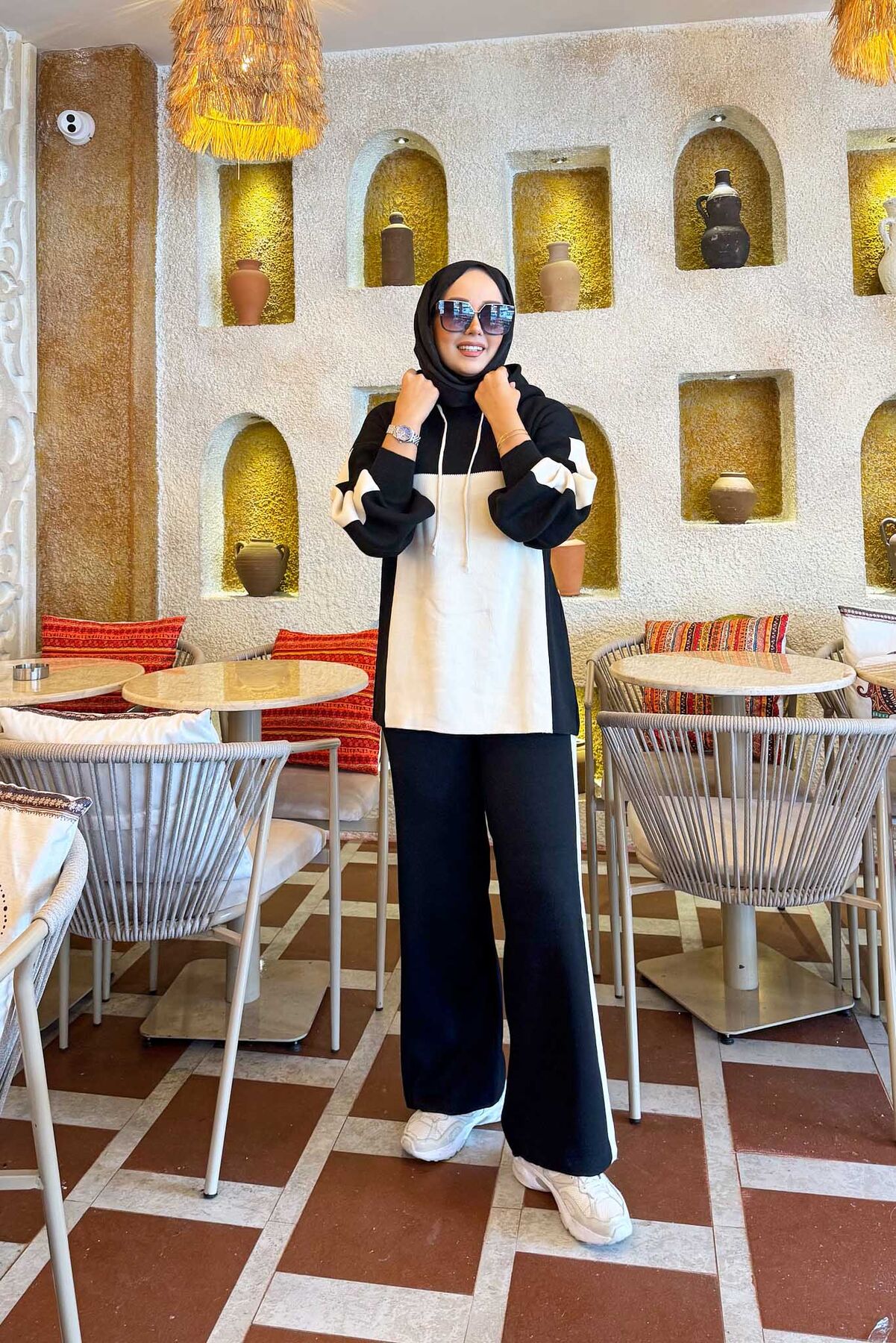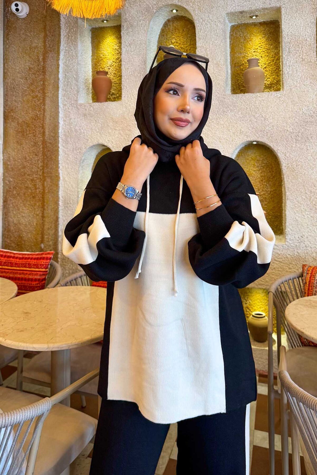 Kapüşonlu İki Renk Triko Takım Siyah Yorumları
