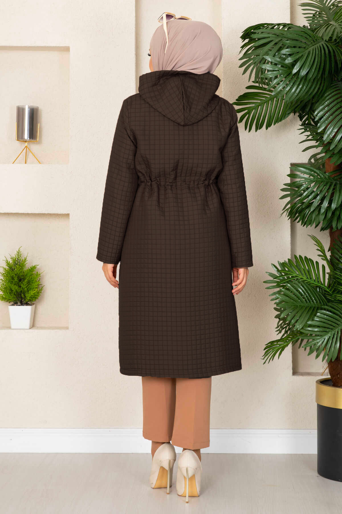 Kapüşonlu Kapitone Tesettür Trenç Kahve