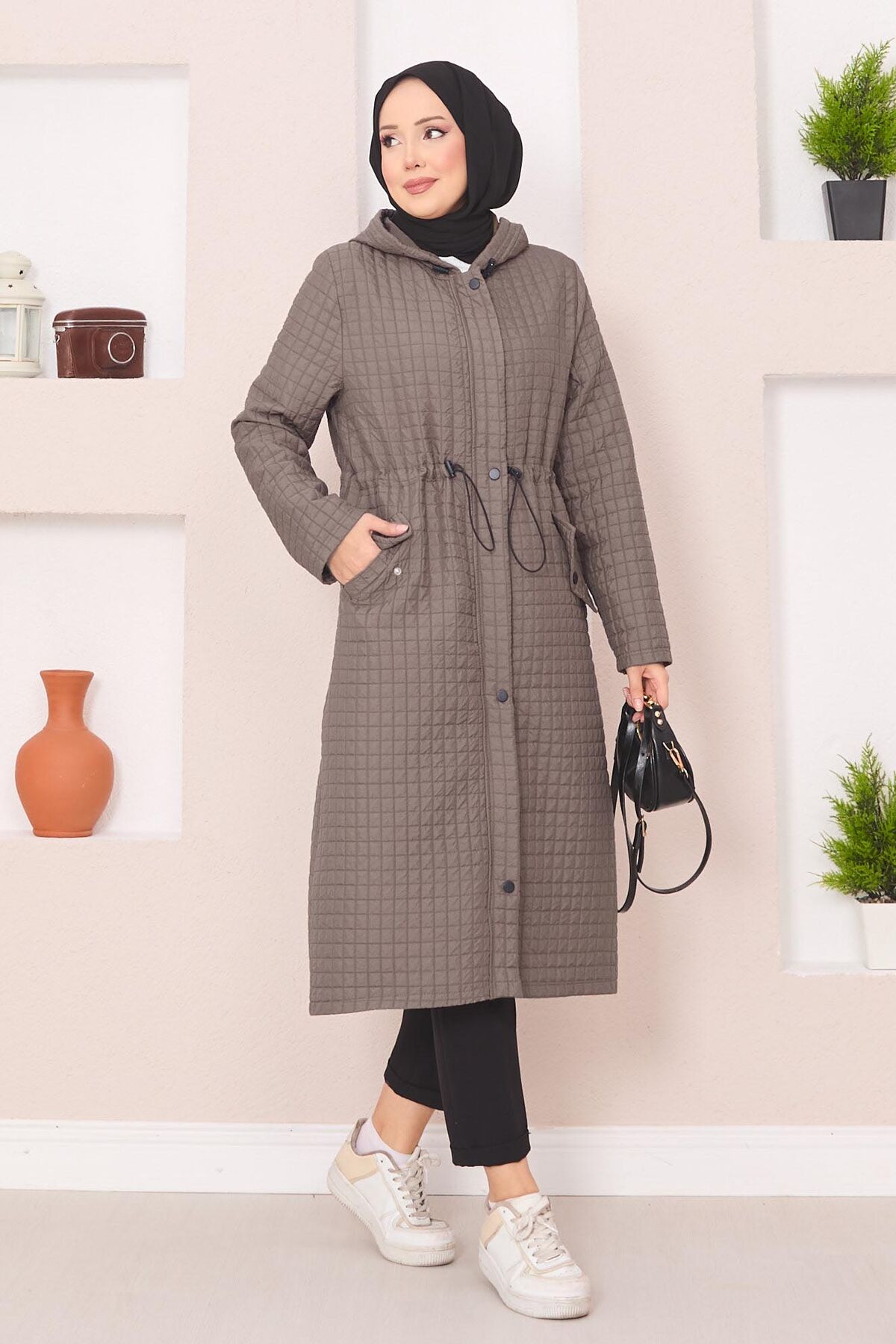 Kapüşonlu Kapitone Tesettür Trenç Koyu Vizon