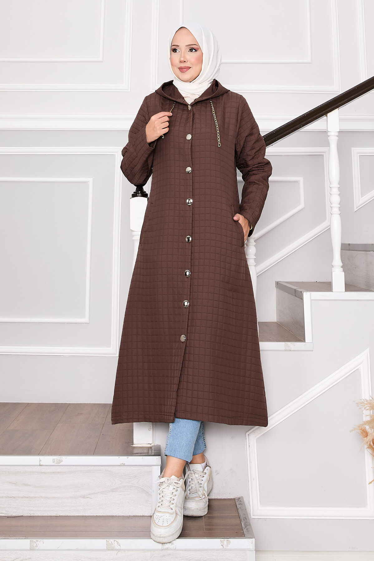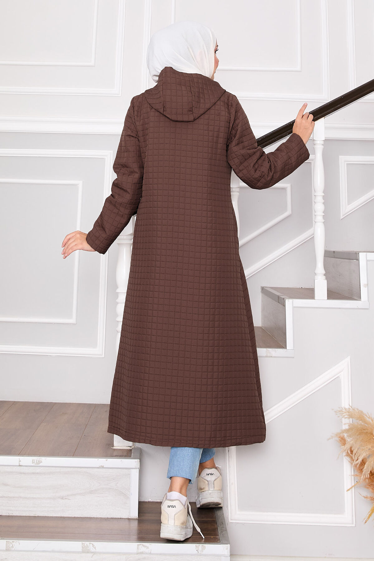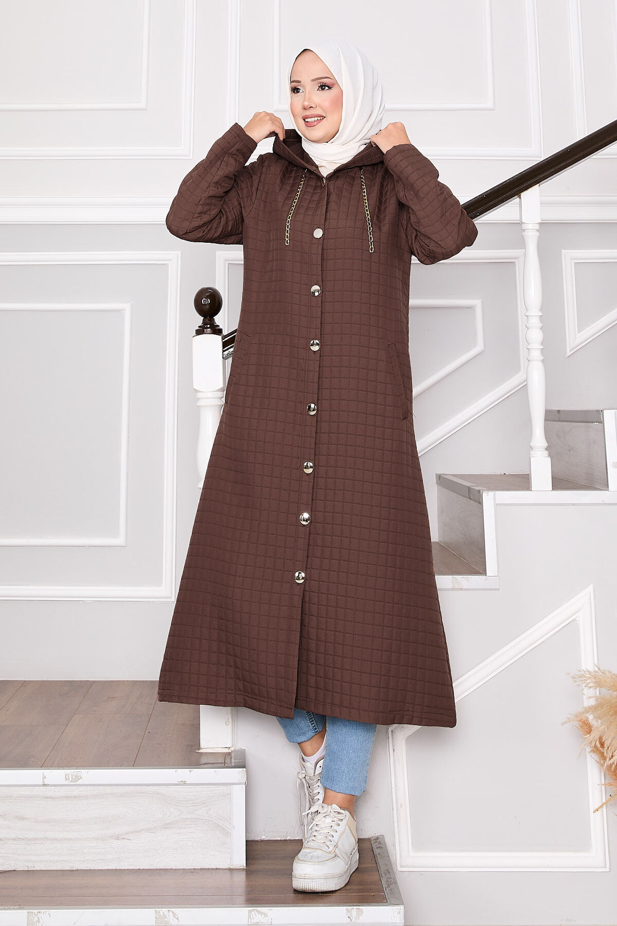 Kapüşonlu Ve Cep Detaylı Kapitone Kap Kahve