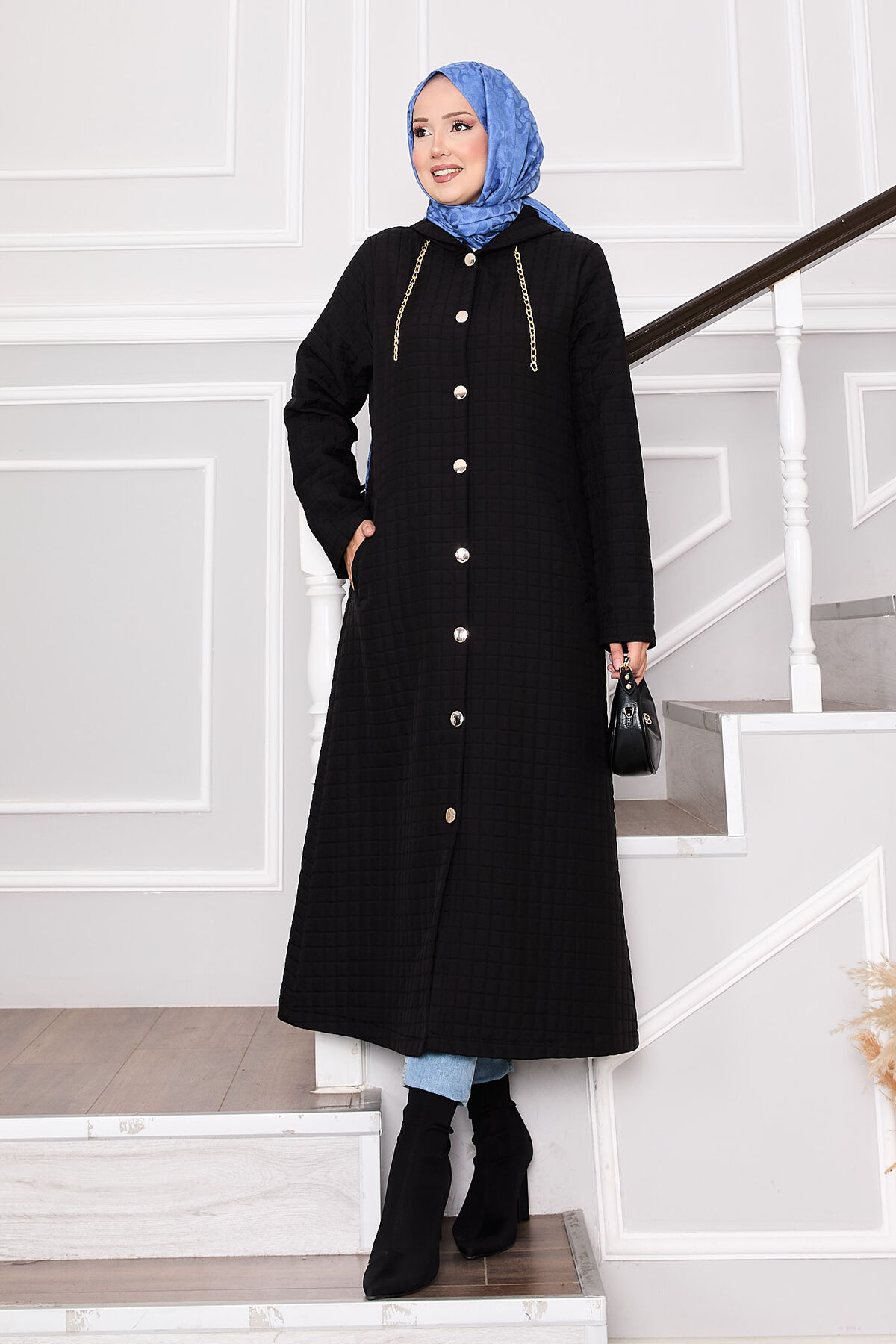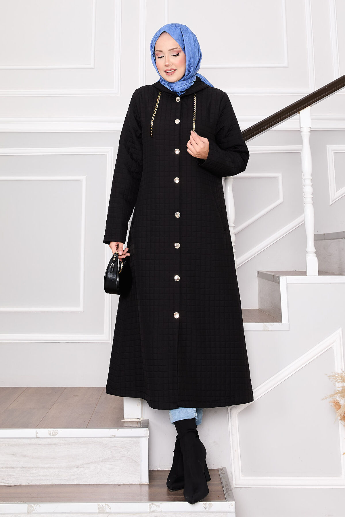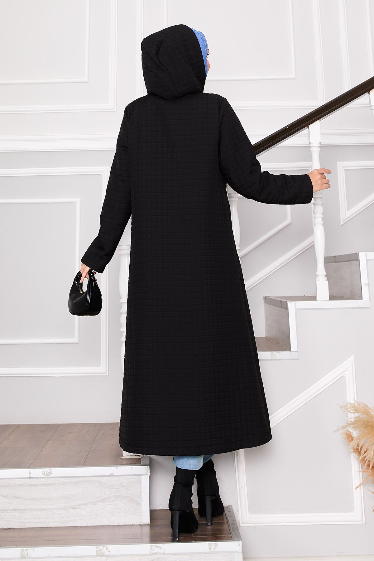 Kapüşonlu Ve Cep Detaylı Kapitone Kap Siyah