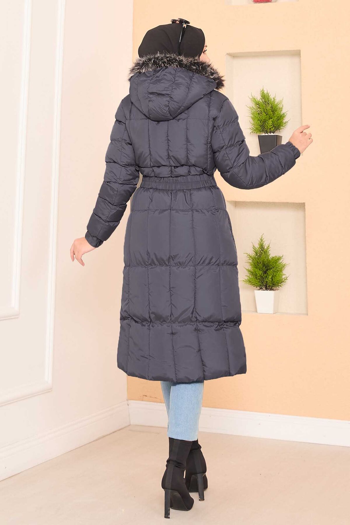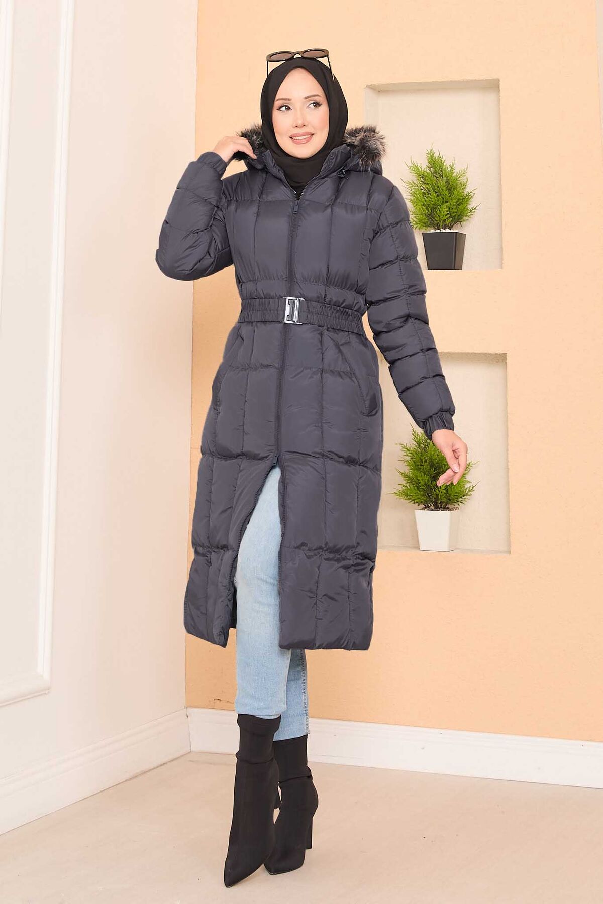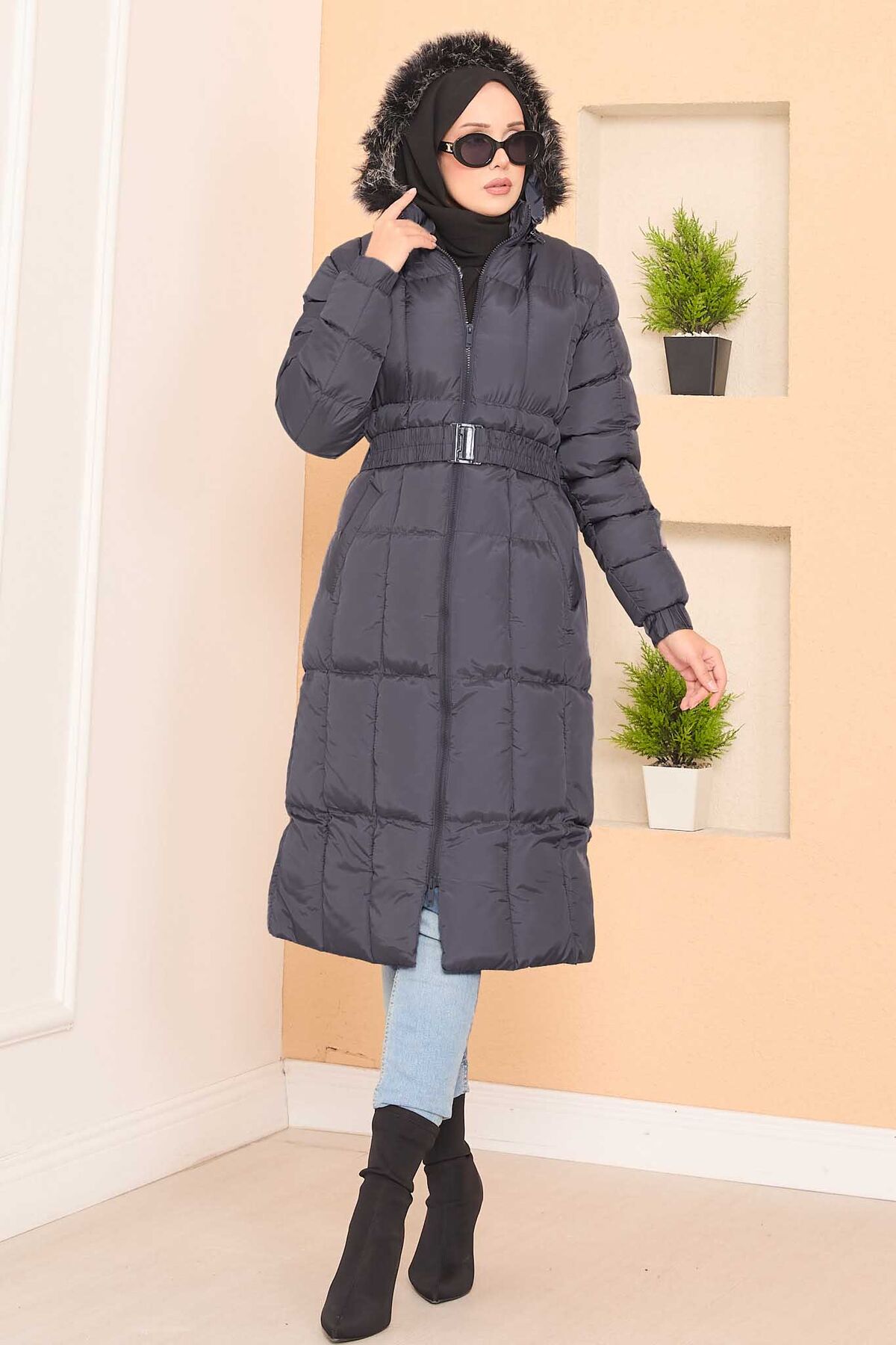 Kapüşonu Kürklü Seyyar Kemerli Şişme Mont Gri Yorumları