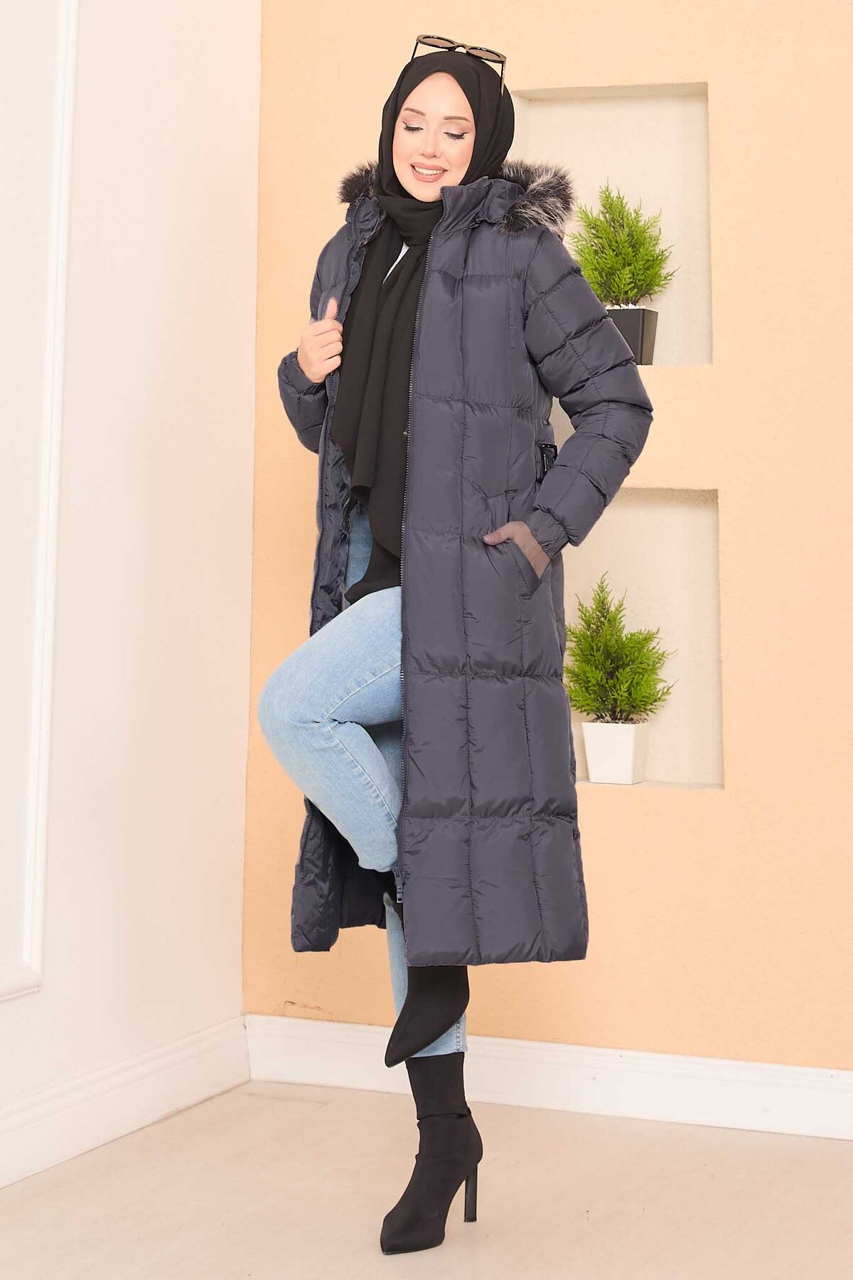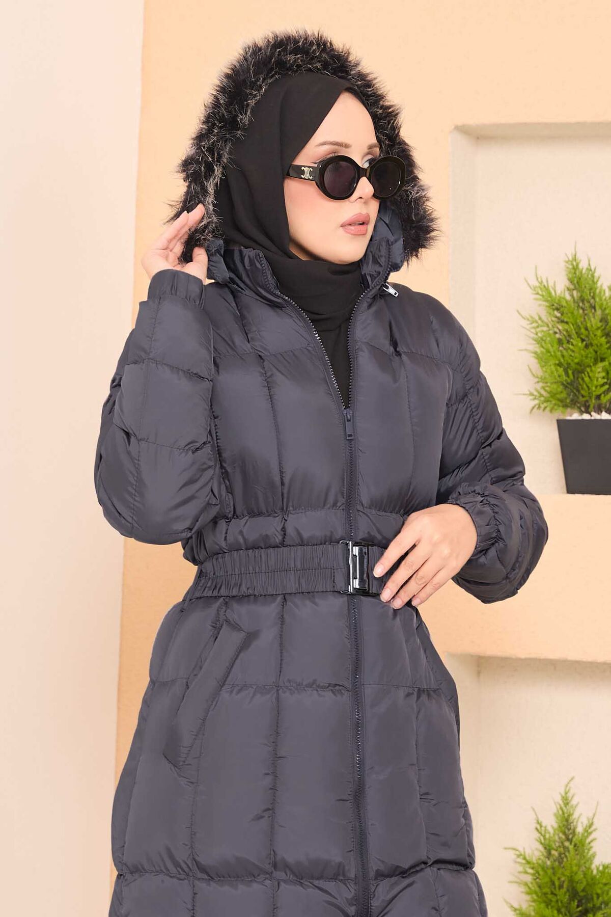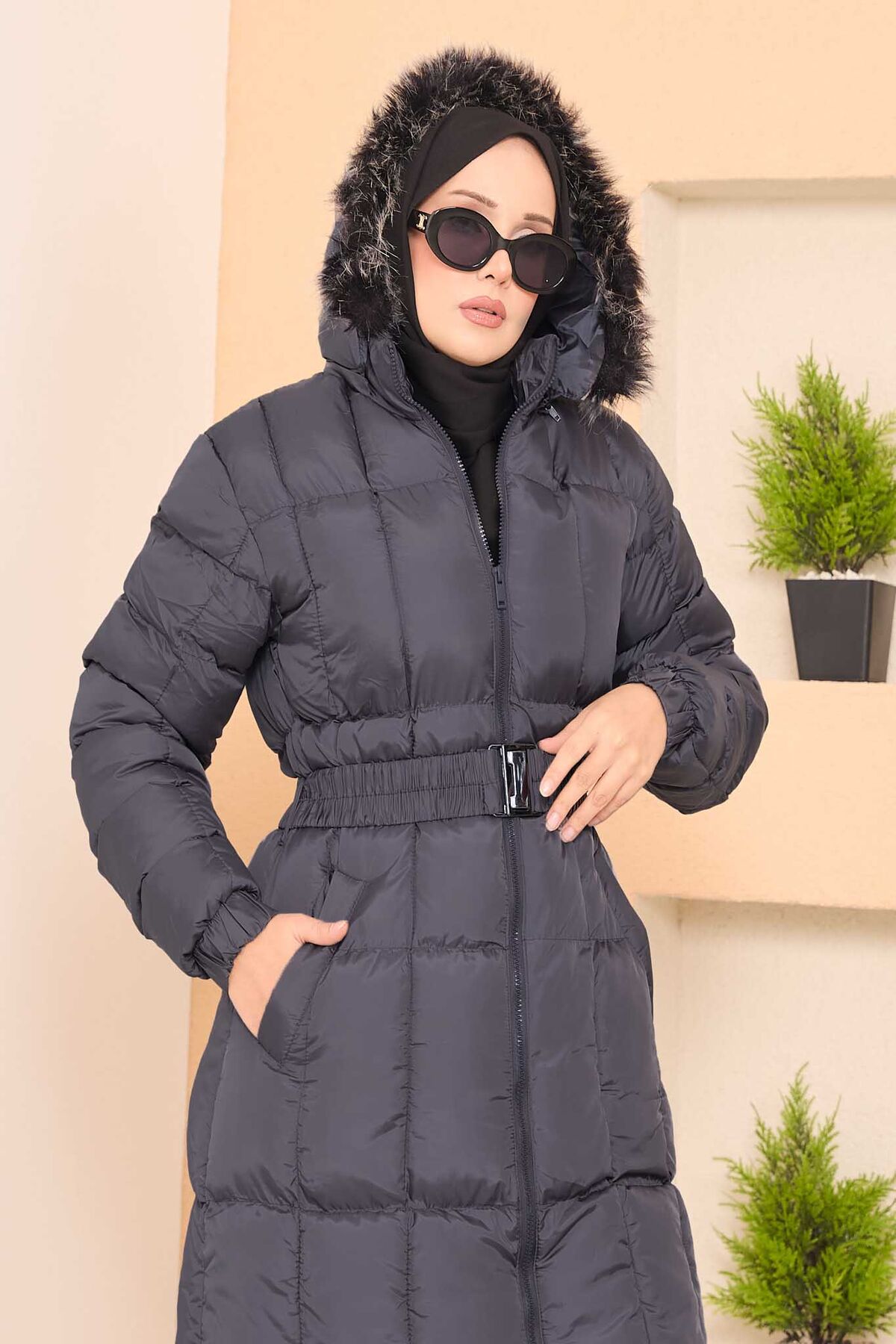 Kapüşonu Kürklü Seyyar Kemerli Şişme Mont Gri Yorumları