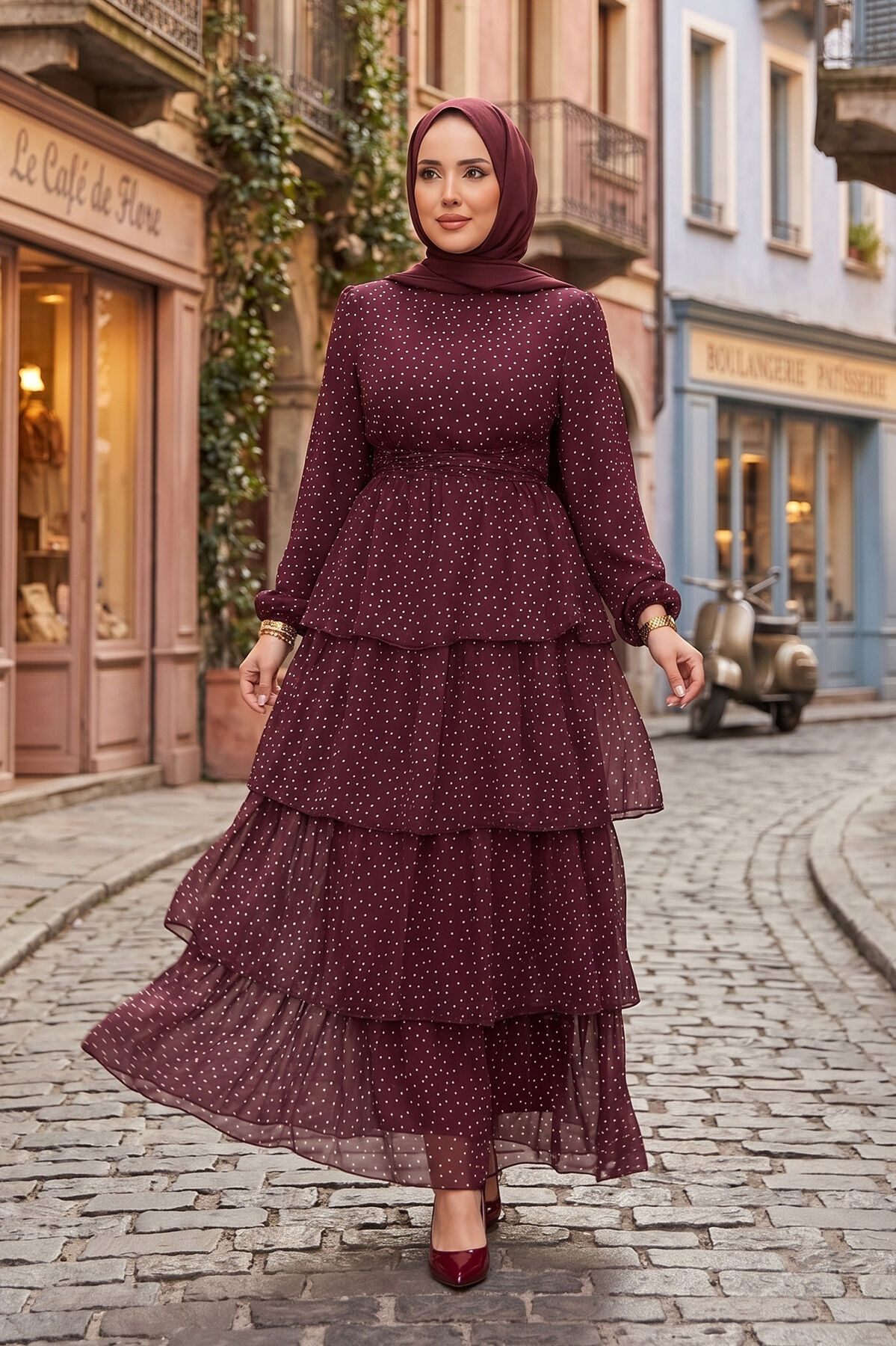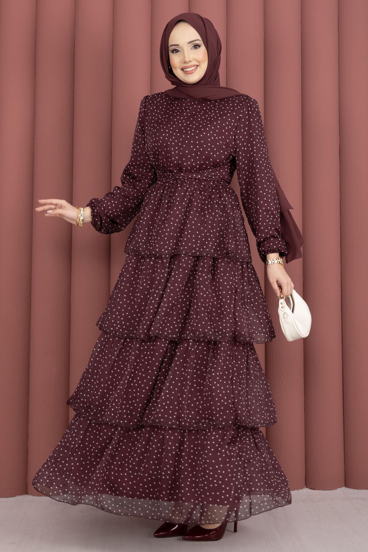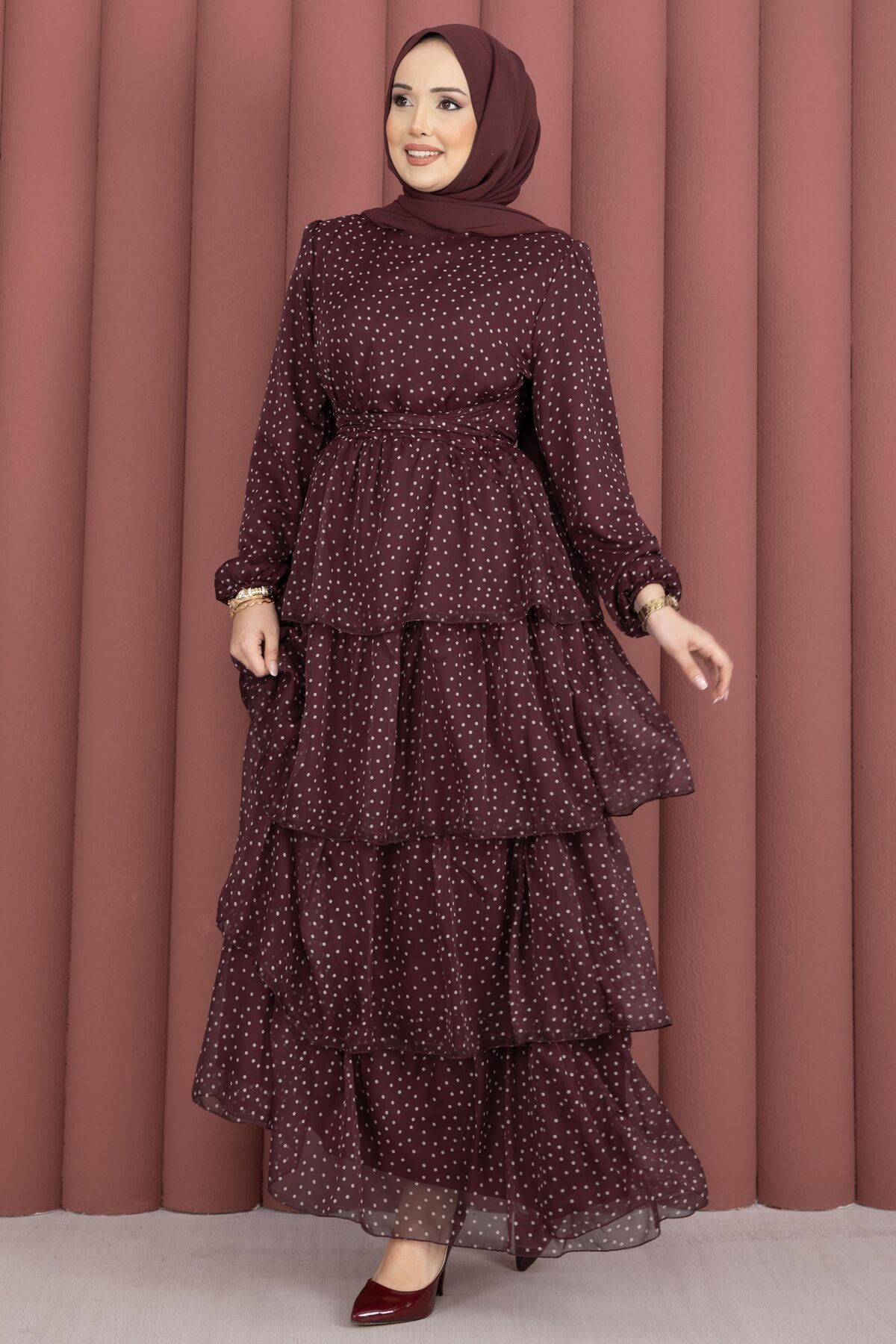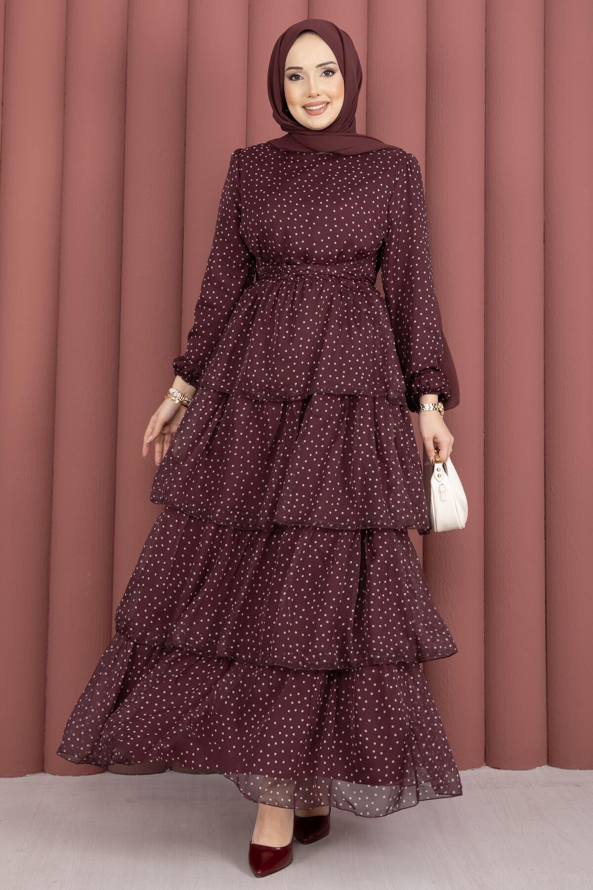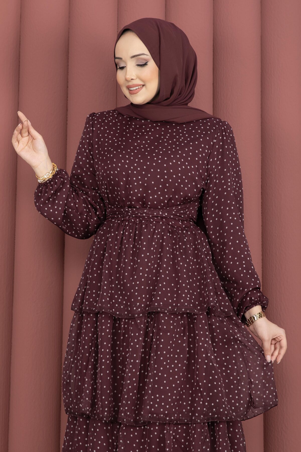 Zarif ve hareketli tasarımıyla öne çıkan Kat Kat Beli Kuşaklı Puantiyeli Elbise, puantiye deseninin zamansız şıklığını modern kesimle buluşturur. Kat kat formu sayesinde akışkan ve feminen bir duruş sunarken, beli kuşaklı yapısı vücuda uyum sağlayarak daha zarif bir siluet oluşturur. Günlük kullanımda rahatlık sağlarken, özel günlerde de şık bir görünüm elde etmenize yardımcı olur.