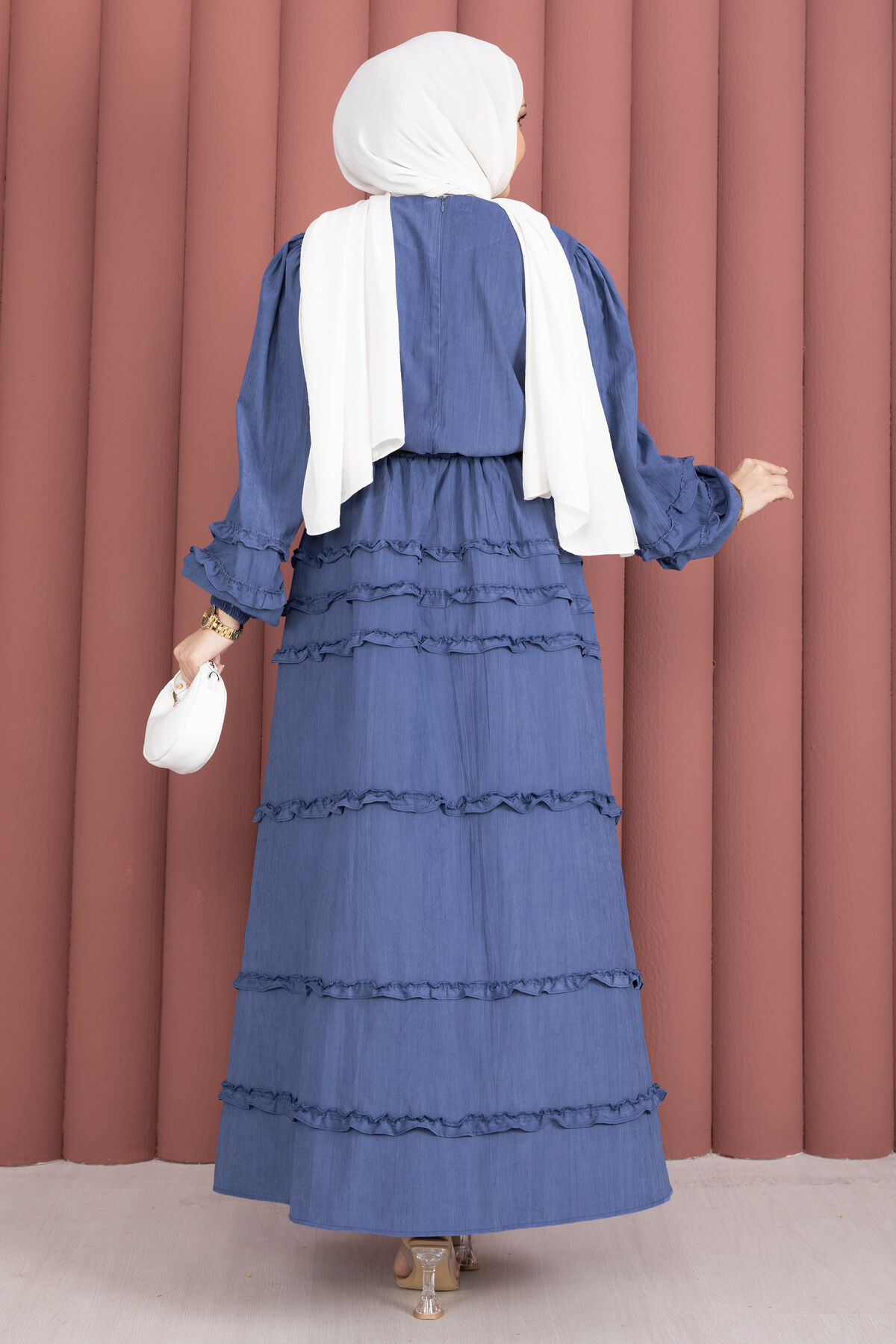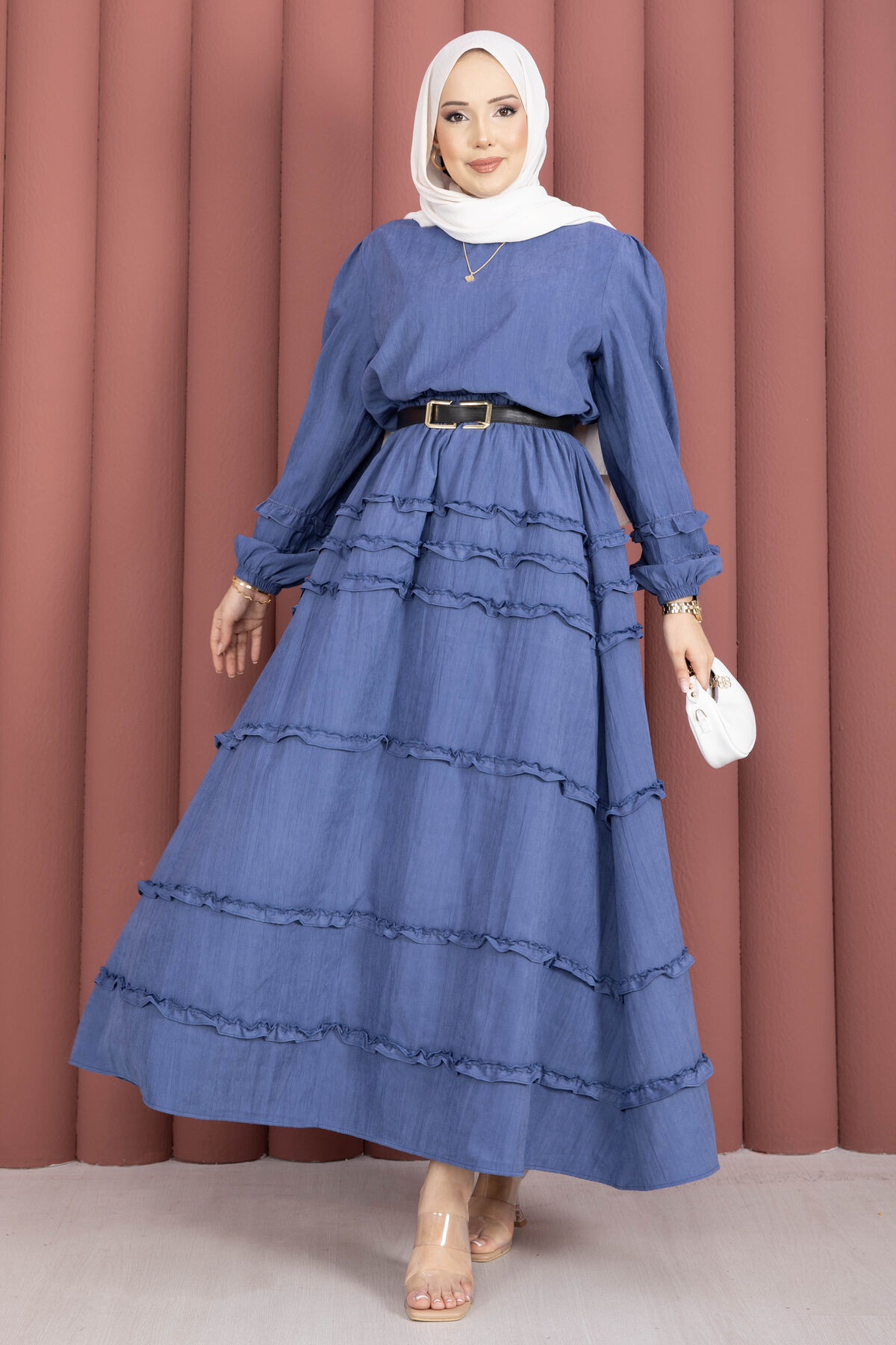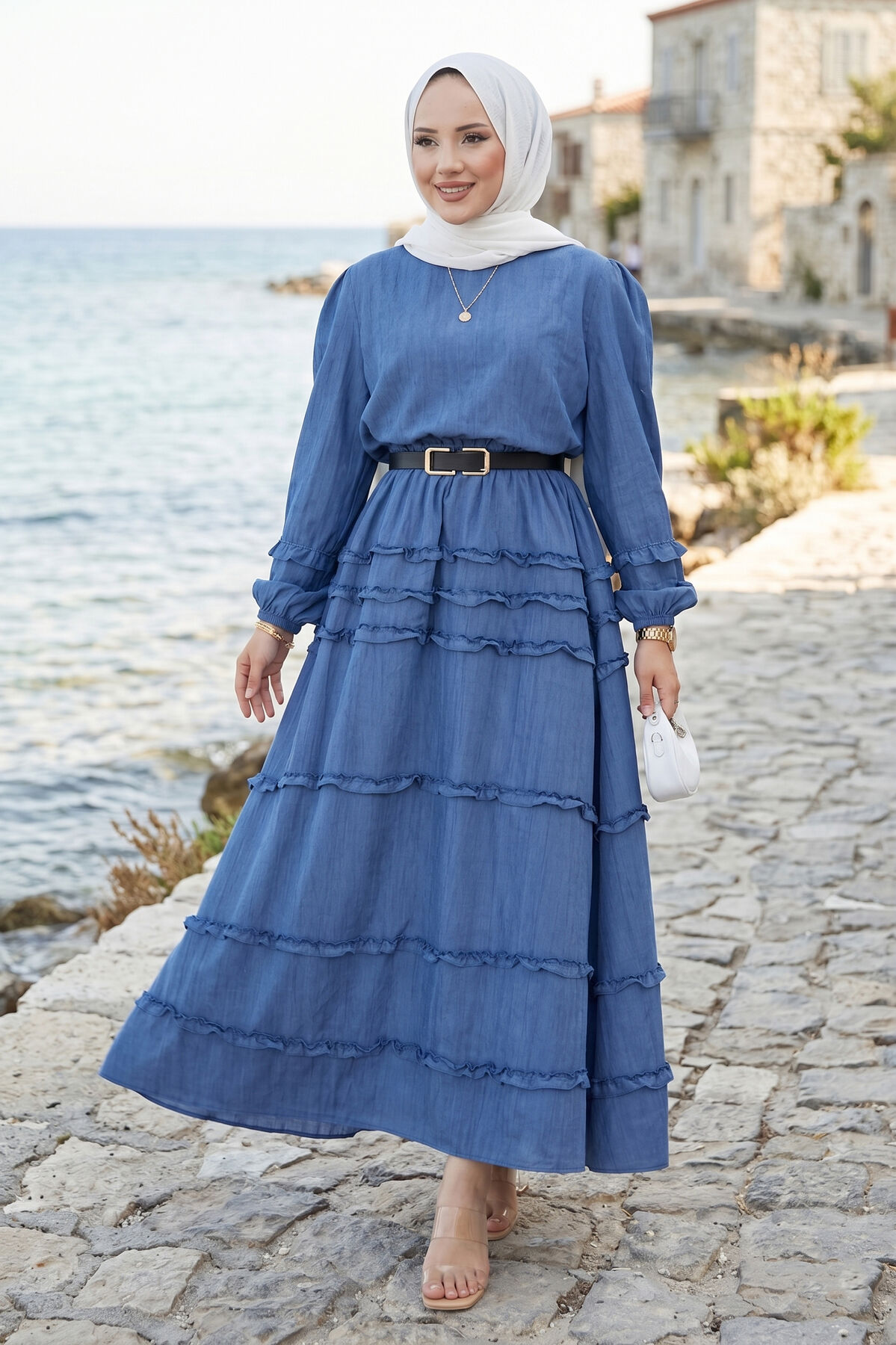 Kat Kat Fırfır Detaylı Etekli Takım İndigo
