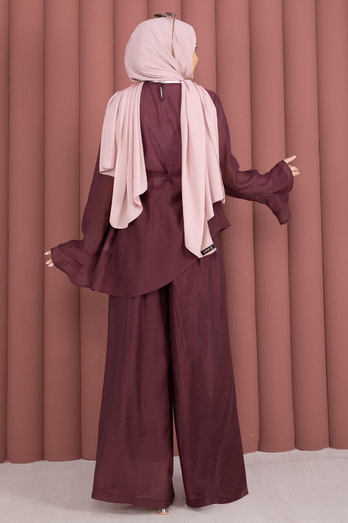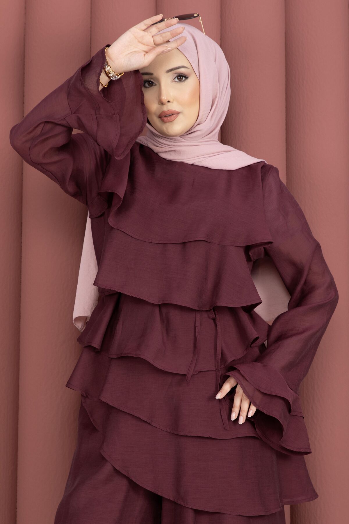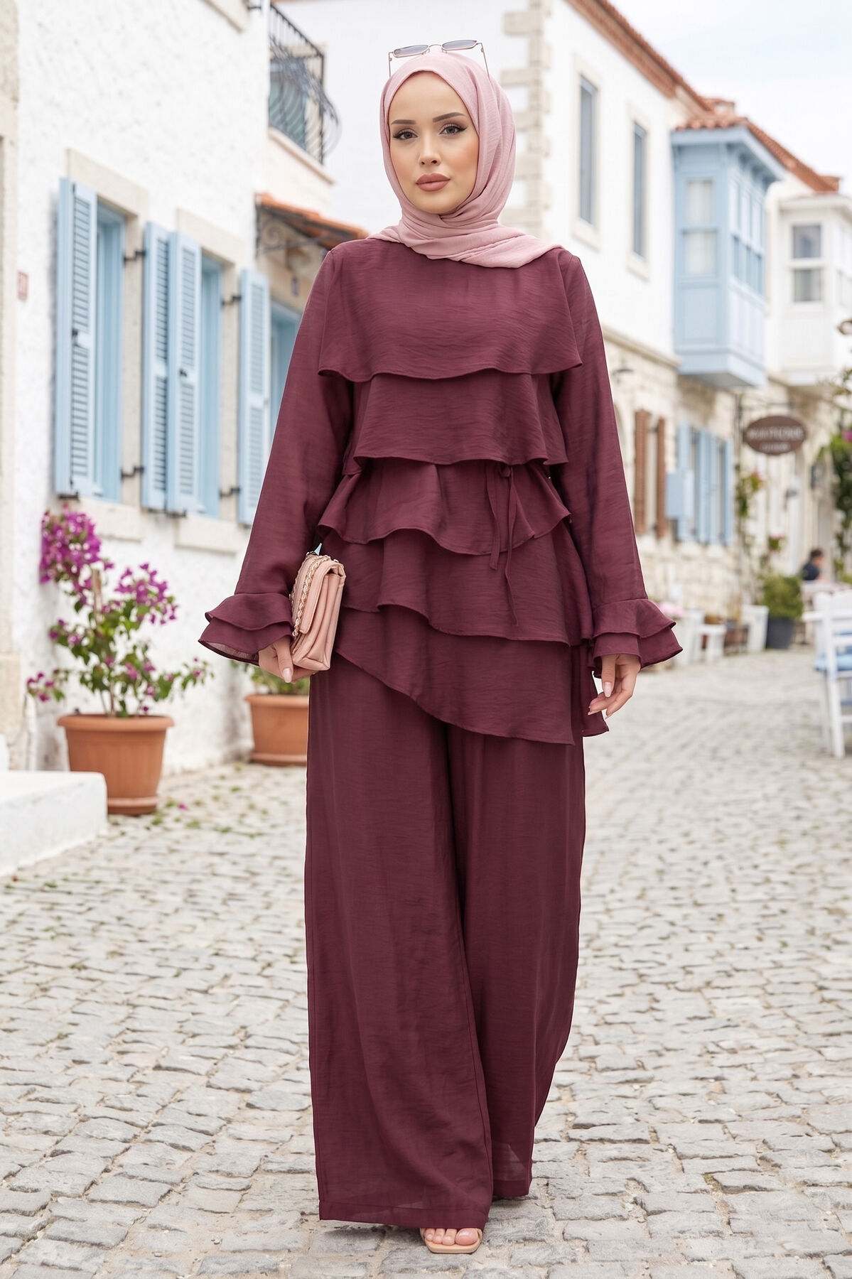 Kat Kat Fırfırlı Tunik Pantolon İkili Takım Bordo