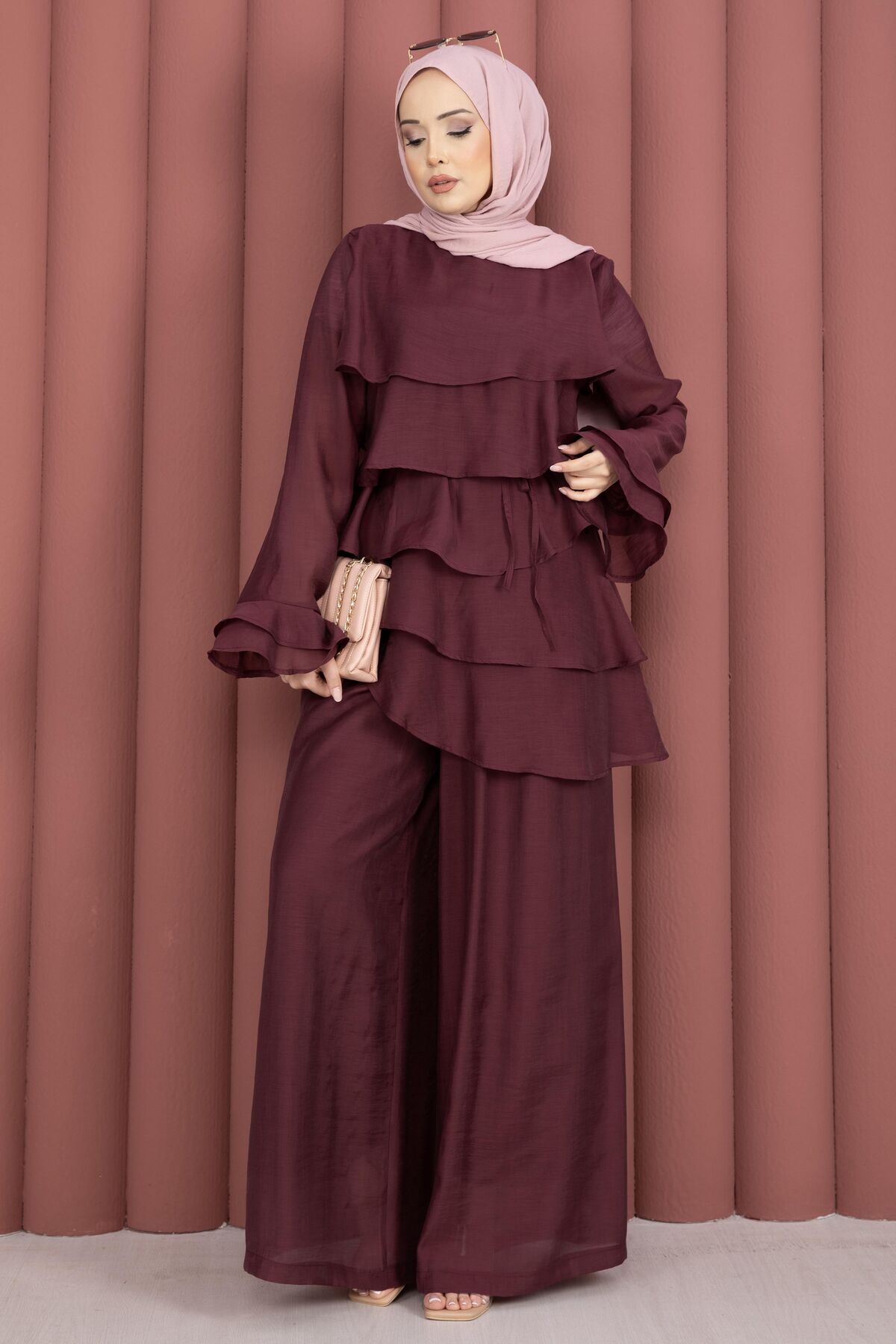 Kat Kat Fırfırlı Tunik Pantolon İkili Takım Bordo Yorumları