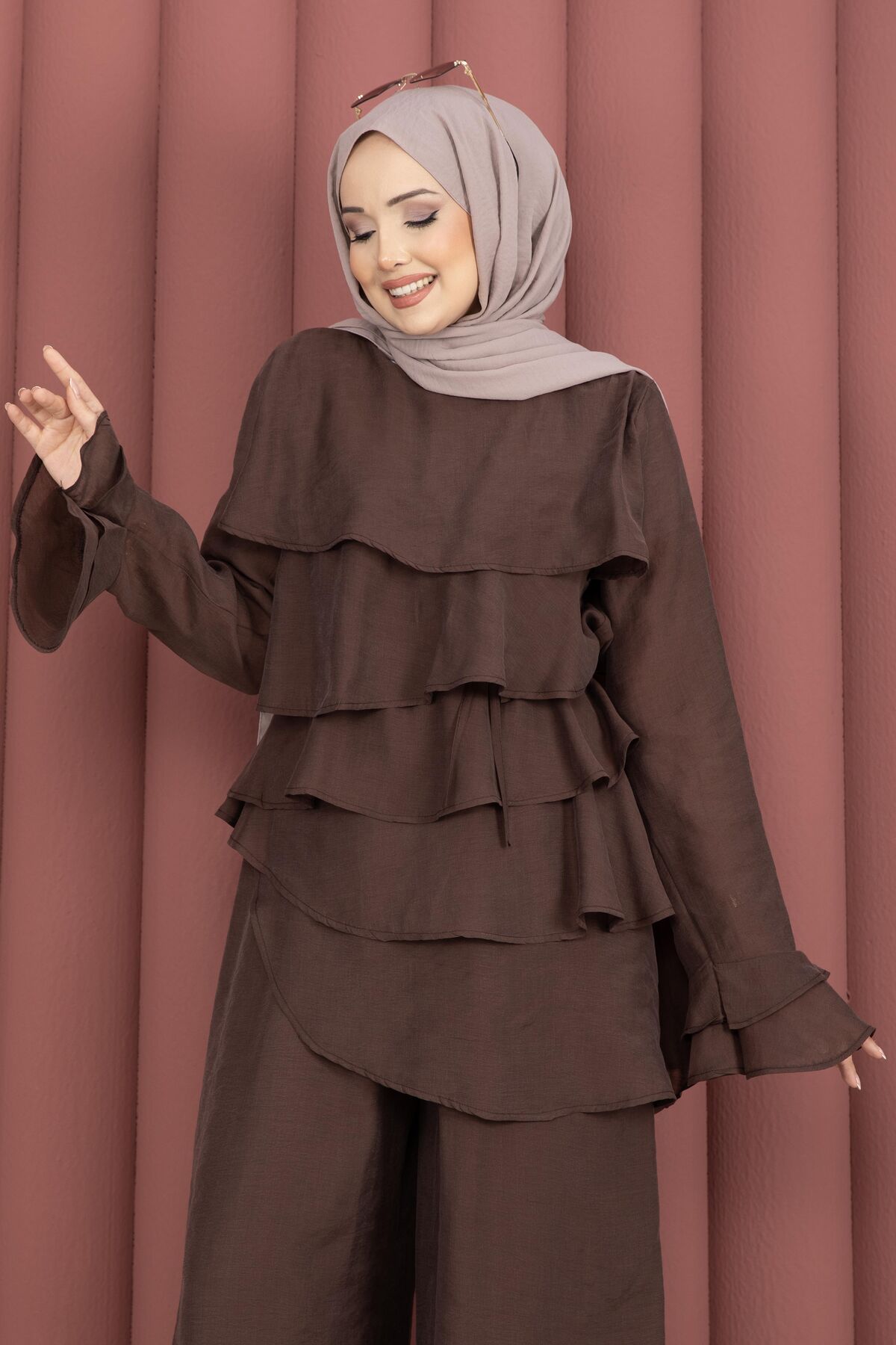 Kat Kat Fırfırlı Tunik Pantolon İkili Takım Kahve Yorumları